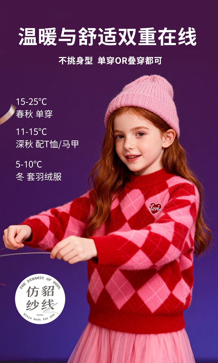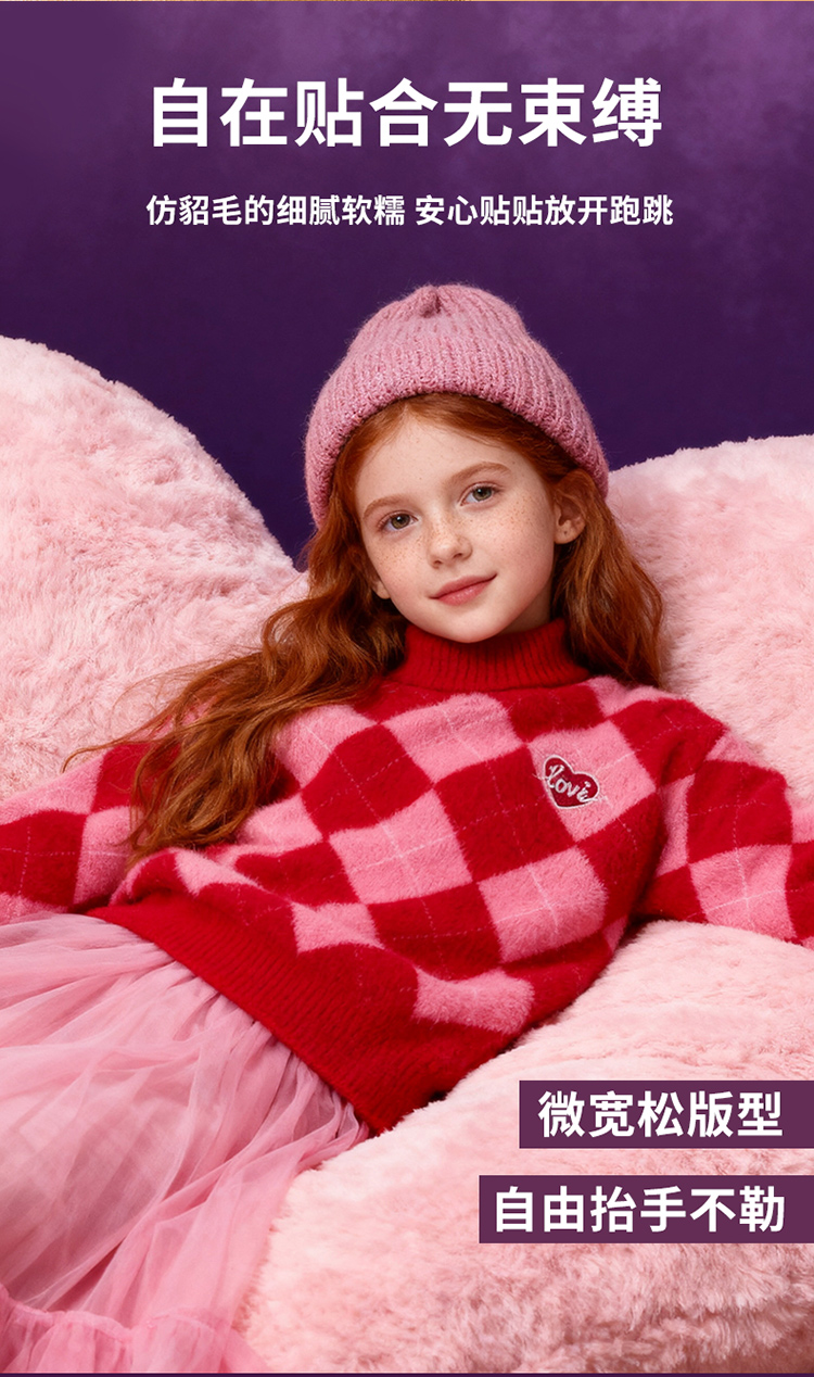 贝贝怡2025秋冬新款女童洋气毛衣厚款休闲亲肤线衫ZB3ES083