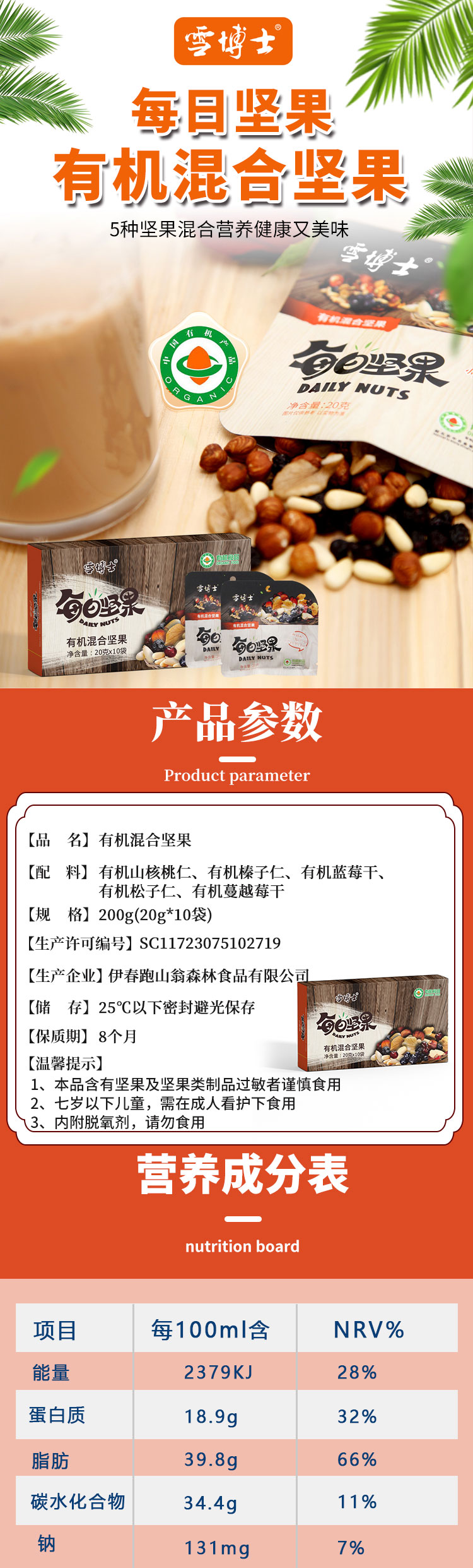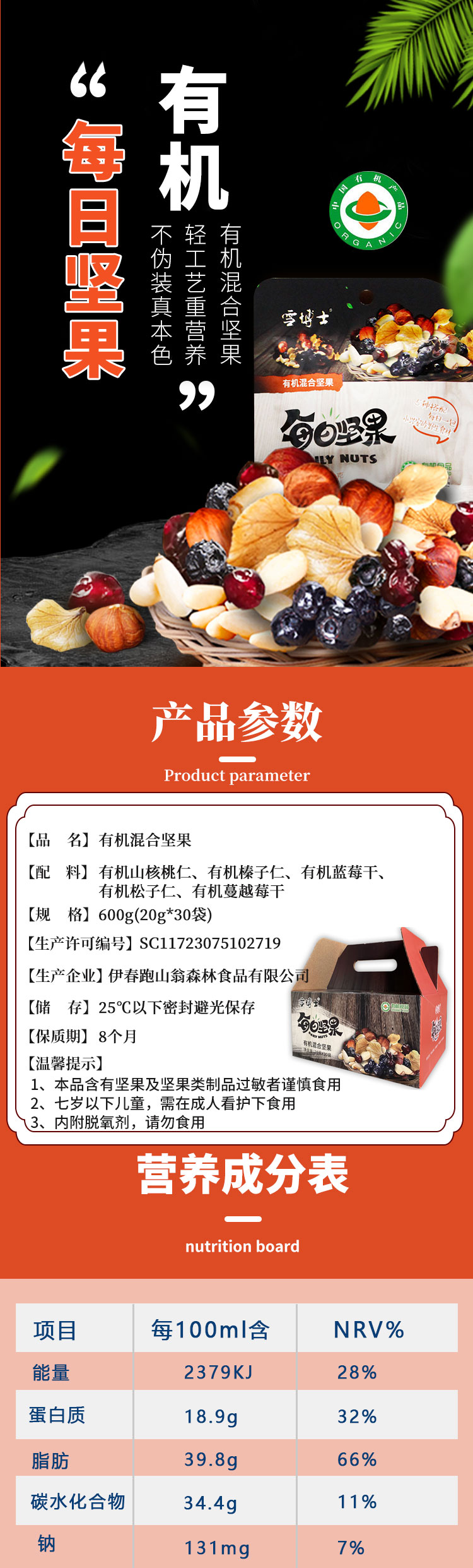 【厂商直发】有机每日坚果混合坚果仁大礼包儿童孕妇零食礼盒装包邮