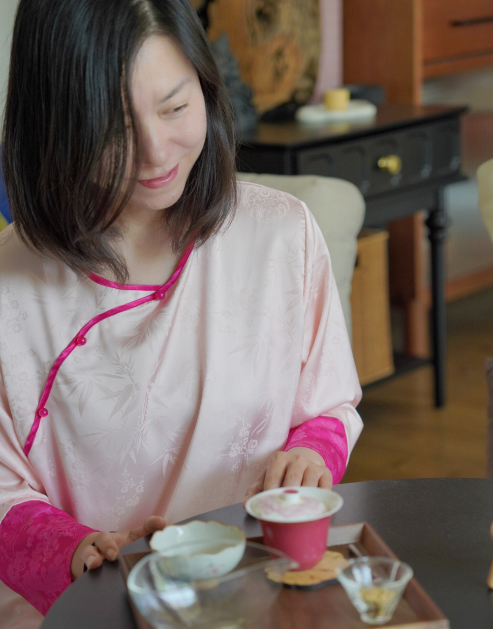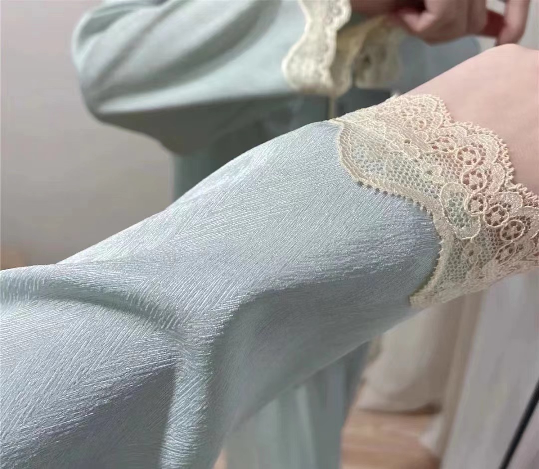 这样的丝滑度只有上好的面料才能做到!真的超爱这套太清新脱俗了!江南的感觉。