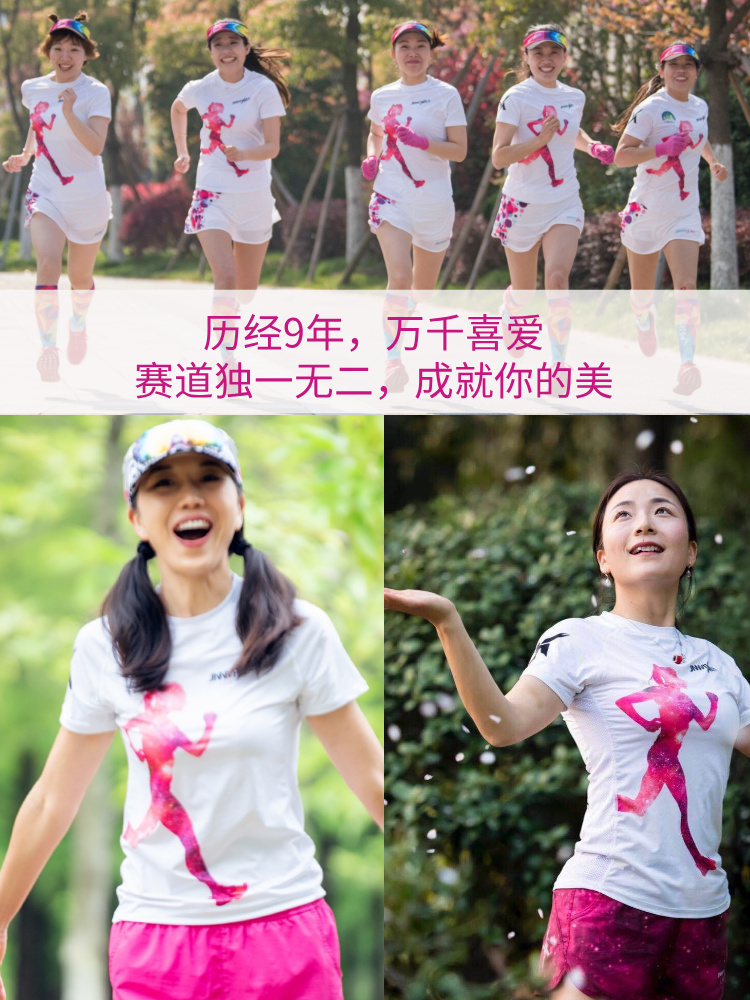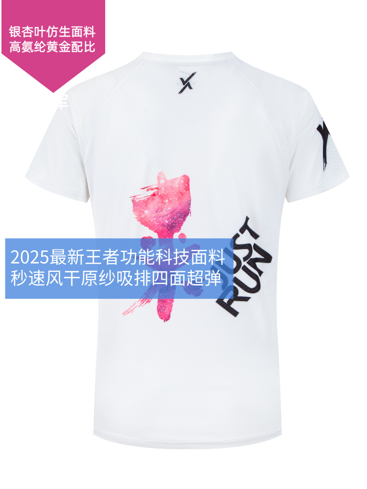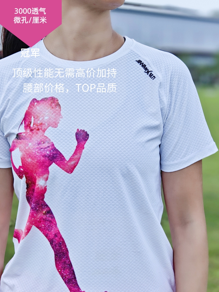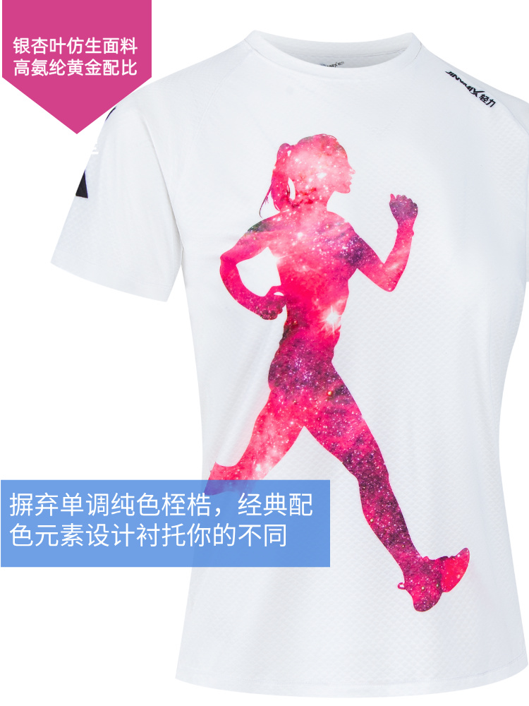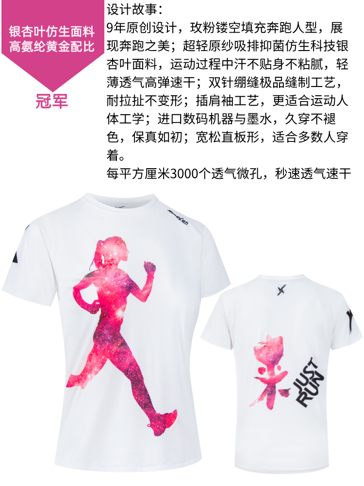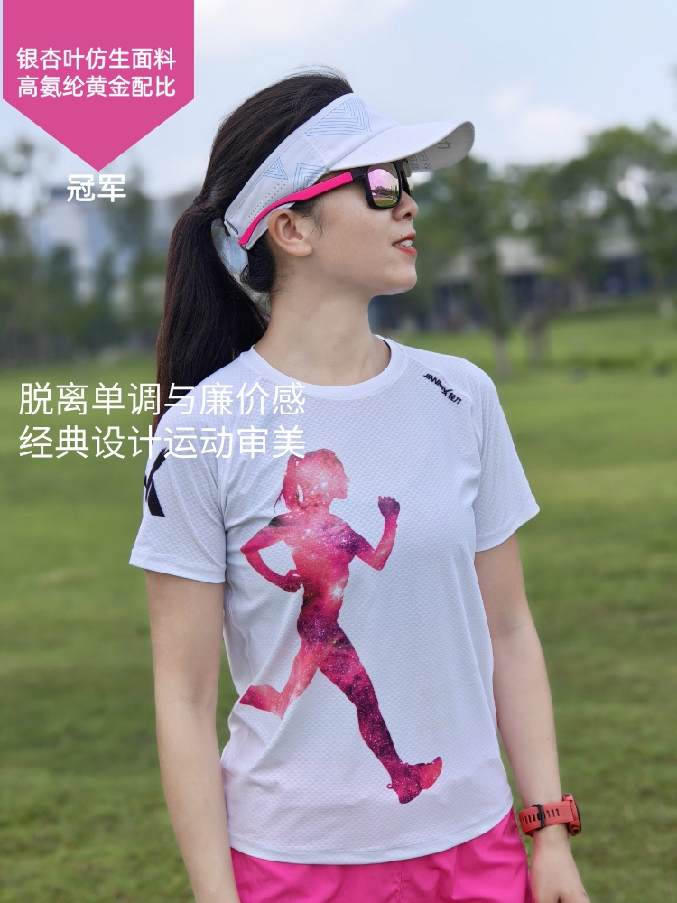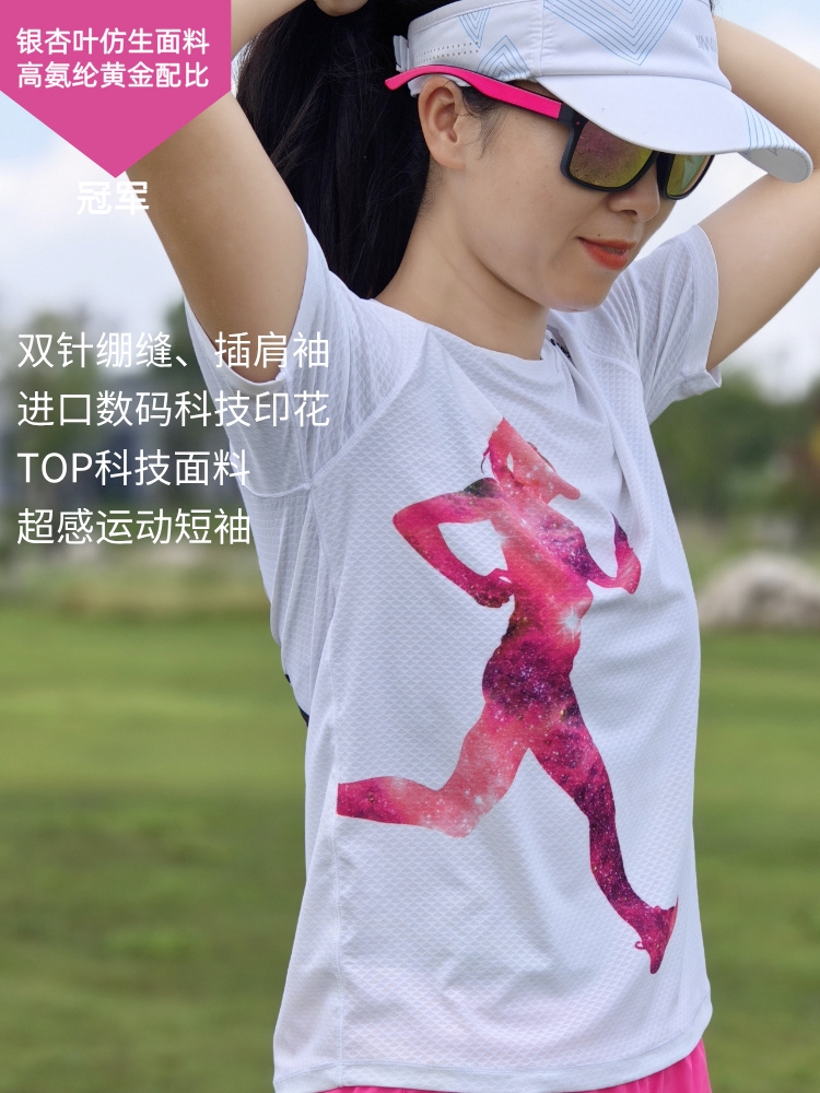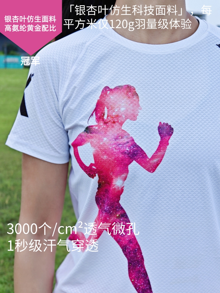 冠军银杏叶超轻透气速干运动户外马拉松跑步短袖女白科技面料