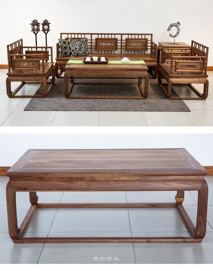 新仿黑胡桃木新中式茶几咖啡台矮茶桌QN1706001750 Newly made Black walnut wood ReproductionTea table
