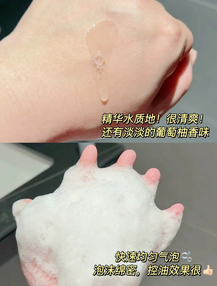 这就使得产品的清洁力和温和性趋于平衡,说人话就是满足油皮清空毛孔垃圾的爽感和干皮的洗感体验。