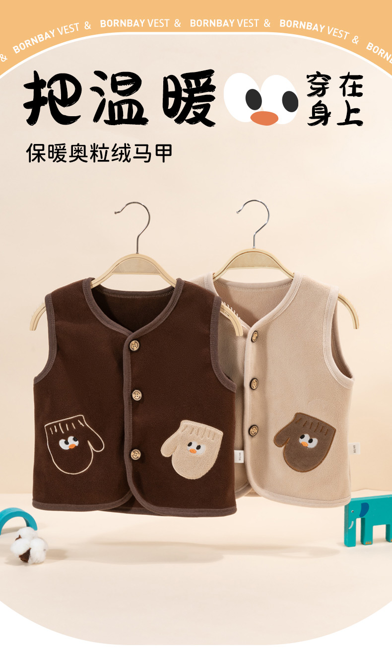 贝贝怡童装儿童马甲秋冬外穿开衫加绒男女童保暖外套秋季新款背心ZB3DS002