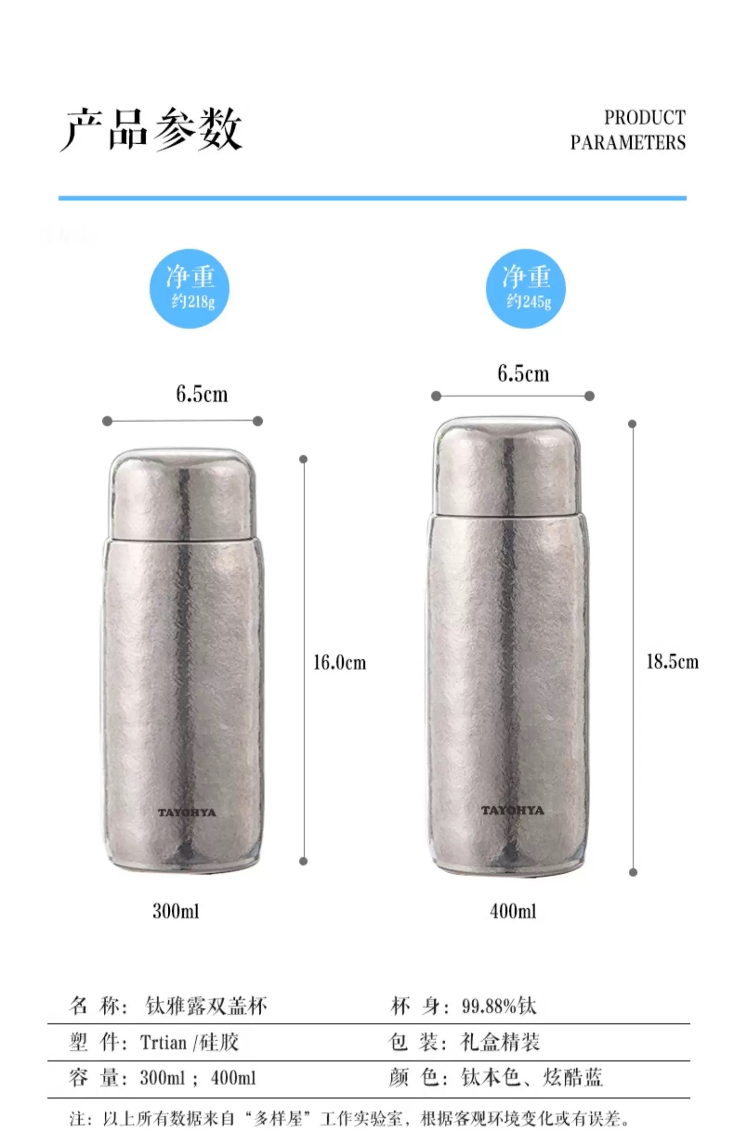 【6F】多样屋钛杯保温杯 高档高颜值女士便携双层钛双盖杯生日礼物商务