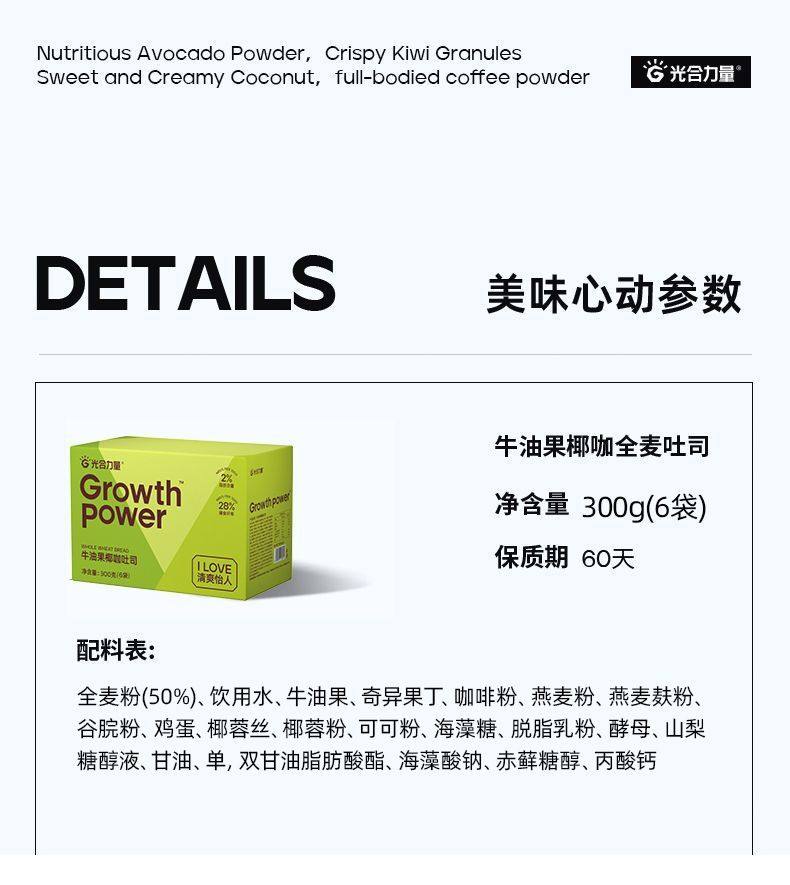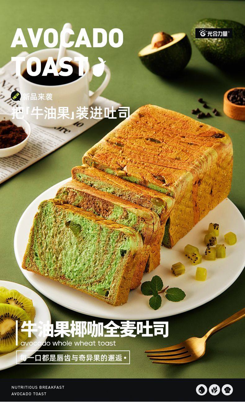 (百万补贴) 光合力量低脂全麦牛油果椰咖吐司300g