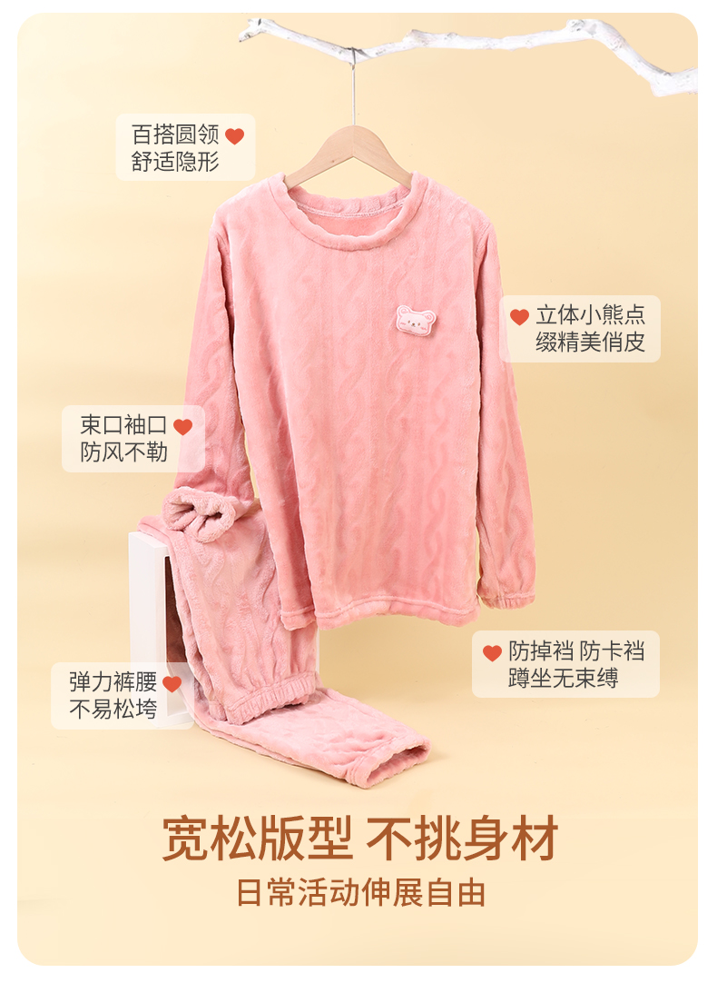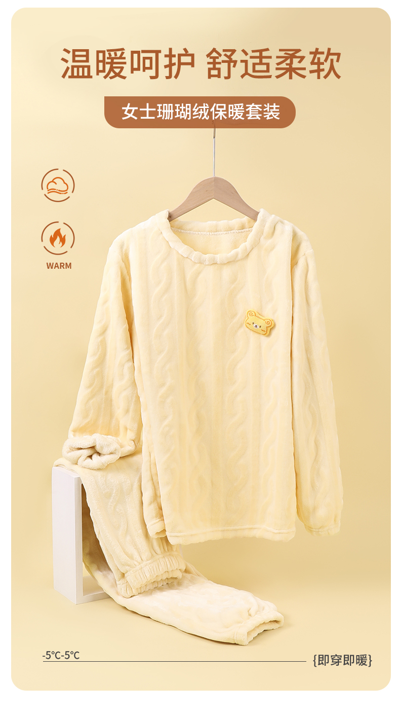 雅黛丽睡衣女款冬季珊瑚绒2025新款家居服套装圆领可爱可外穿保暖