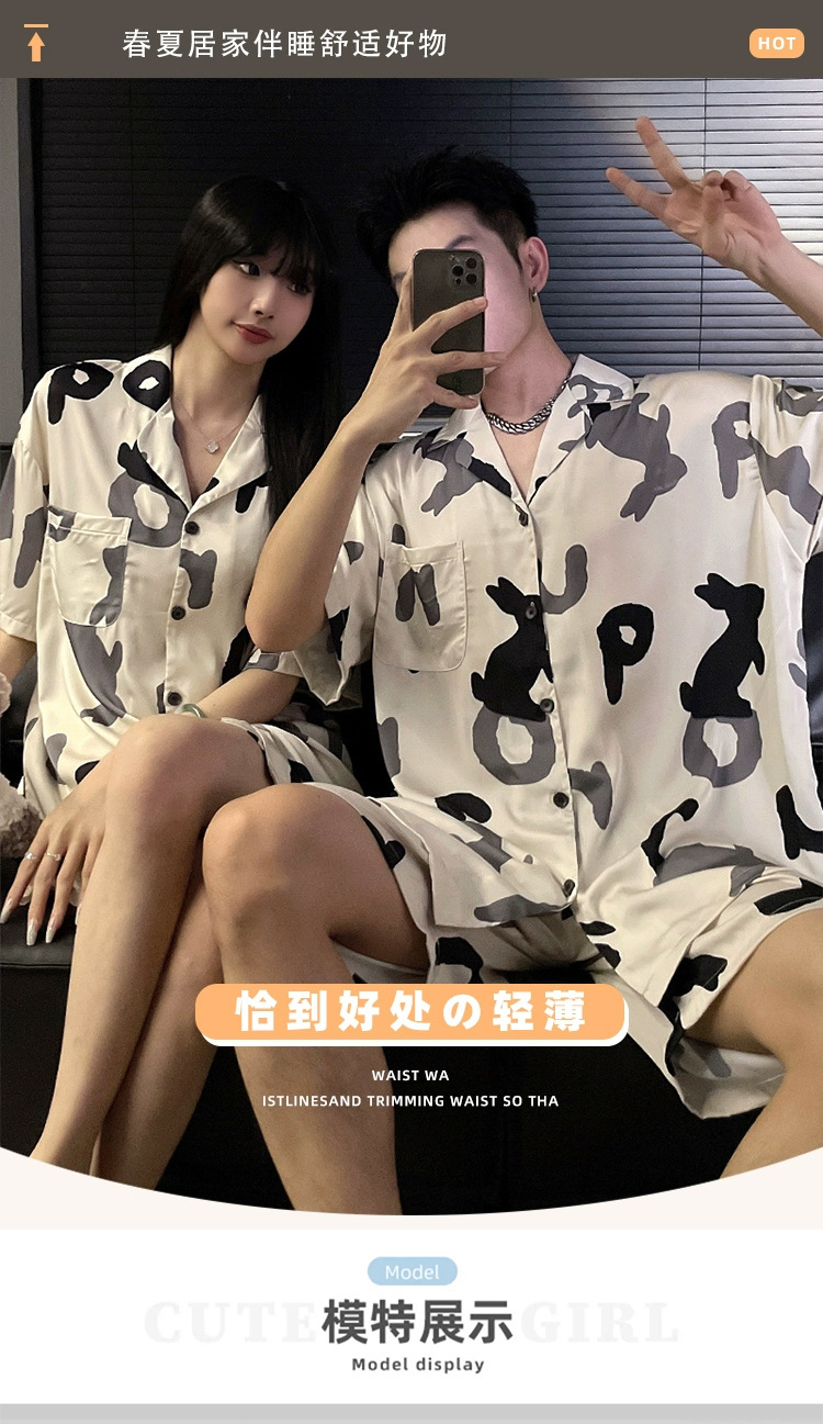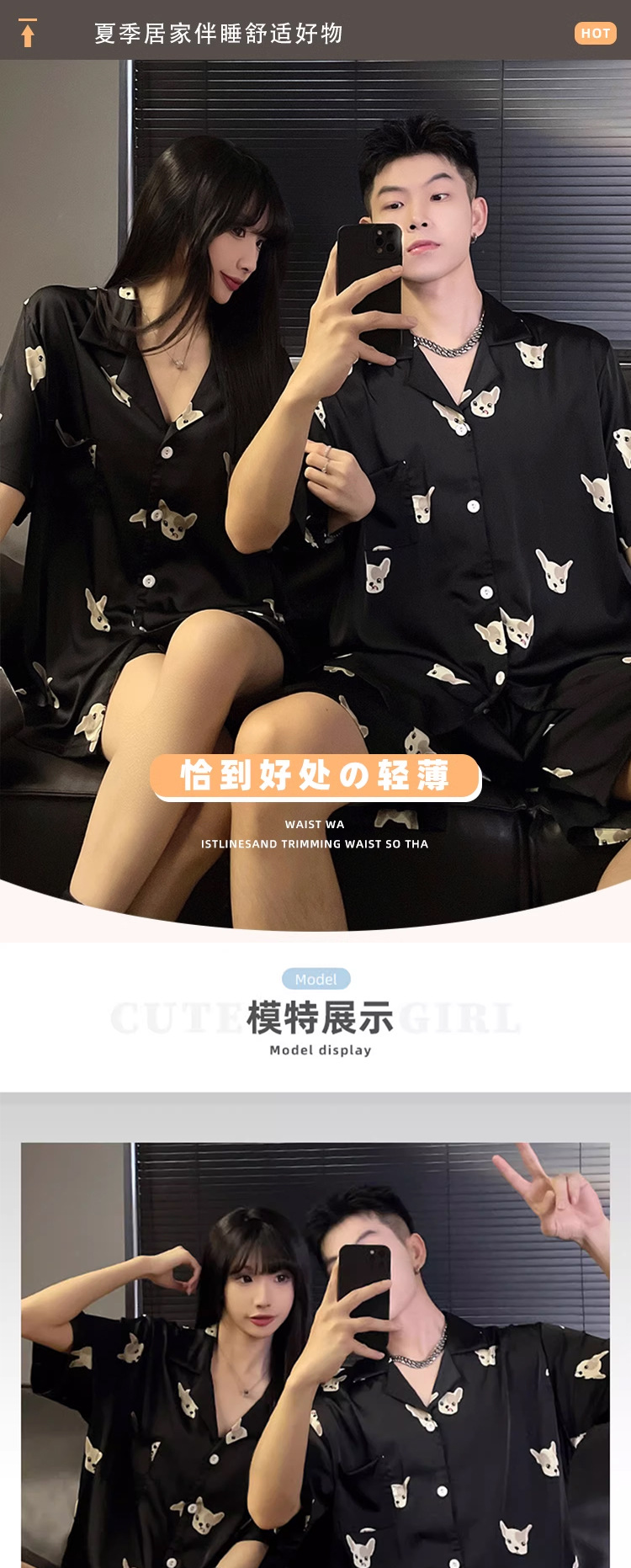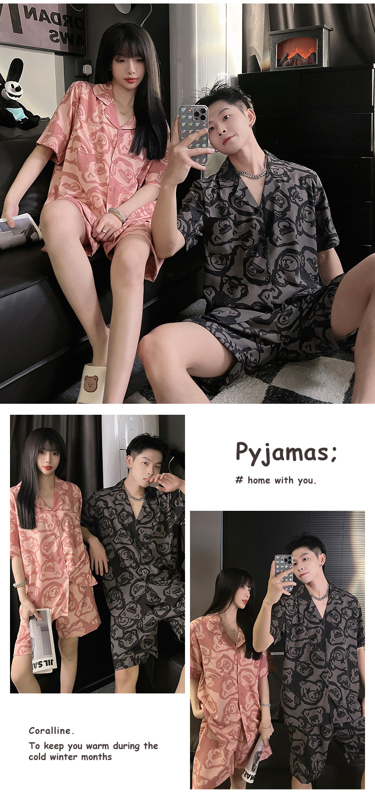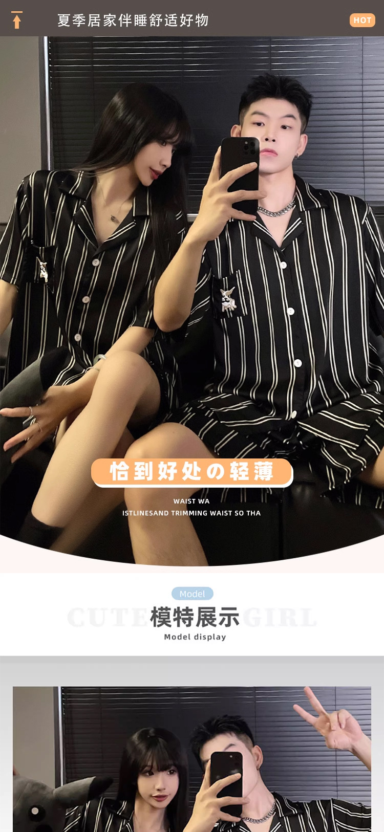 【可外穿❗️冰丝情侣睡衣套装】裸感无痕,丝滑亲肤,舒适柔软,凉感女夏季短袖高级感大码男士夏天家居服
