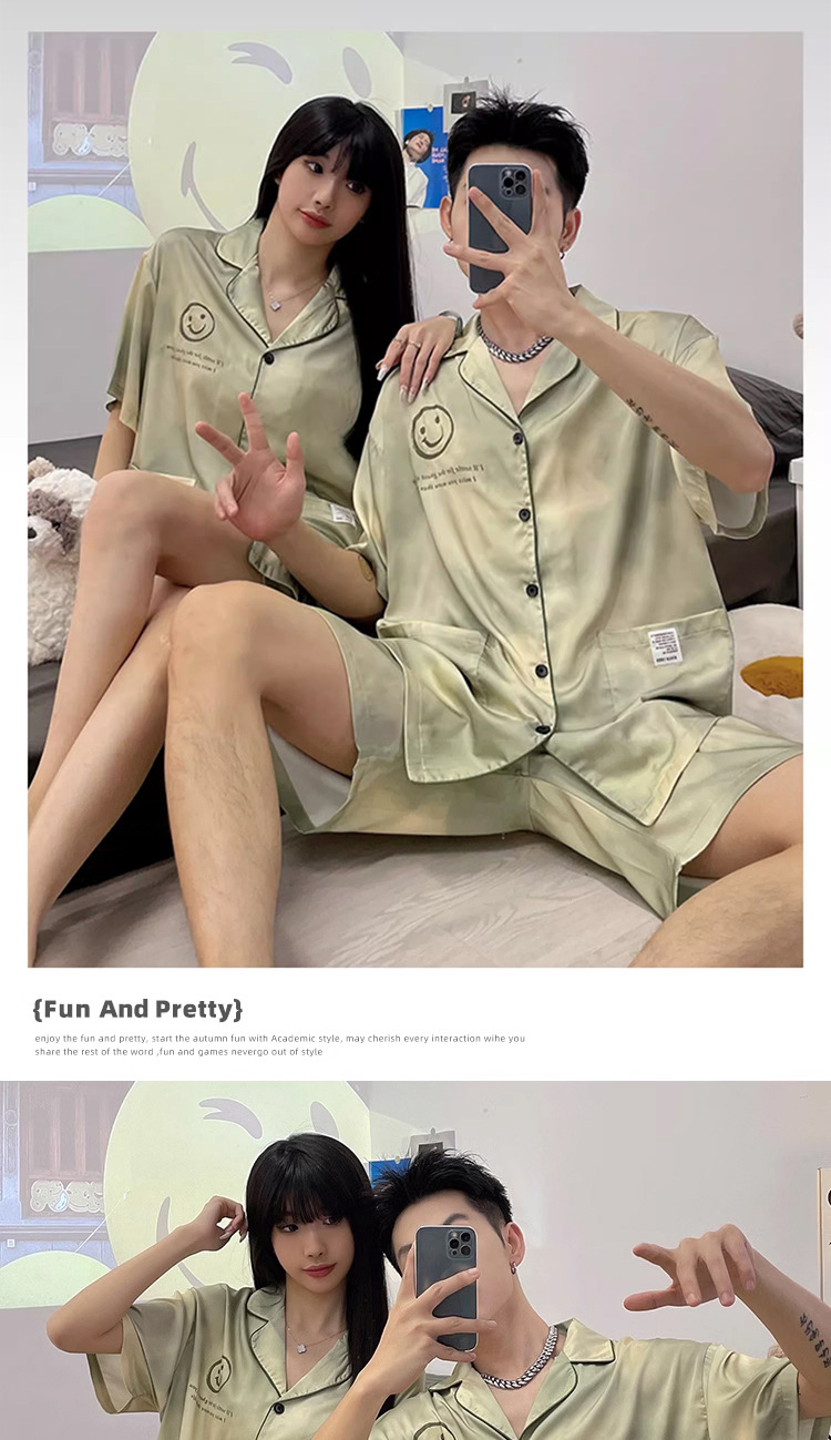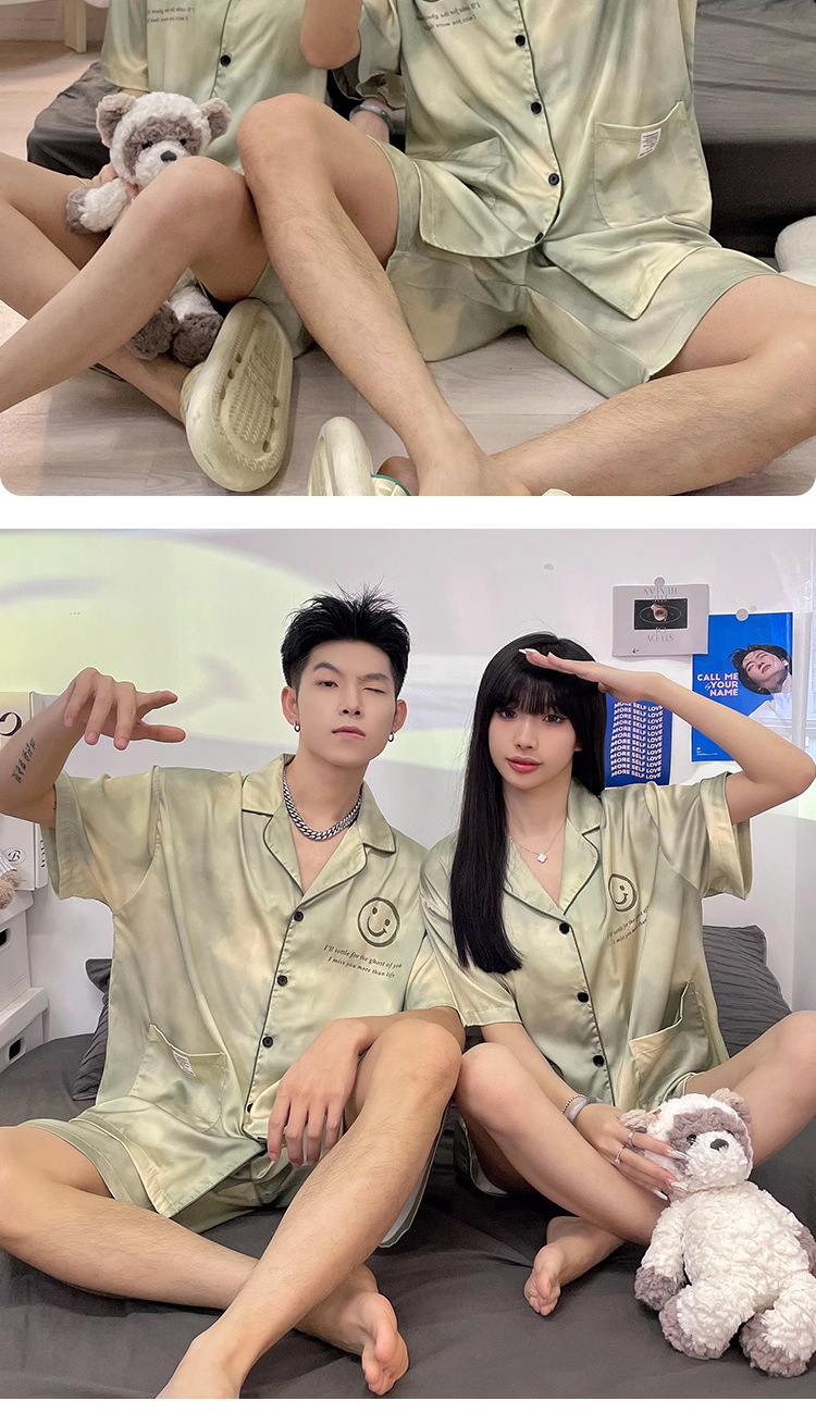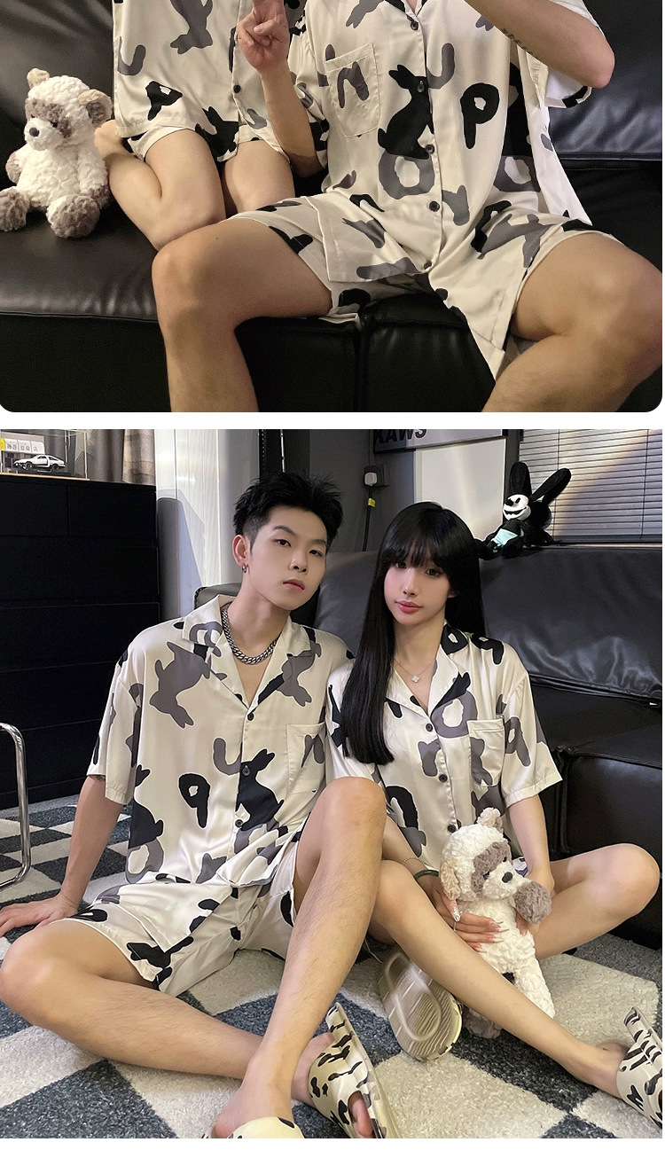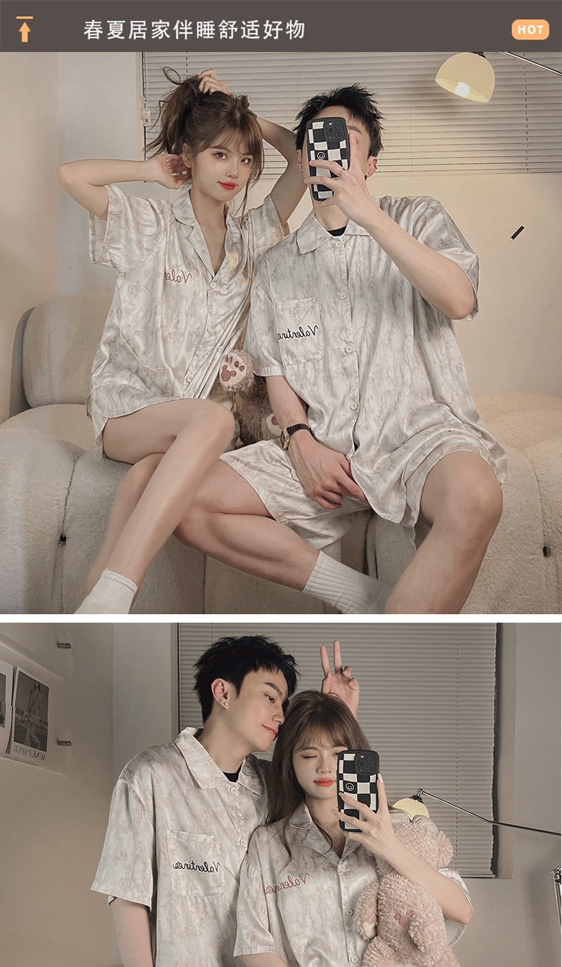【可外穿❗️冰丝情侣睡衣套装】裸感无痕,丝滑亲肤,舒适柔软,凉感女夏季短袖高级感大码男士夏天家居服