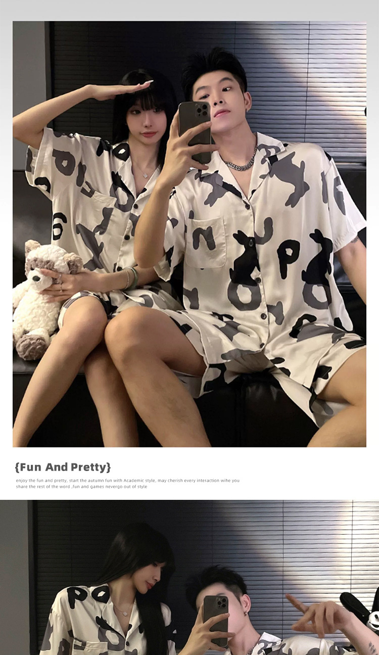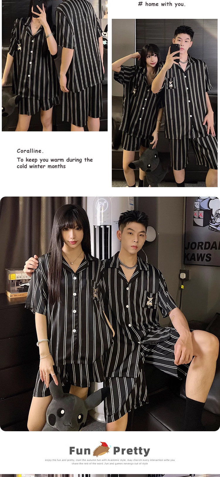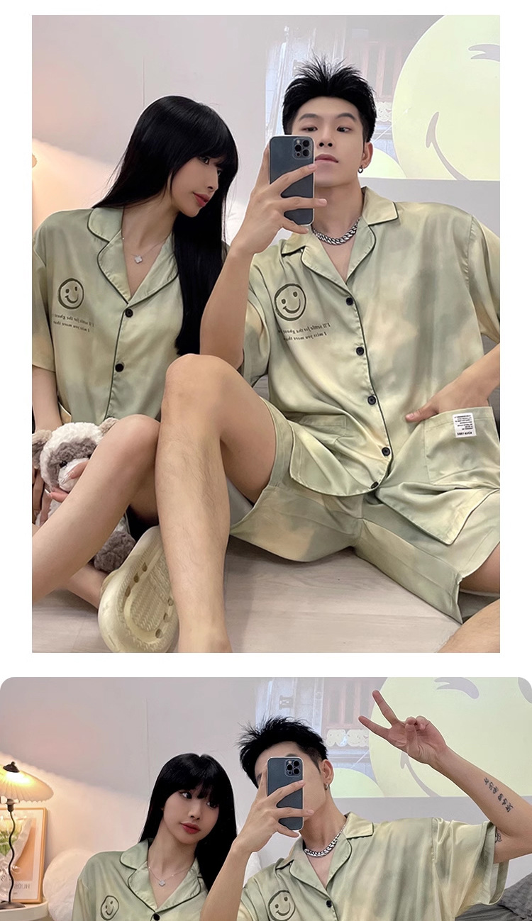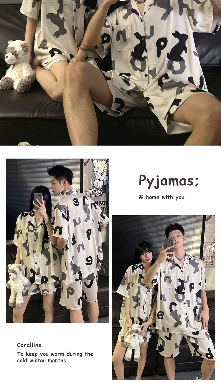 【可外穿❗️冰丝情侣睡衣套装】裸感无痕,丝滑亲肤,舒适柔软,凉感女夏季短袖高级感大码男士夏天家居服