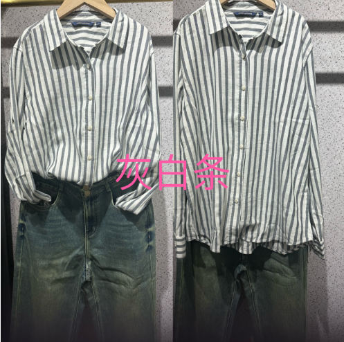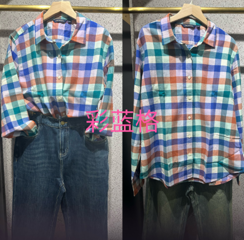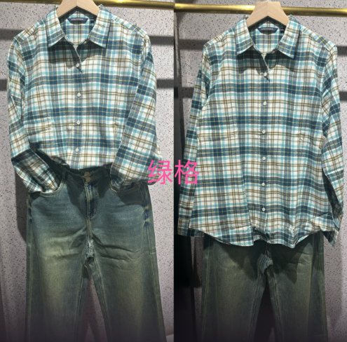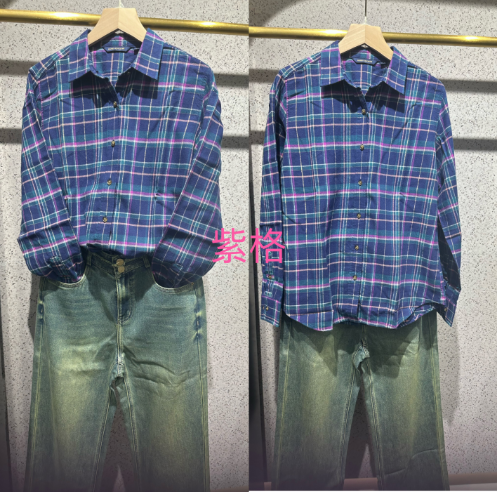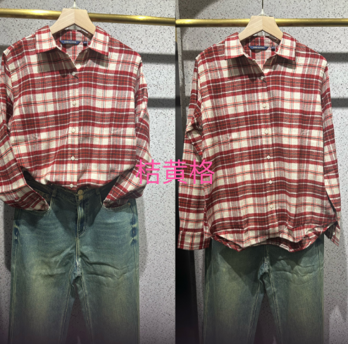 【女士法兰绒衬衫】占姆士宽松格子条纹衬衫别致休闲法兰绒外套慵懒风女学生秋