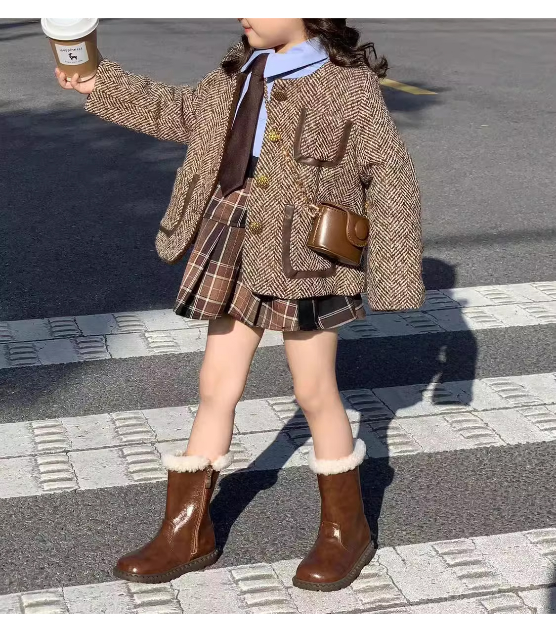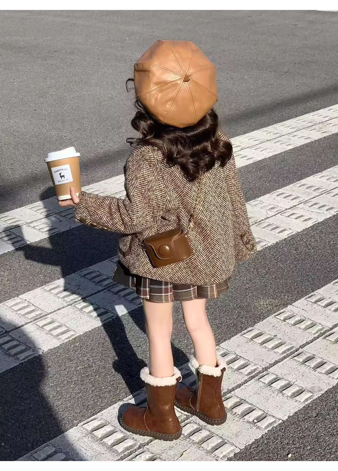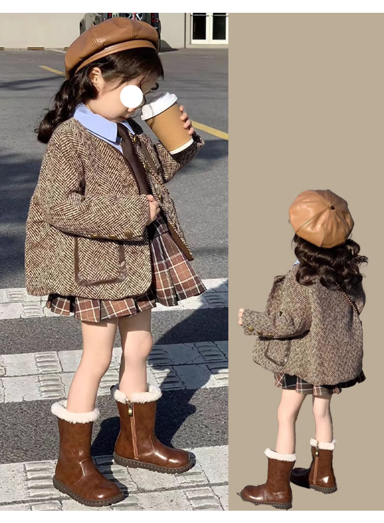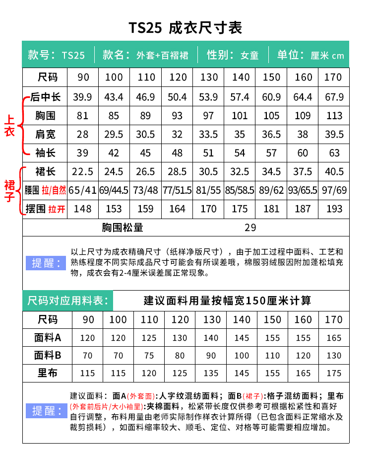 裁缝学苑TS25女童新款小香风夹棉外套上衣百褶裙套装纸样儿童样板