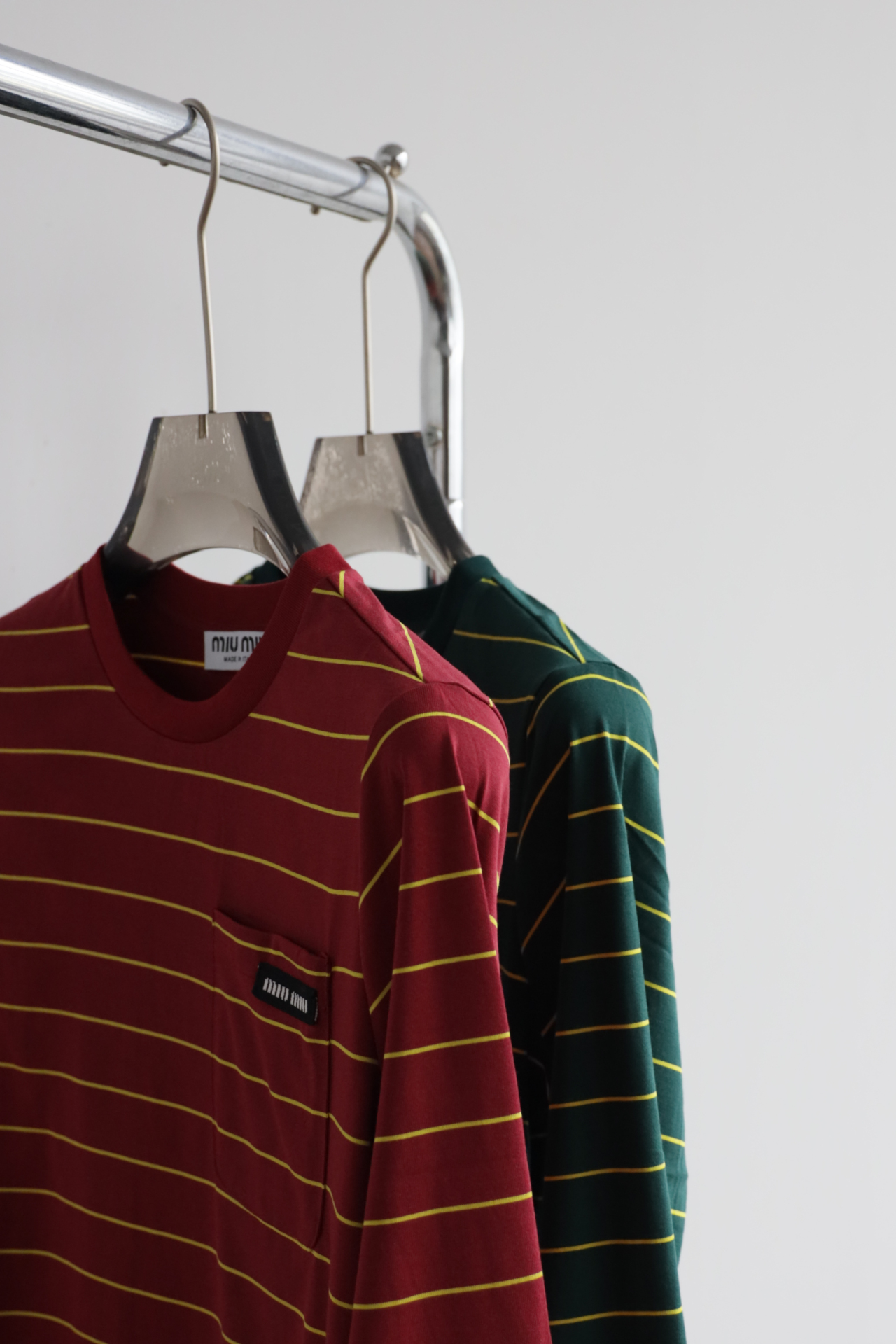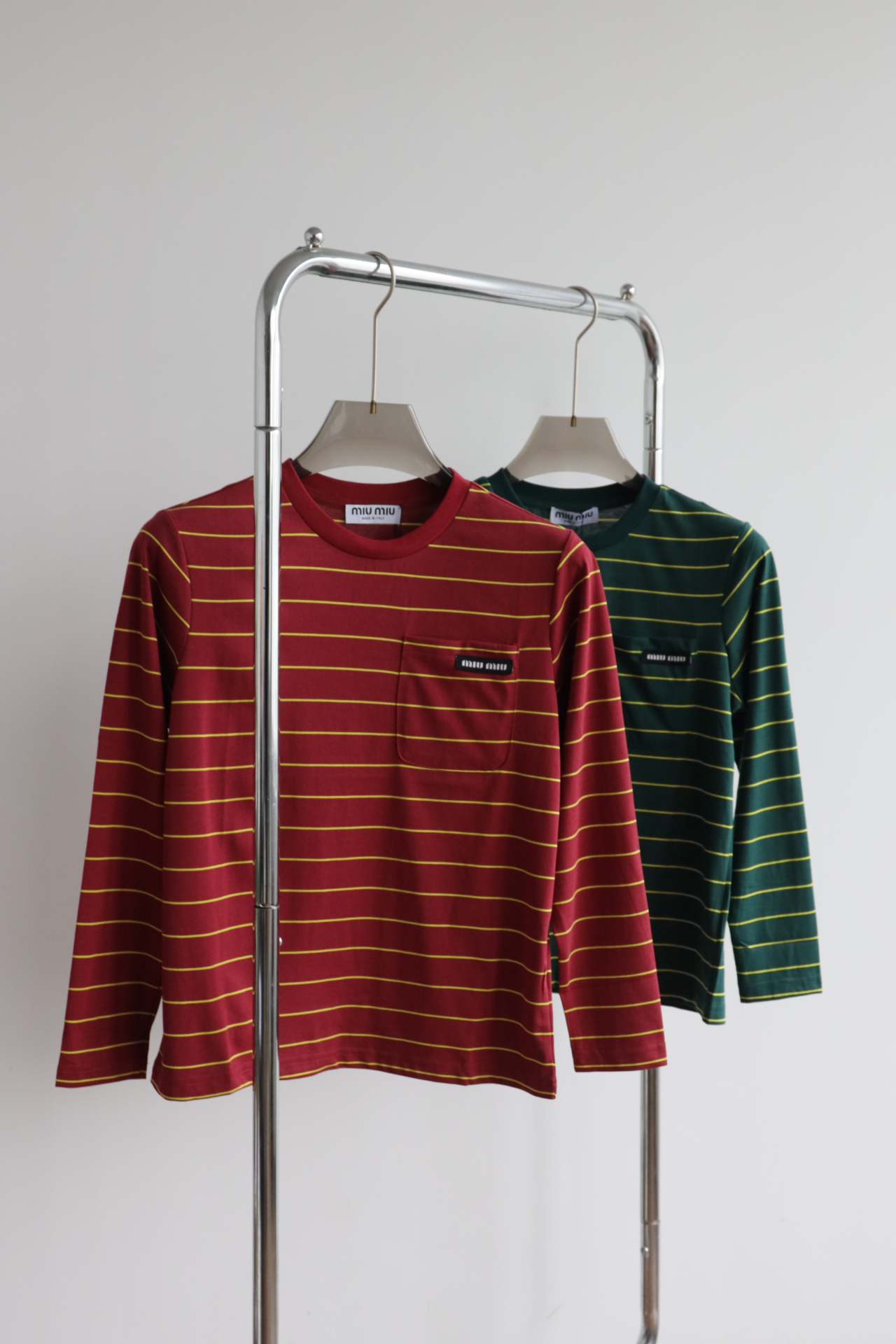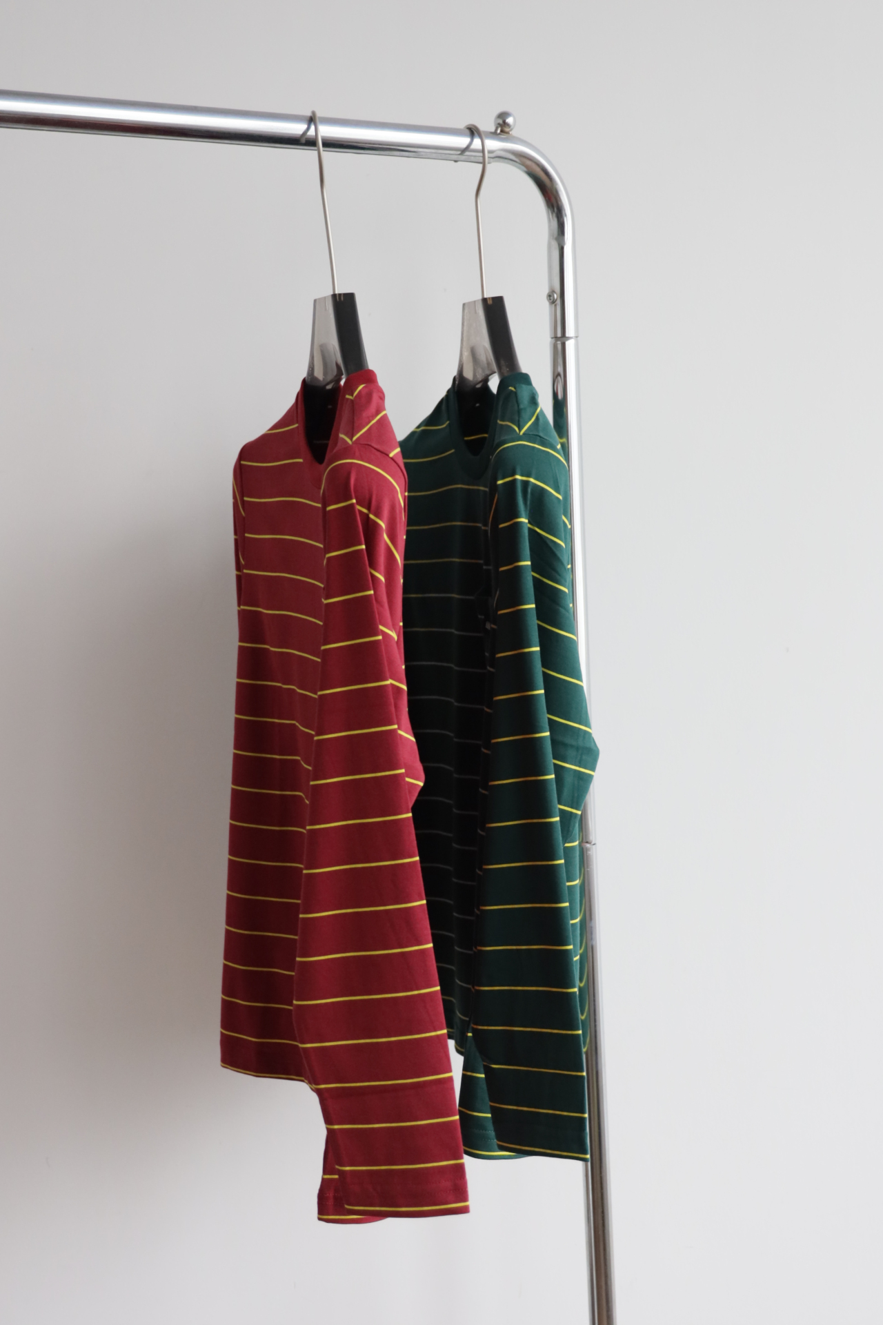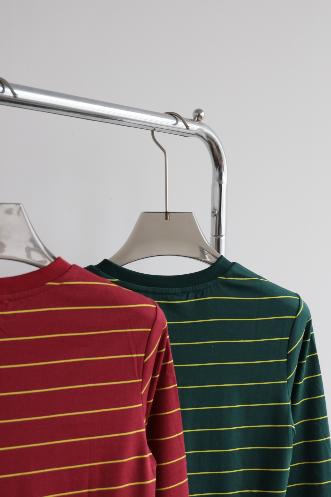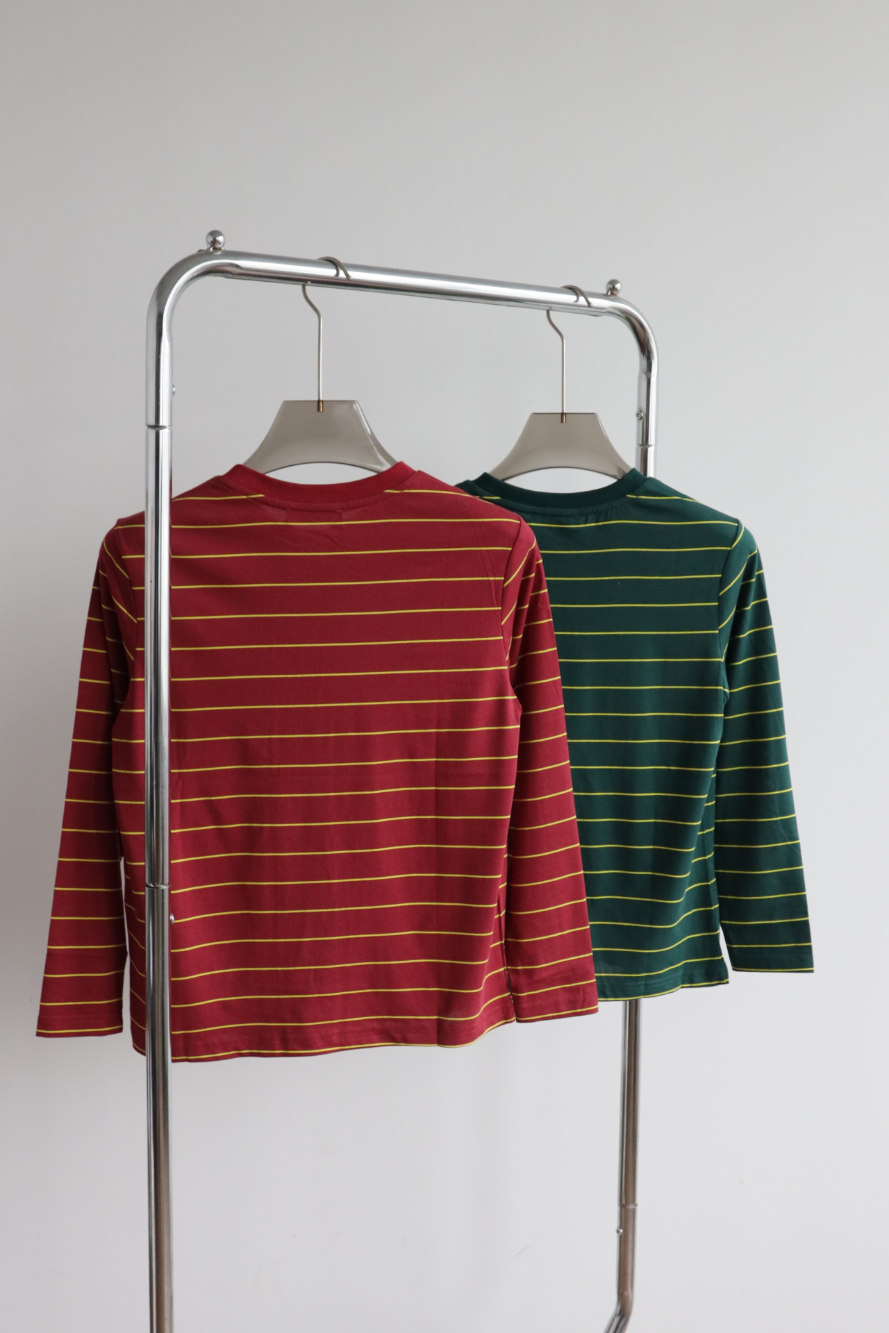 • 经典配色碰撞:墨绿×酒红双选,黄细条纹点缀,复古氛围拉满,适配早秋叠穿与单穿。
