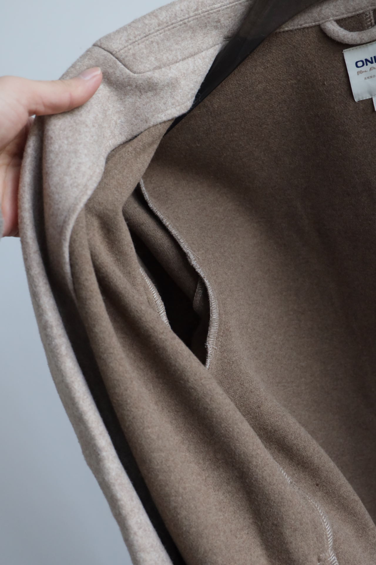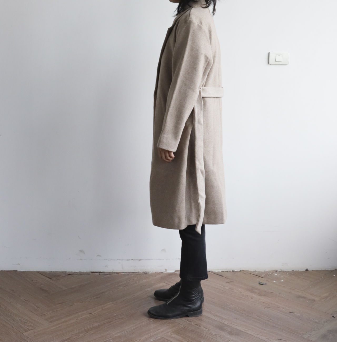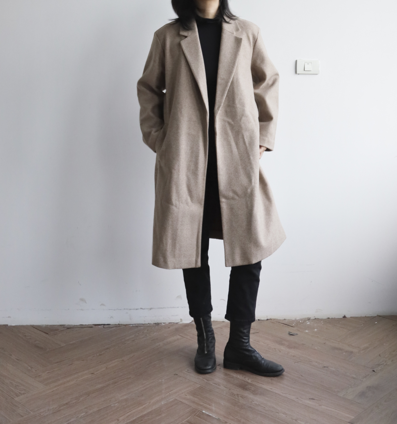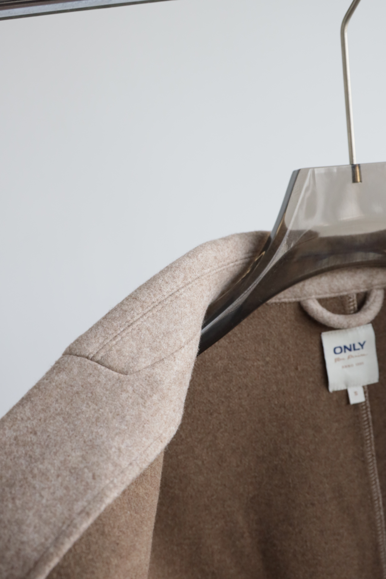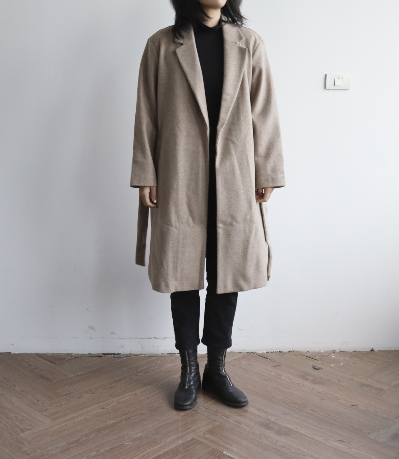 颜色很经典的沙色,低饱和度,粘毛也看不出来