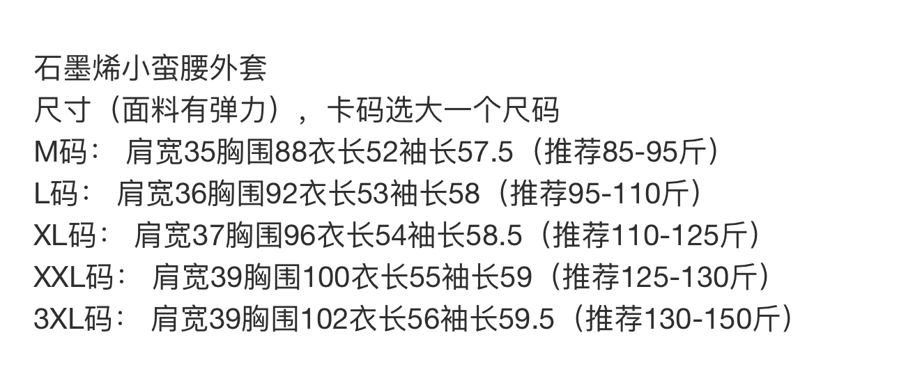 XXL码: 肩宽39胸围100衣长55袖长59(推荐125-130斤)
