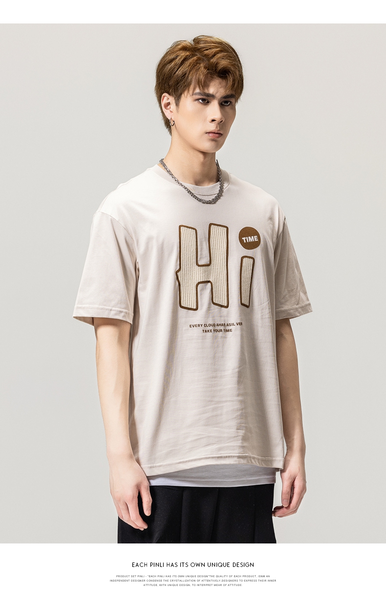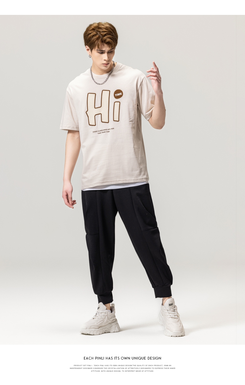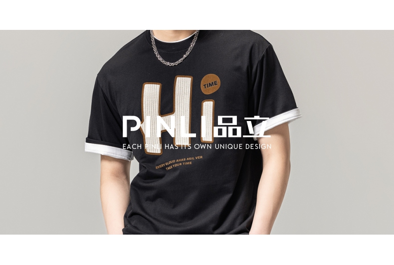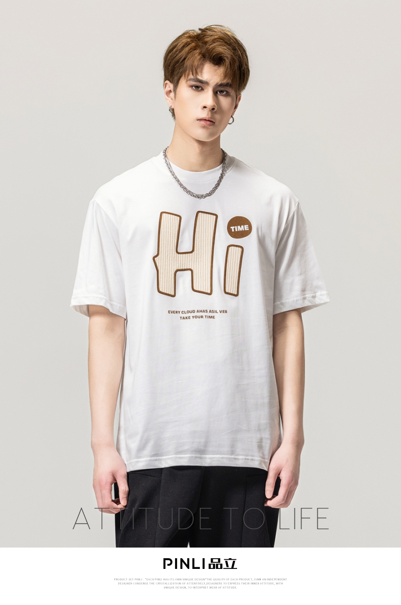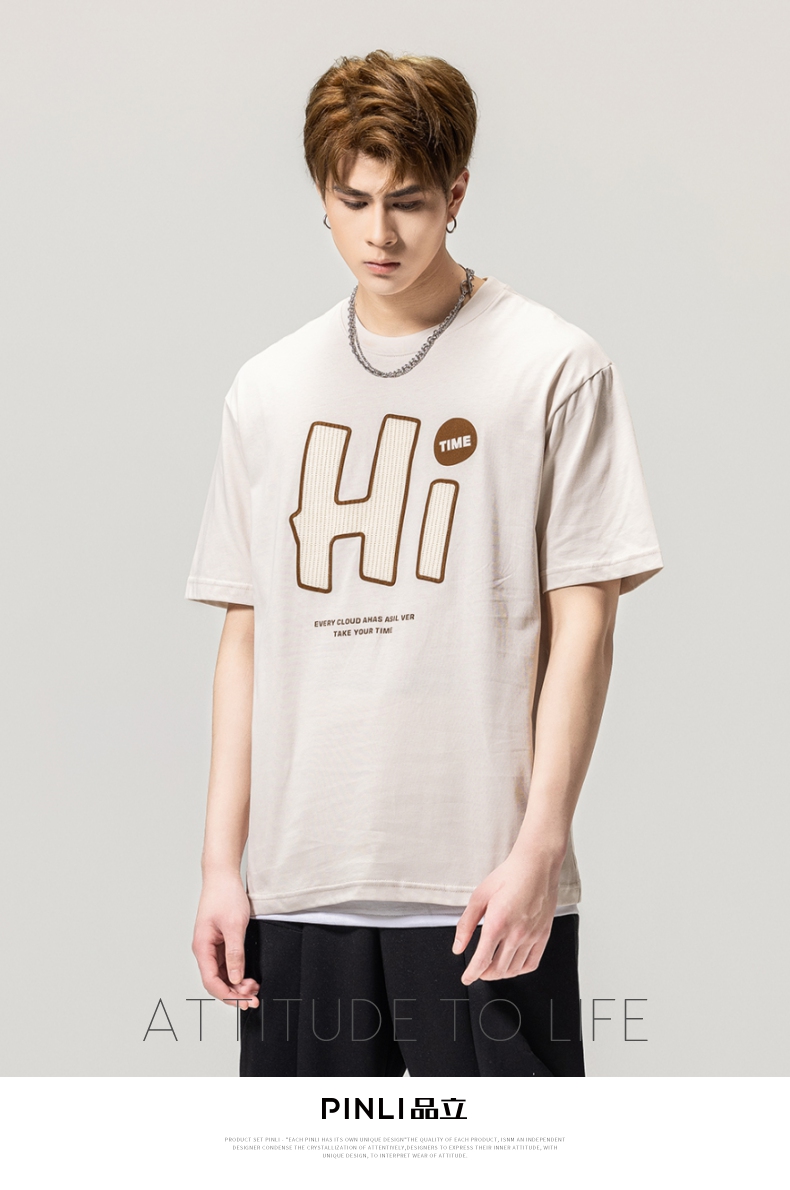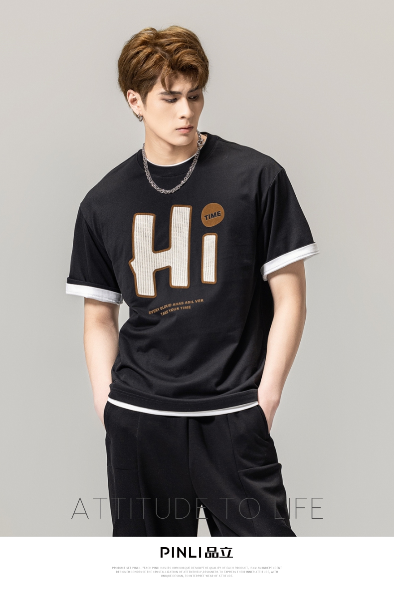 PINLI品立春季新款男士字母圆领短袖T恤休闲上衣BG231111034