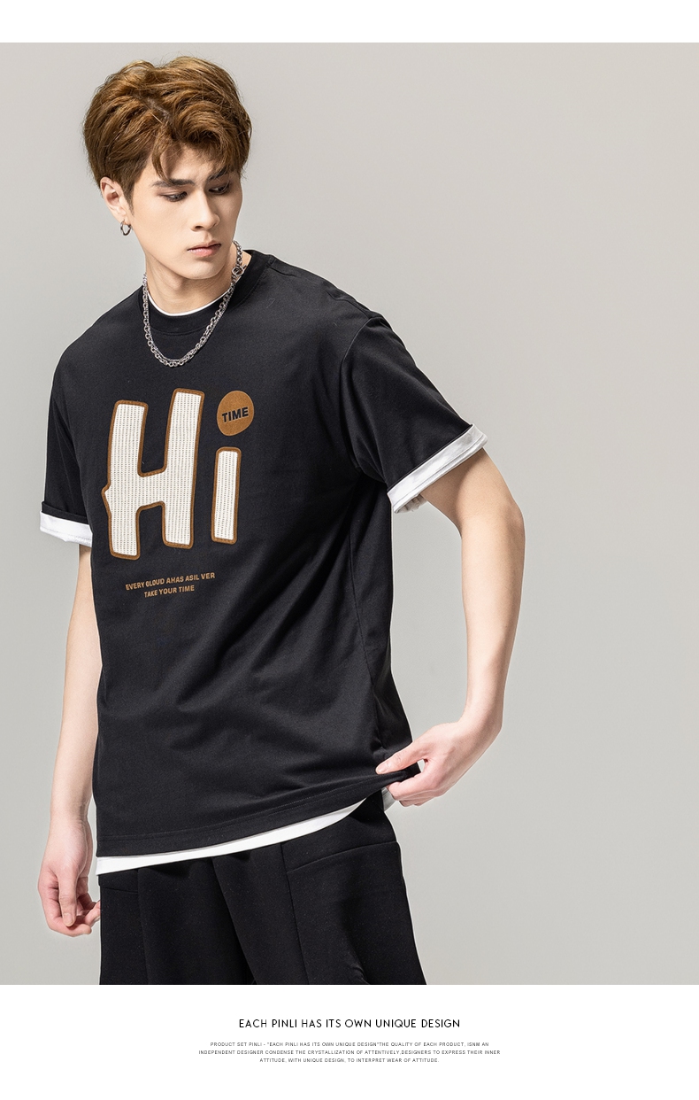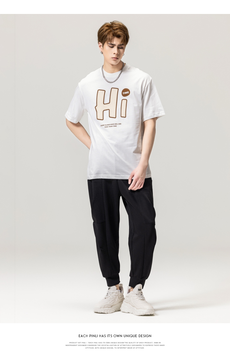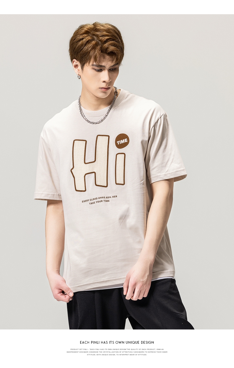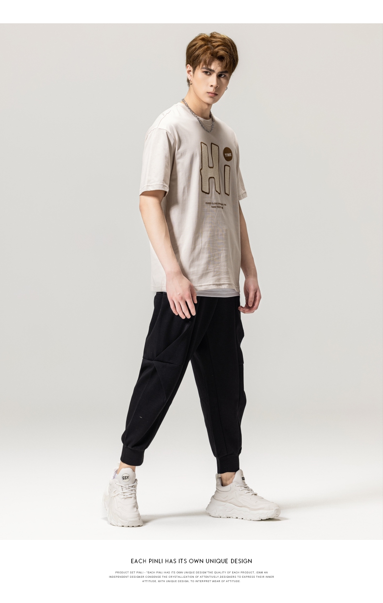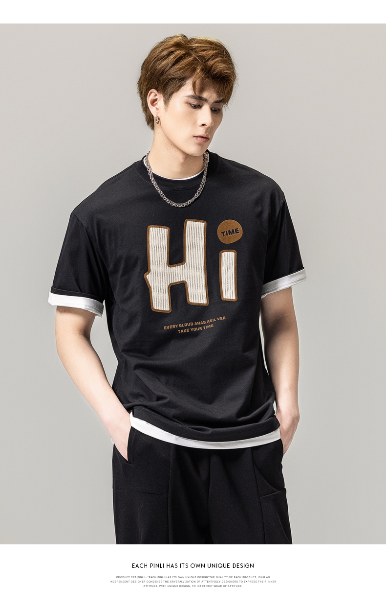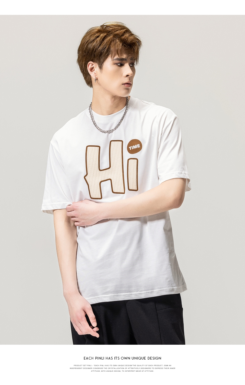 PINLI品立春季新款男士字母圆领短袖T恤休闲上衣BG231111034