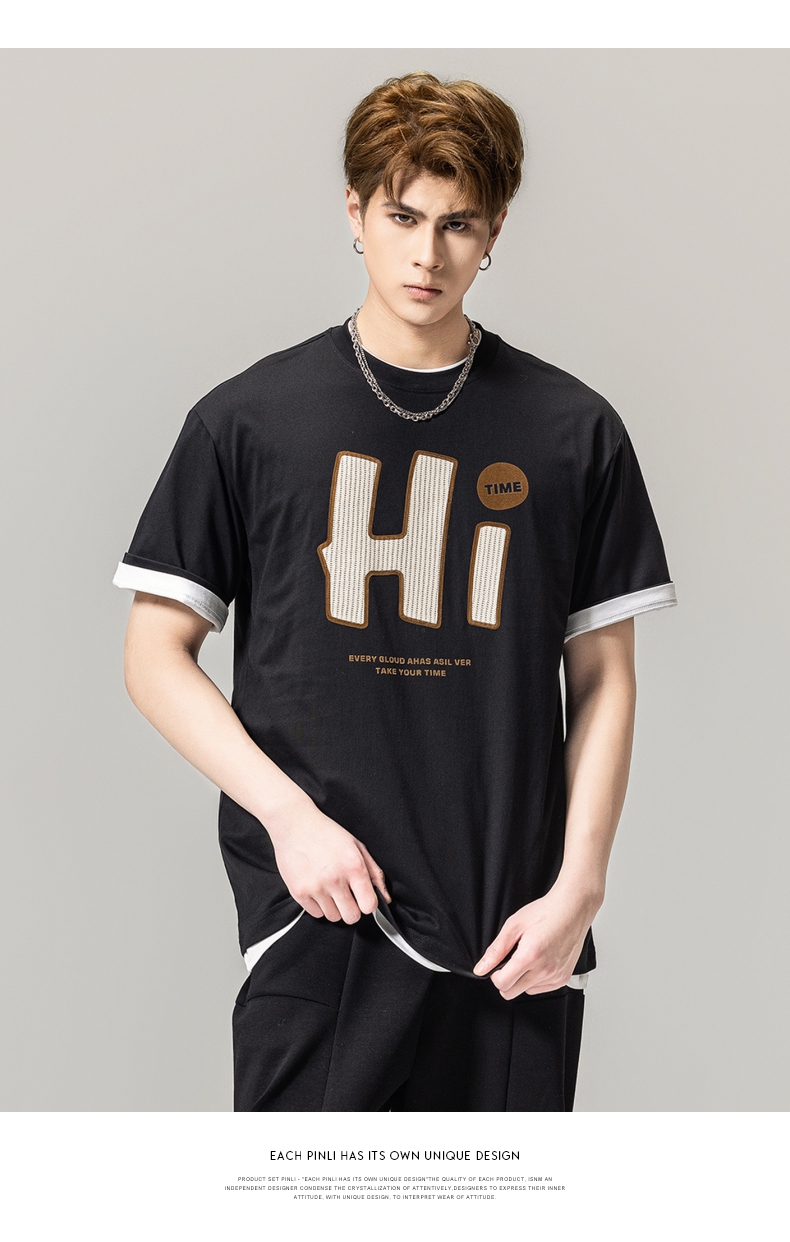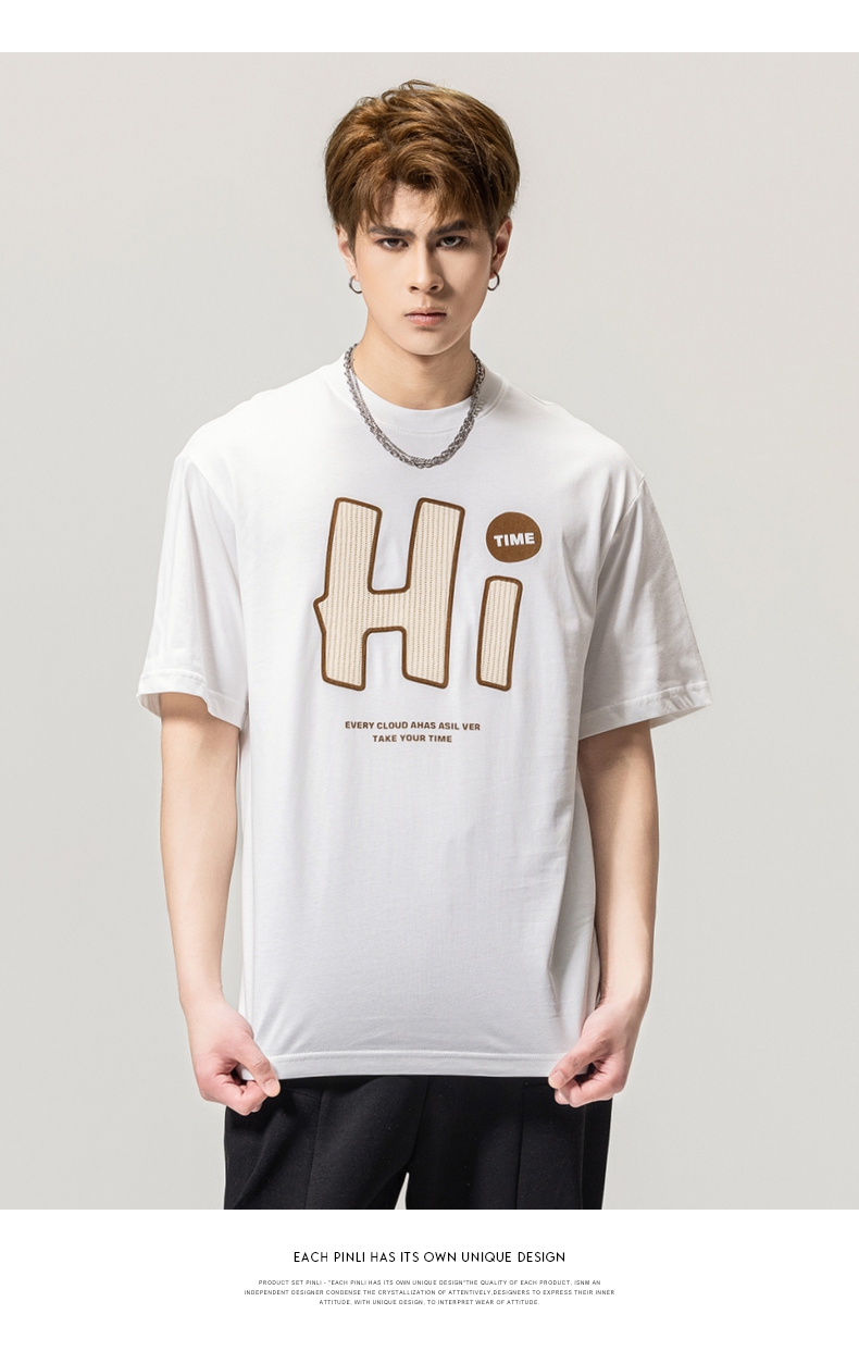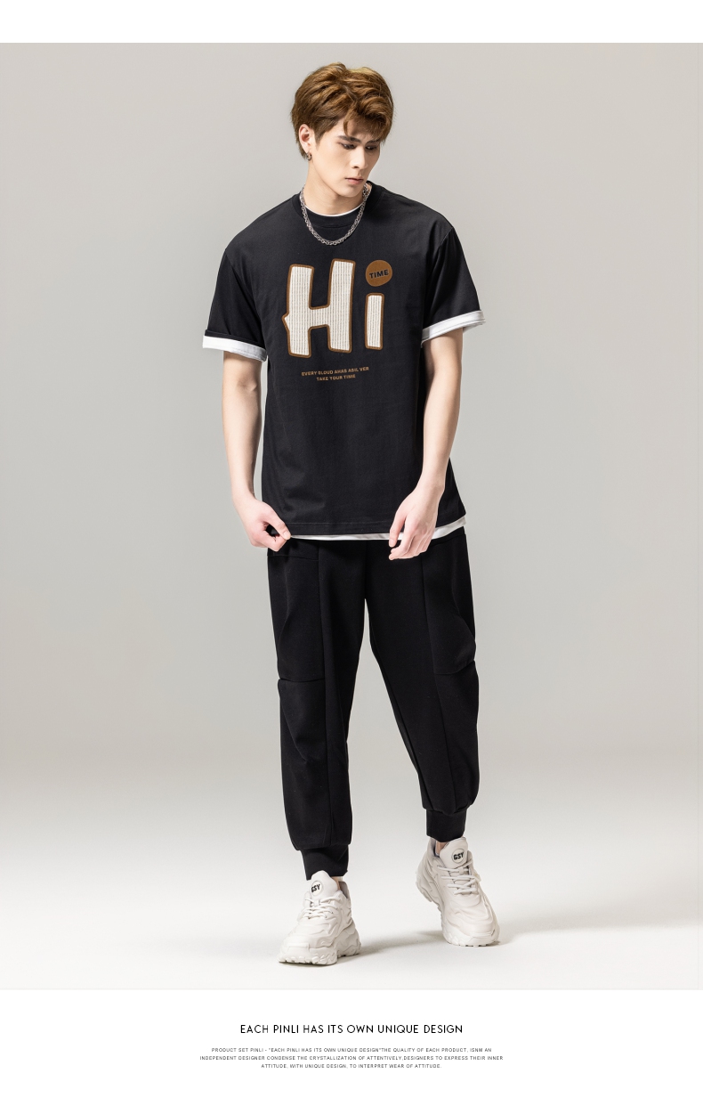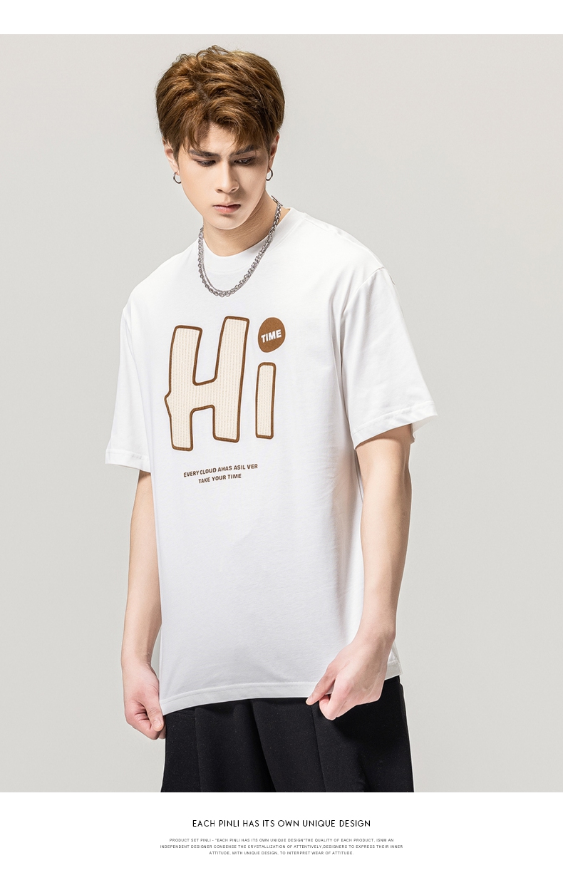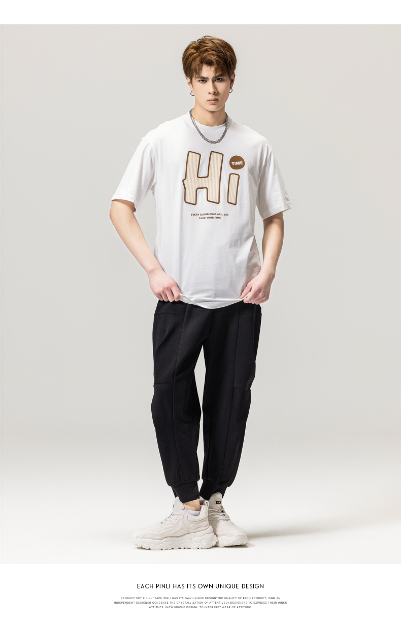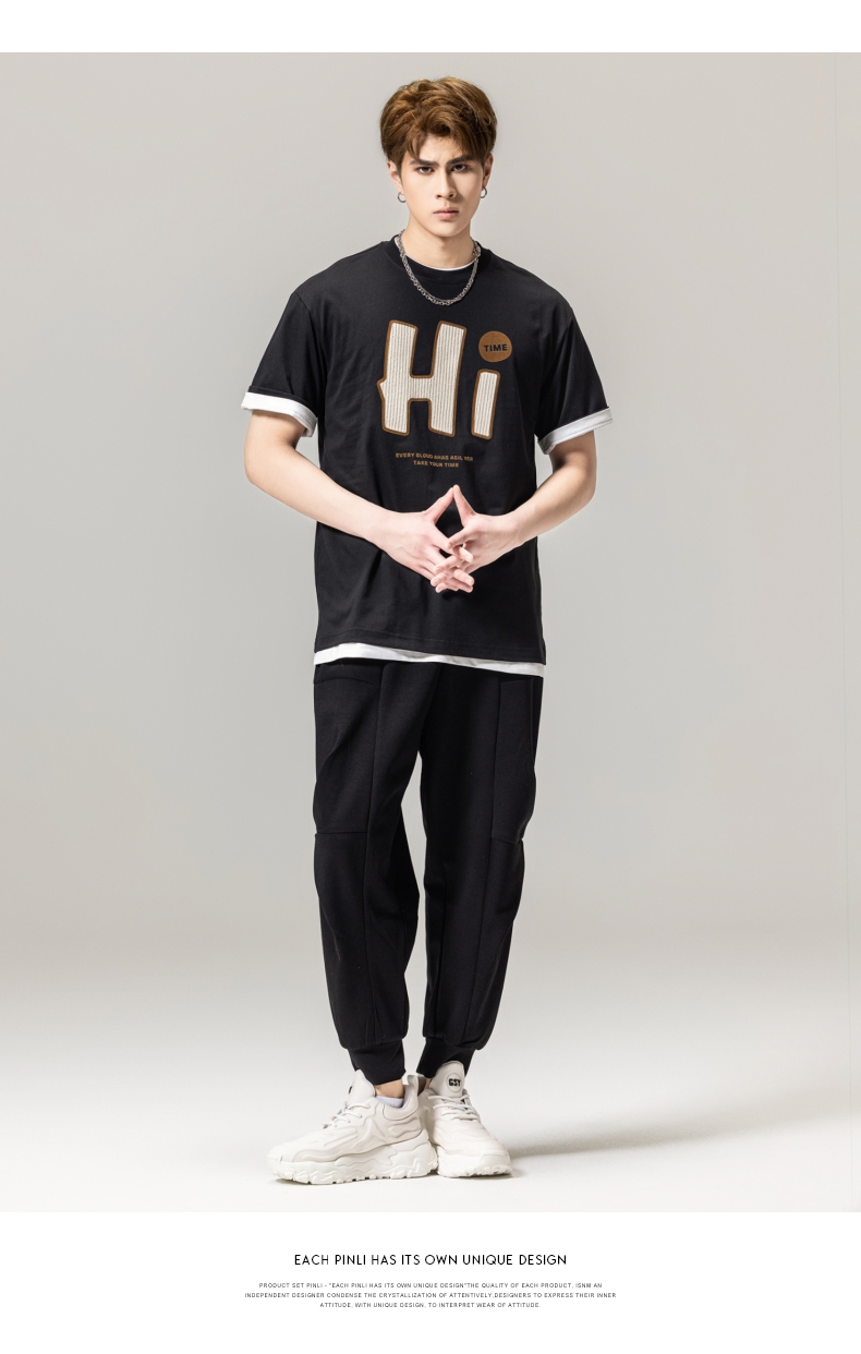 PINLI品立春季新款男士字母圆领短袖T恤休闲上衣BG231111034