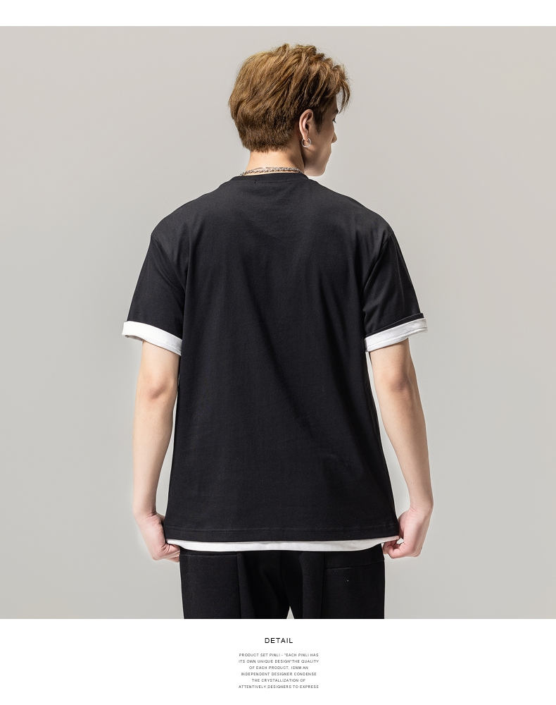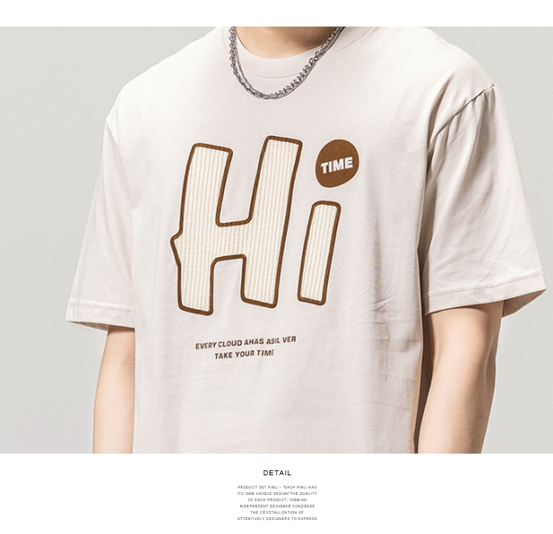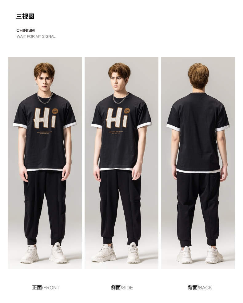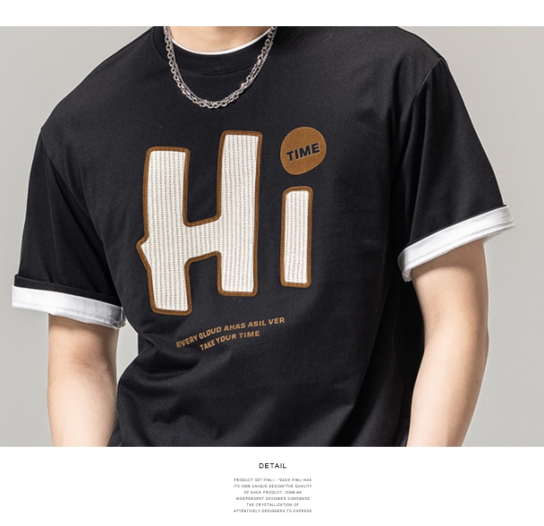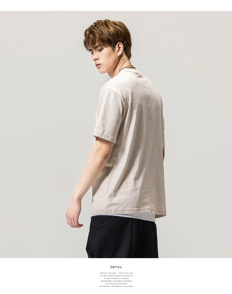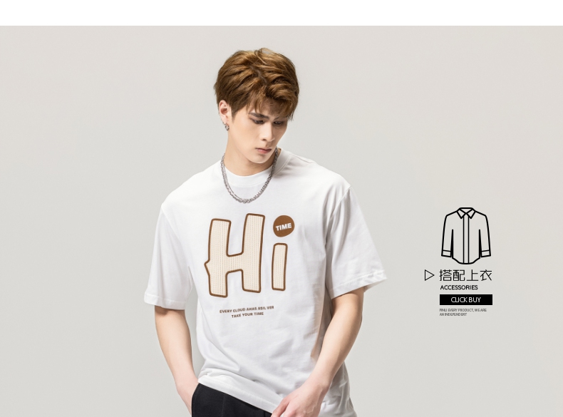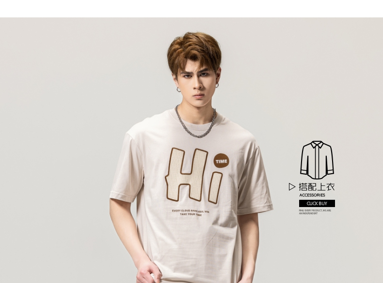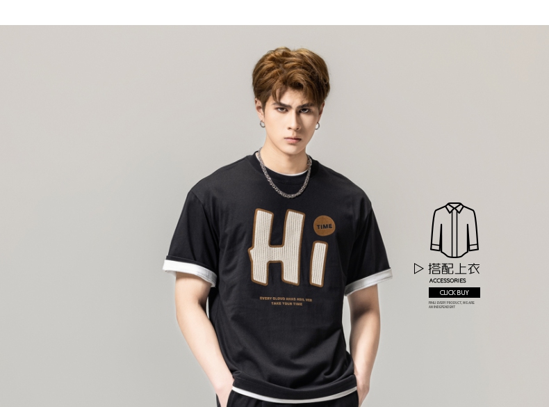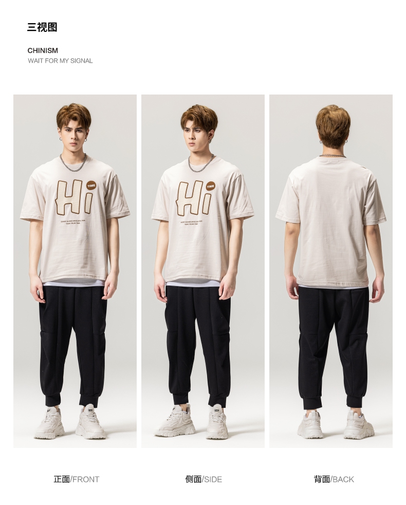 PINLI品立春季新款男士字母圆领短袖T恤休闲上衣BG231111034