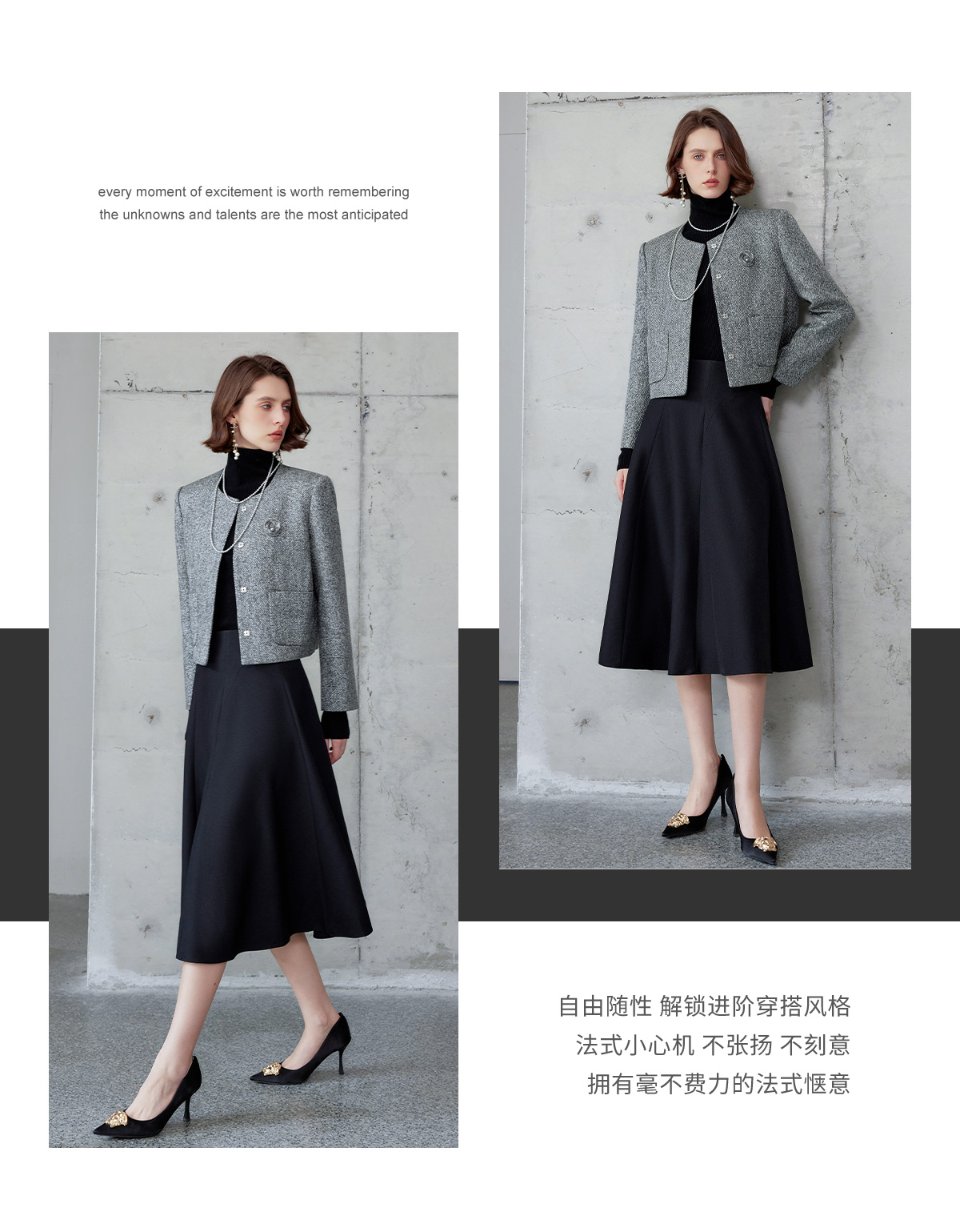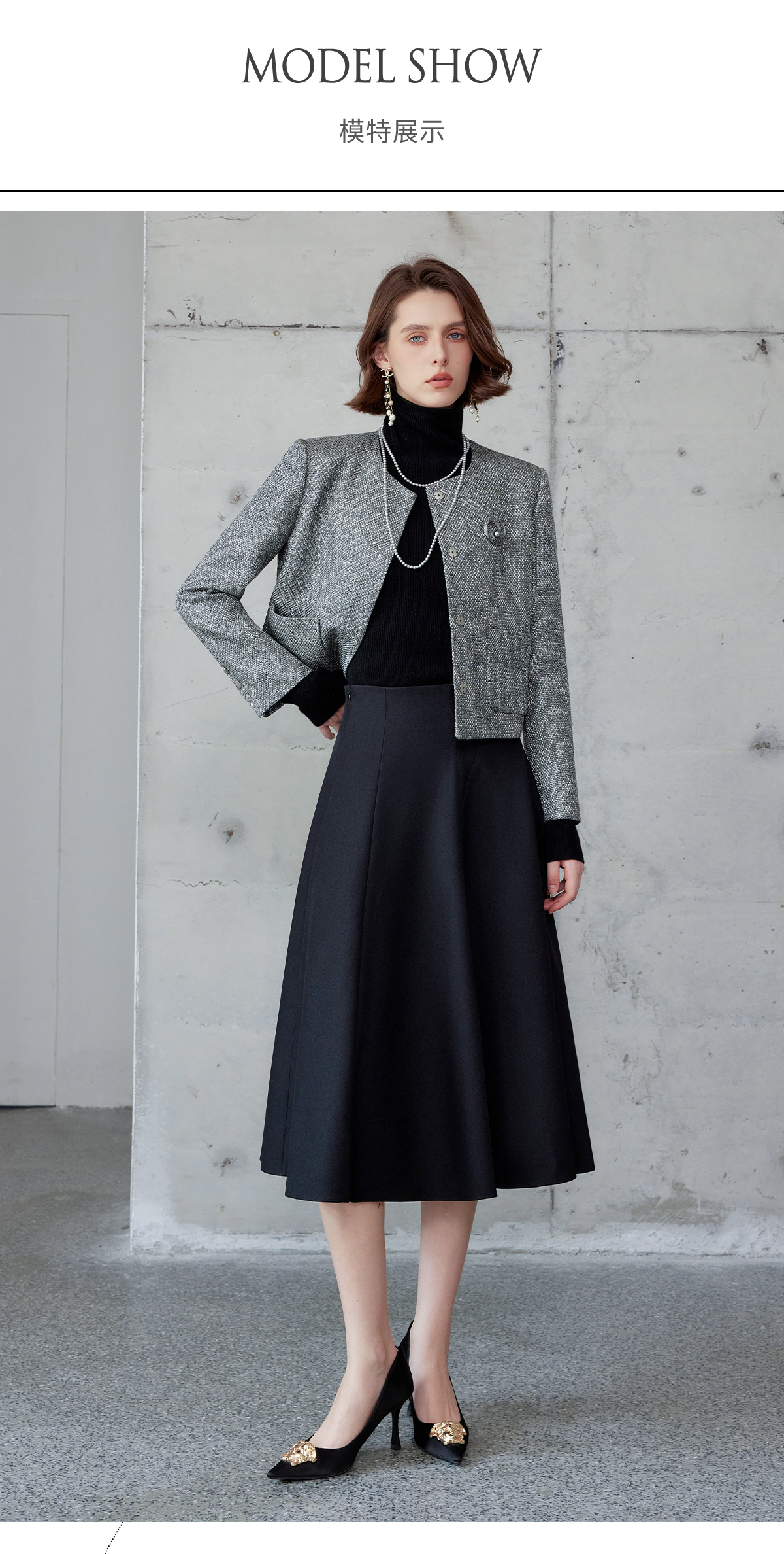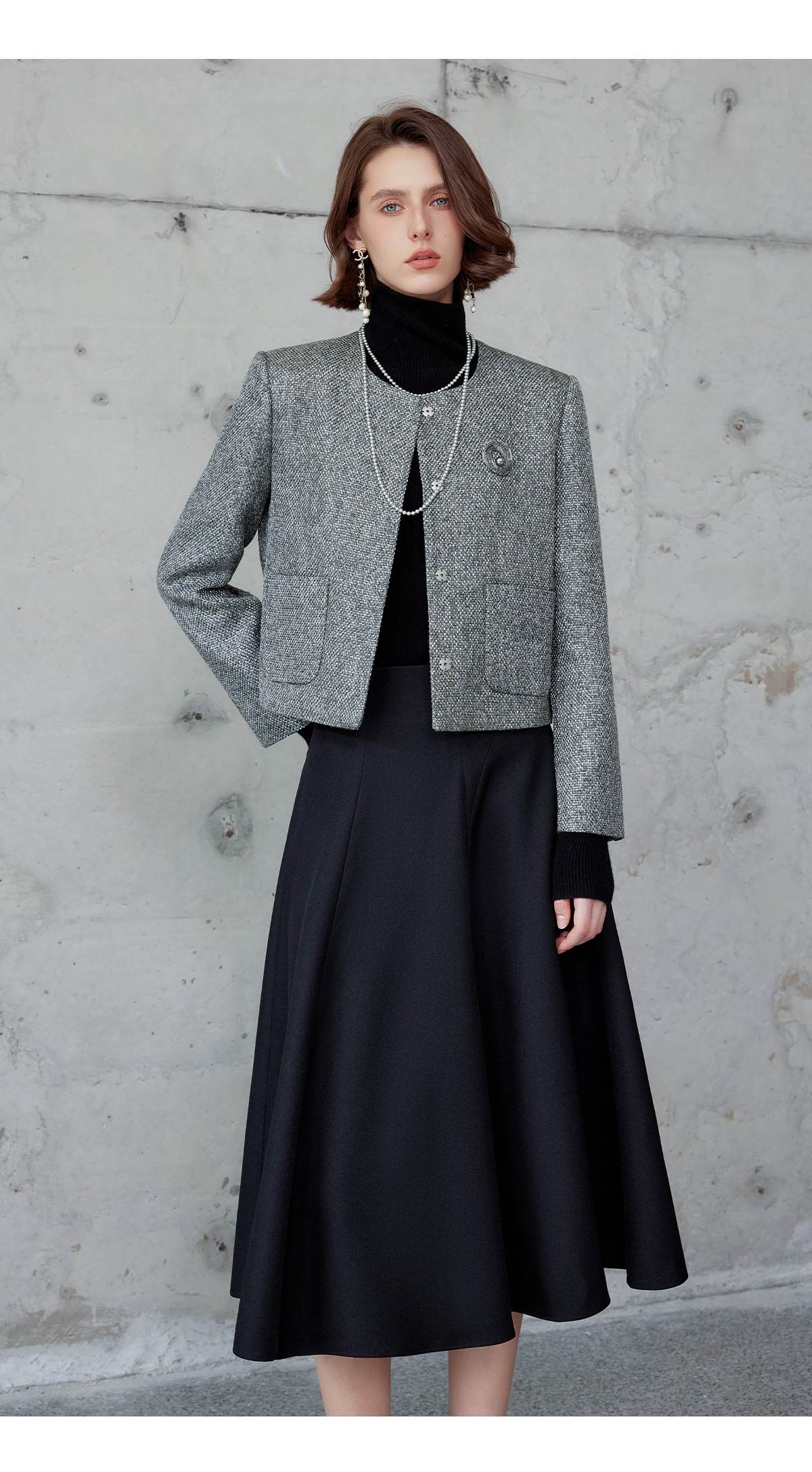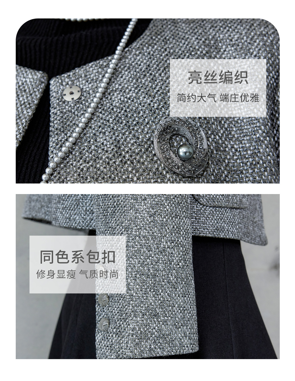 AD时尚套装女2024秋冬圆领小香风外套亮丝编织粗花呢长袖高端伞裙