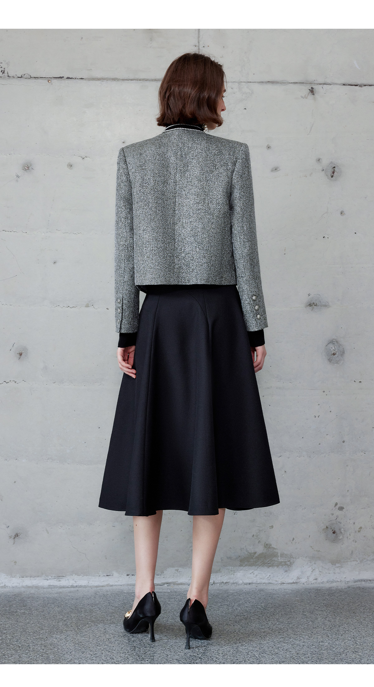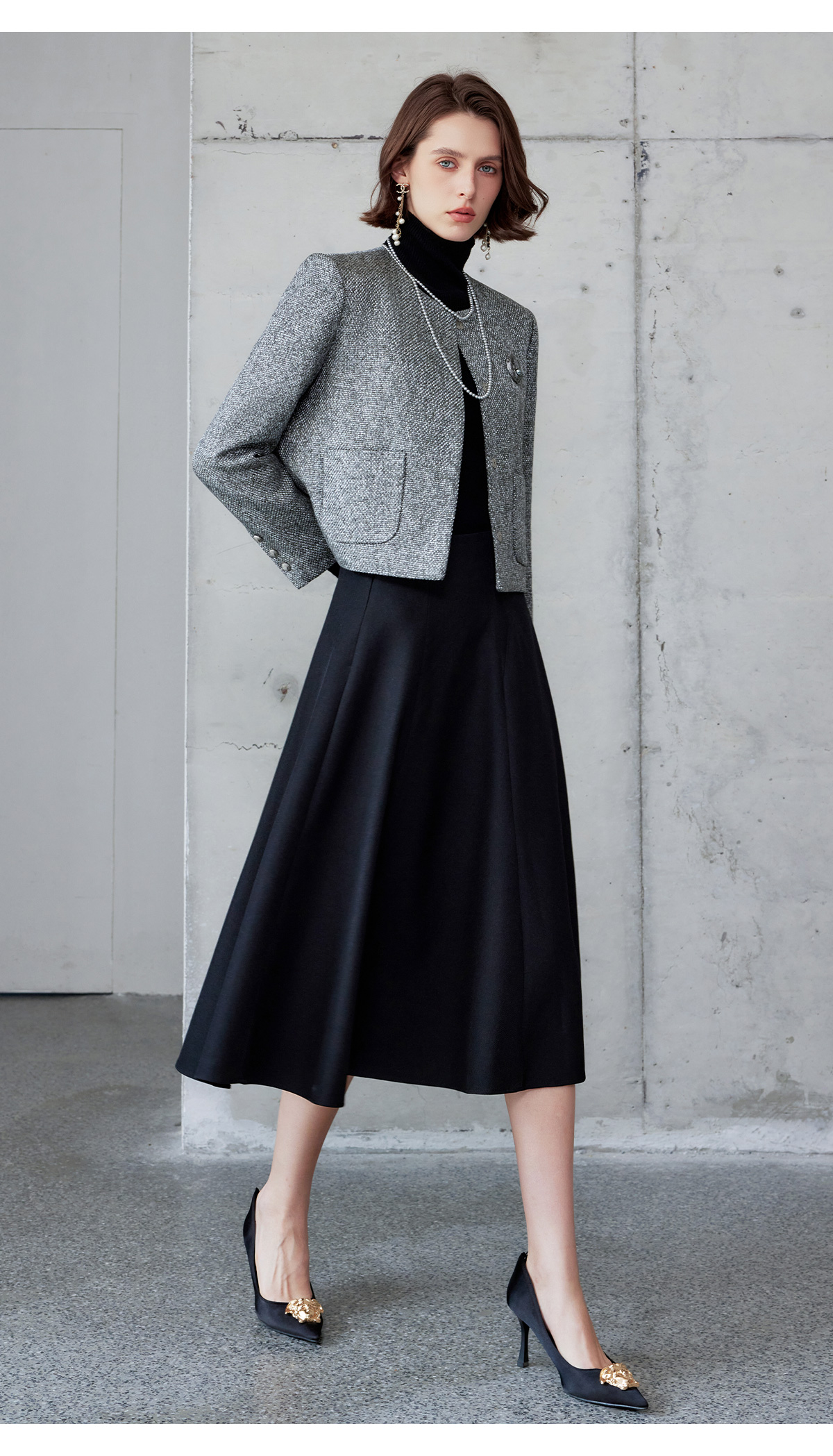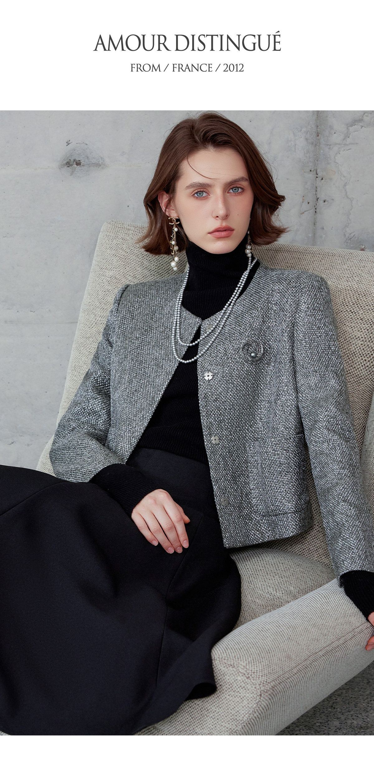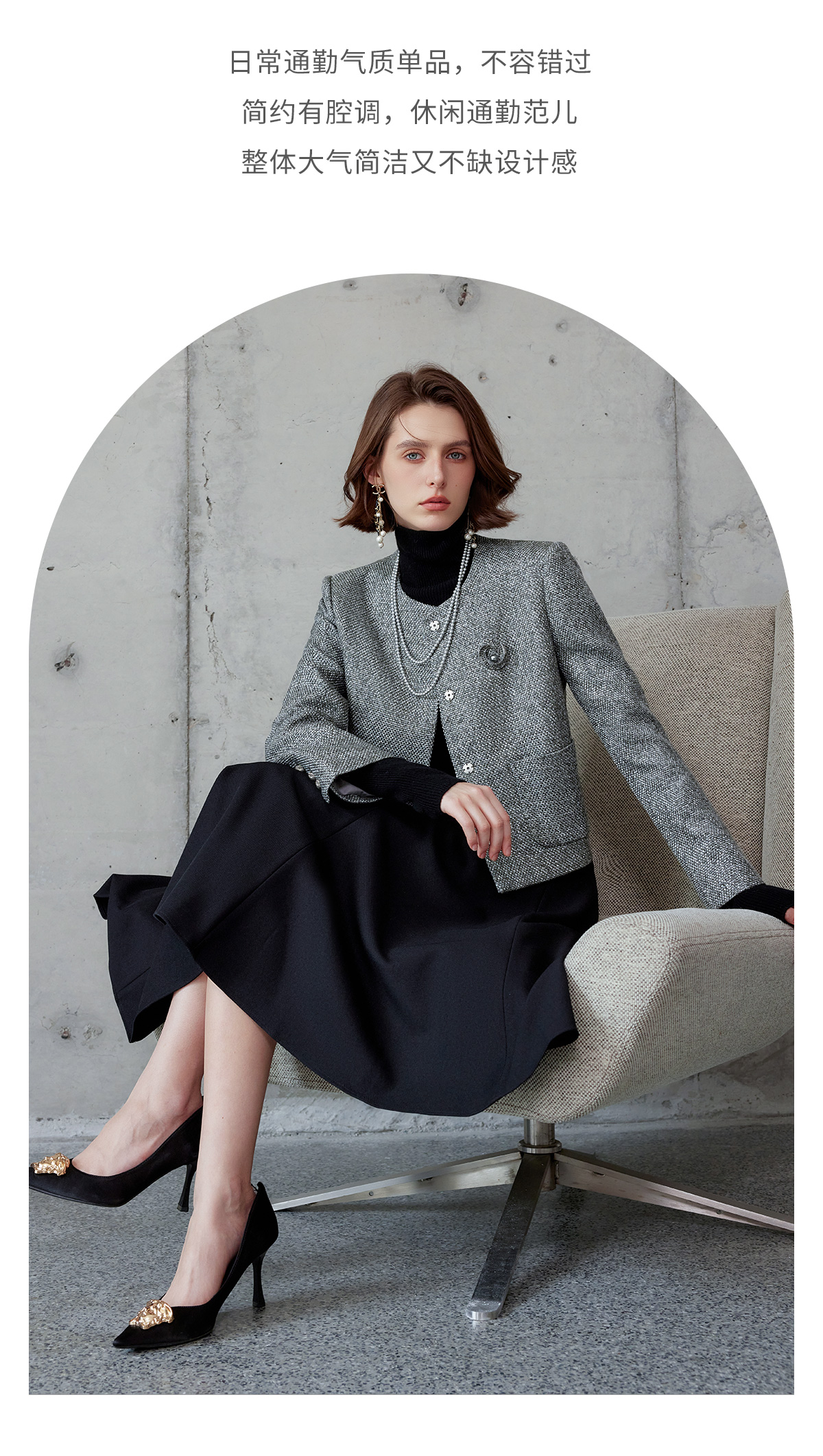 AD时尚套装女2024秋冬圆领小香风外套亮丝编织粗花呢长袖高端伞裙