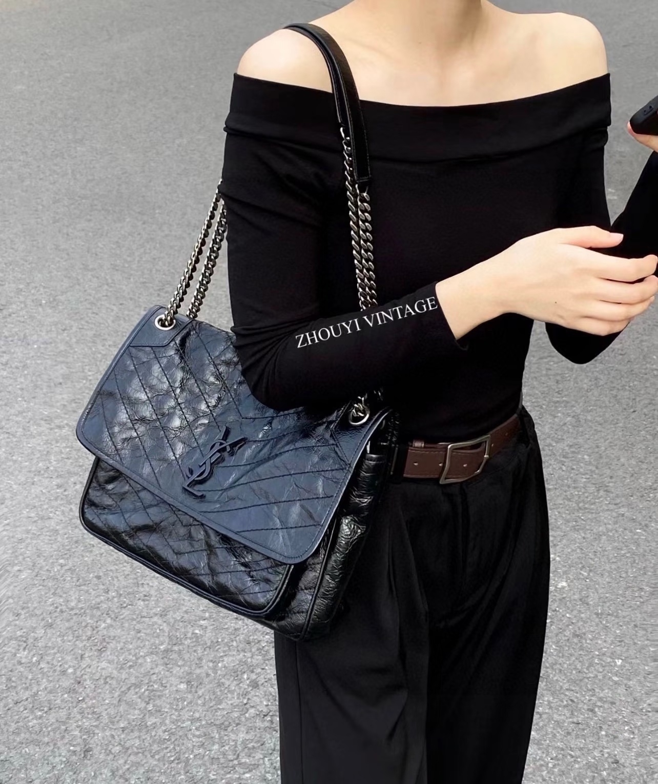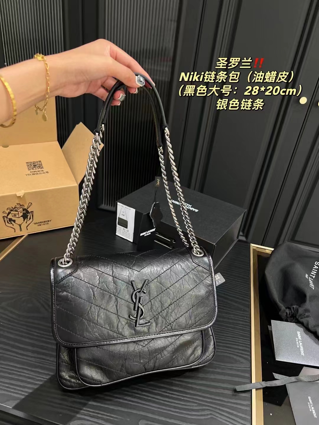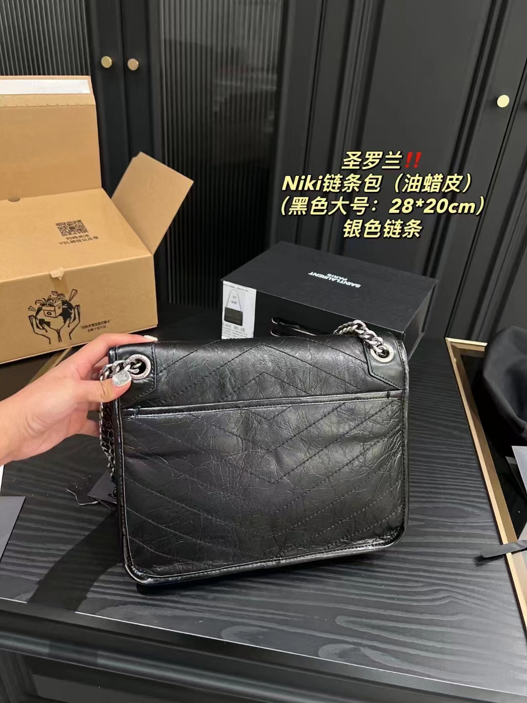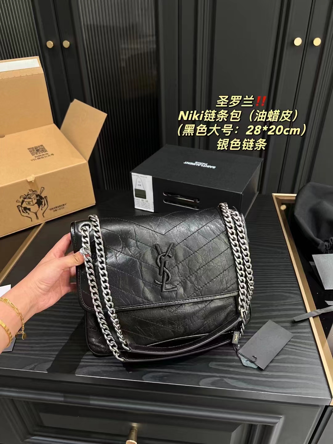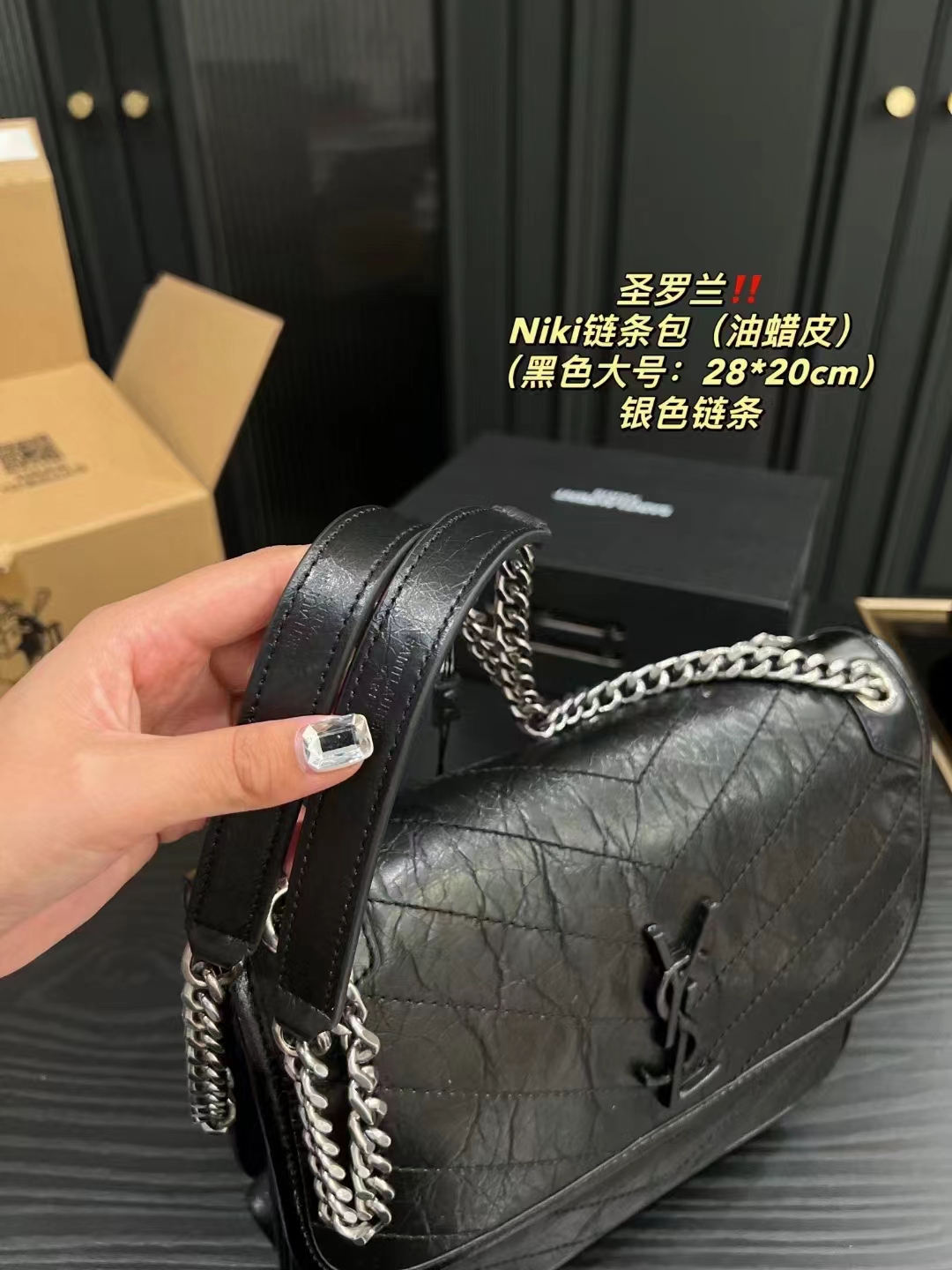 圣罗兰Niki链条包,进口油蜡皮,又酷又飒低调的奢华 。