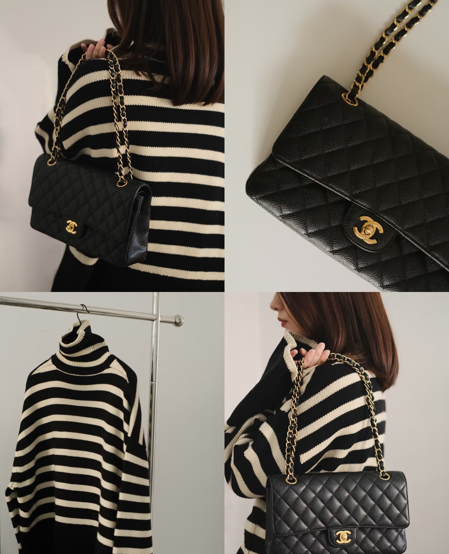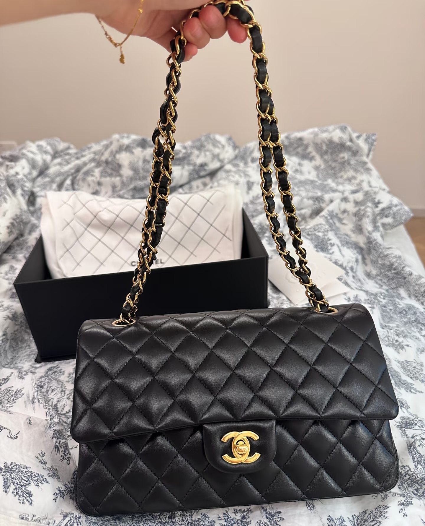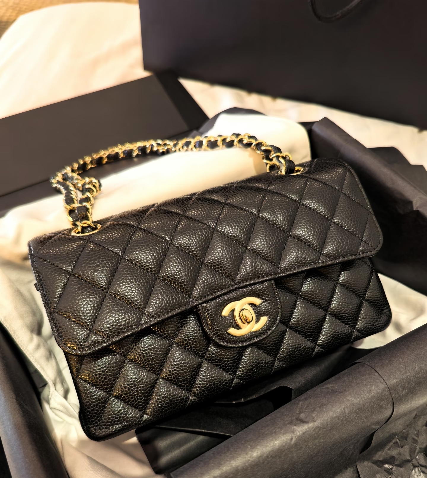小香cf金扣经典款,里外全羊皮。有全套包装,自己背送人都非常好。