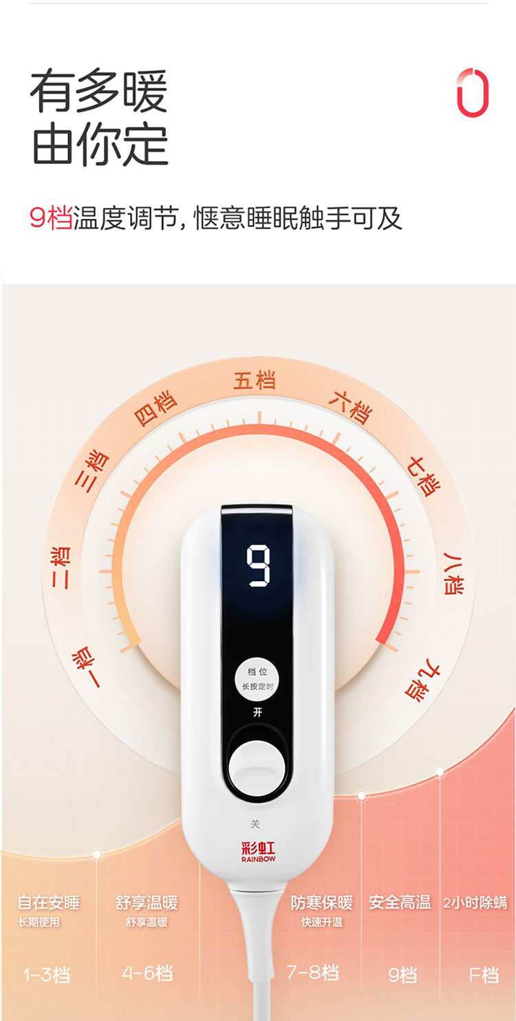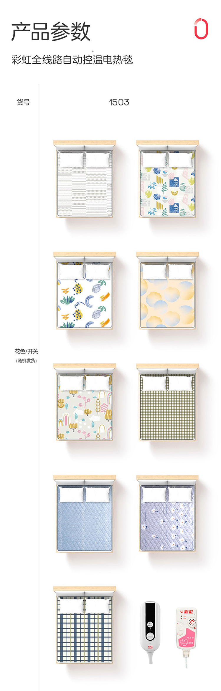 彩虹单面纯棉自动控温(长1.6*宽1.0米)电热毯1503(单人单面纯棉)【花色随机】
