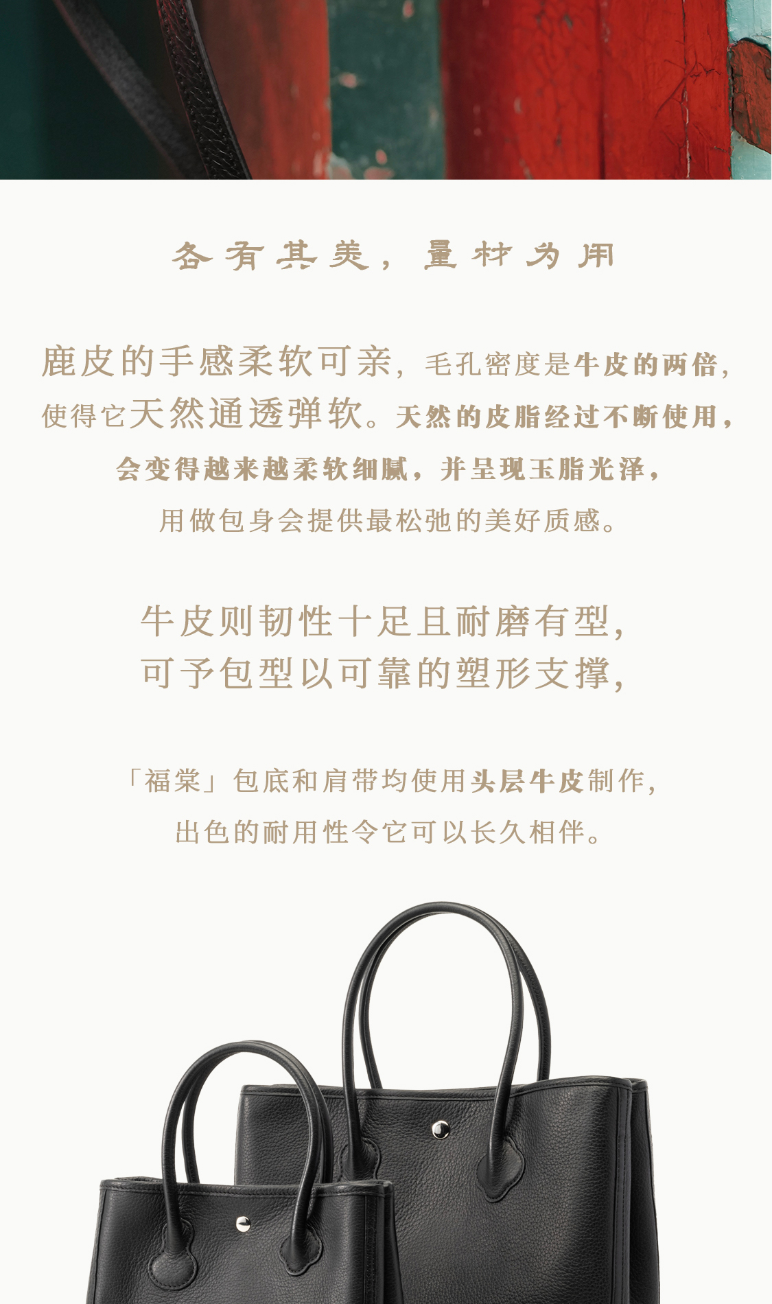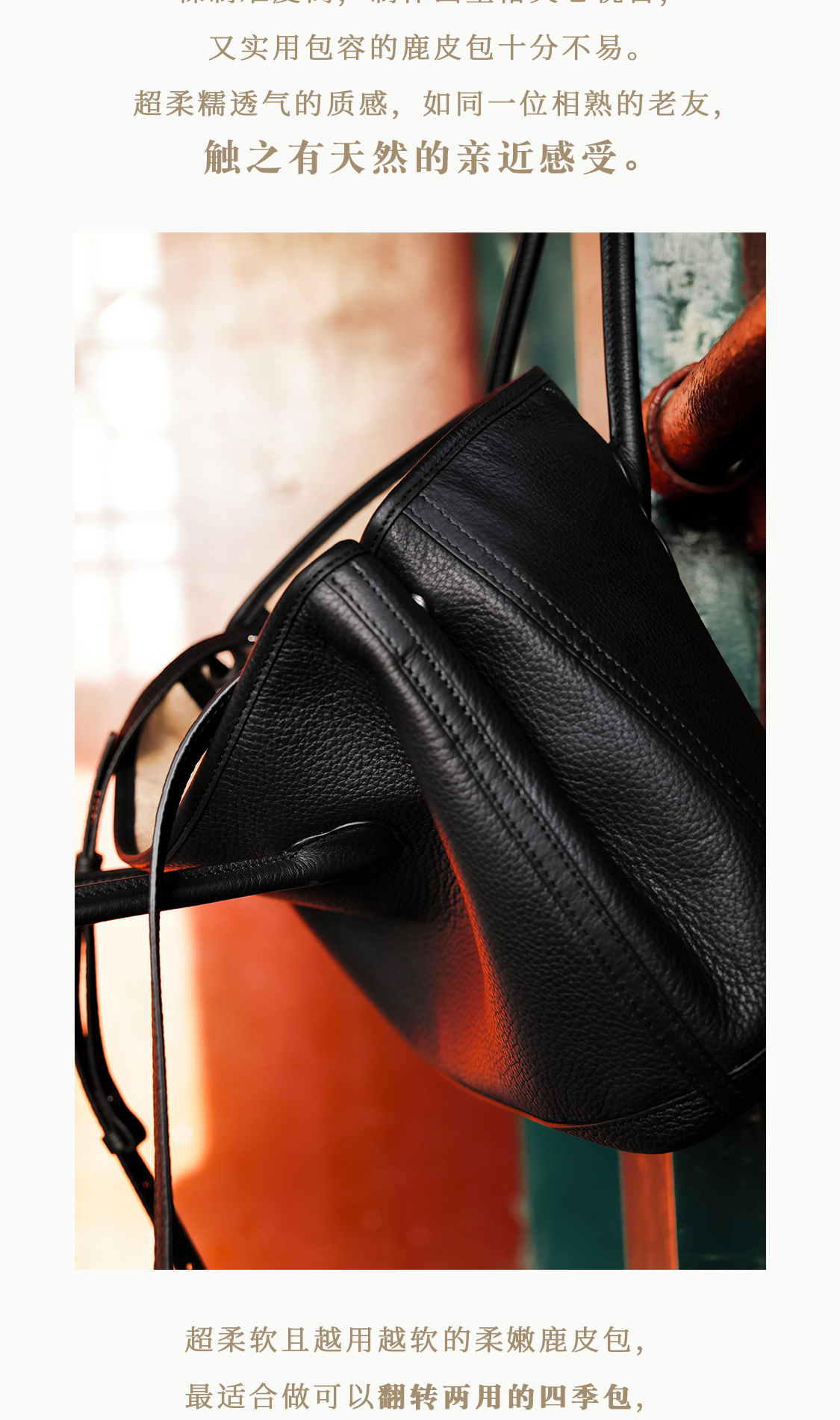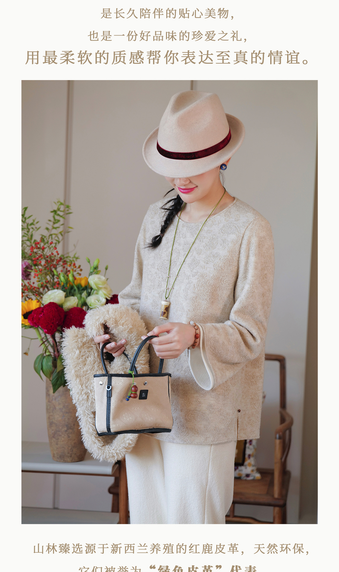 福棠 新西兰红鹿皮手工两用托特包 轻柔软纹高质手感 山林曦照