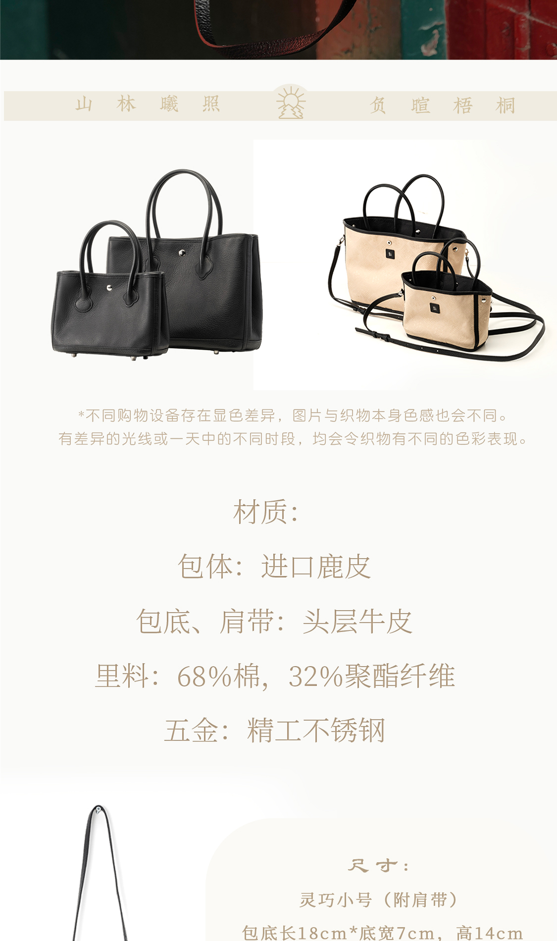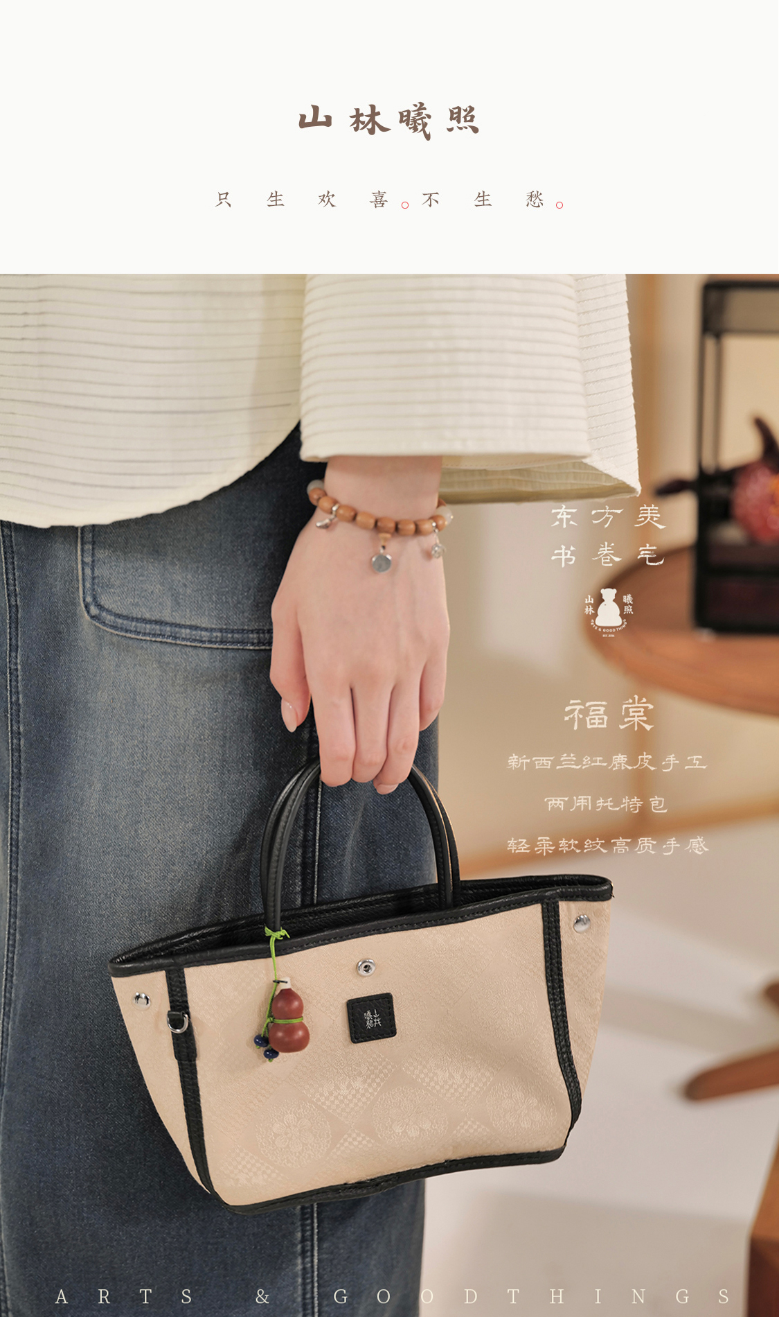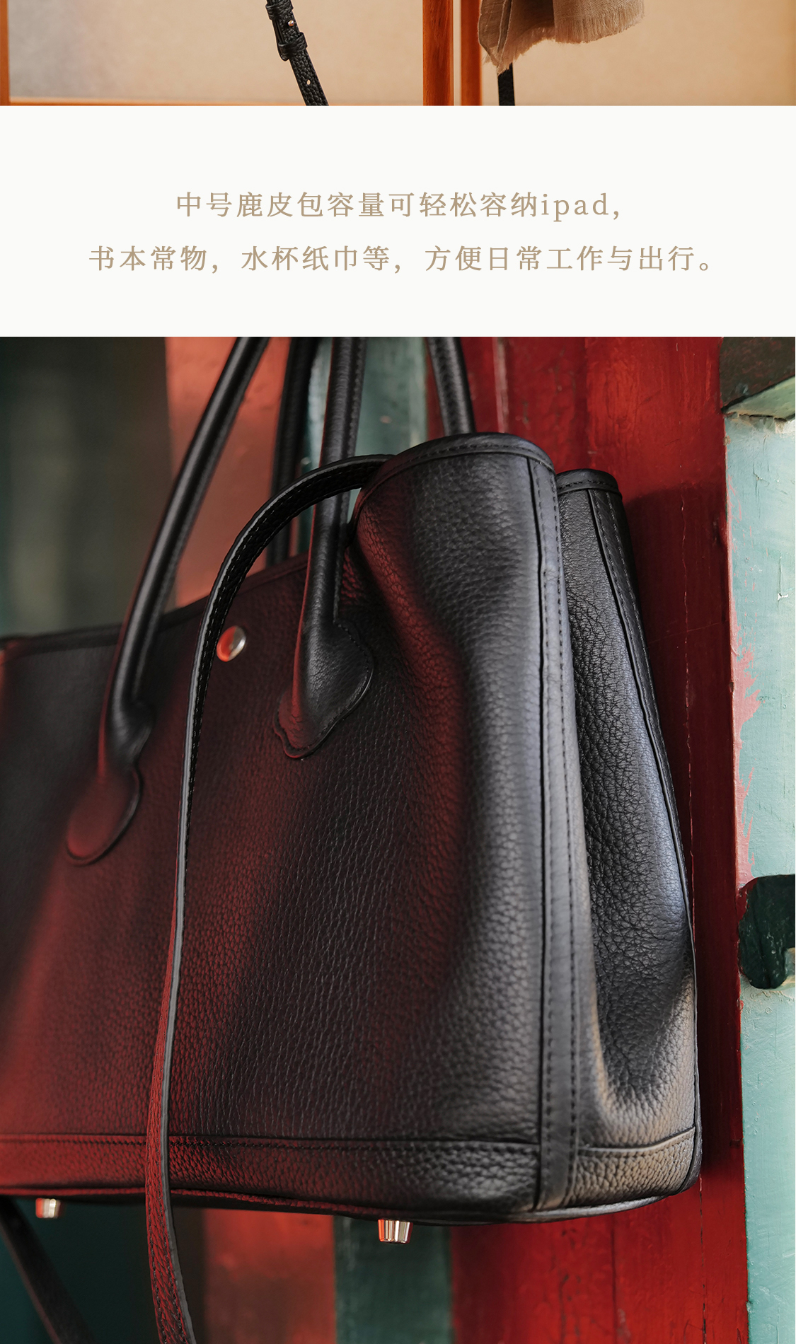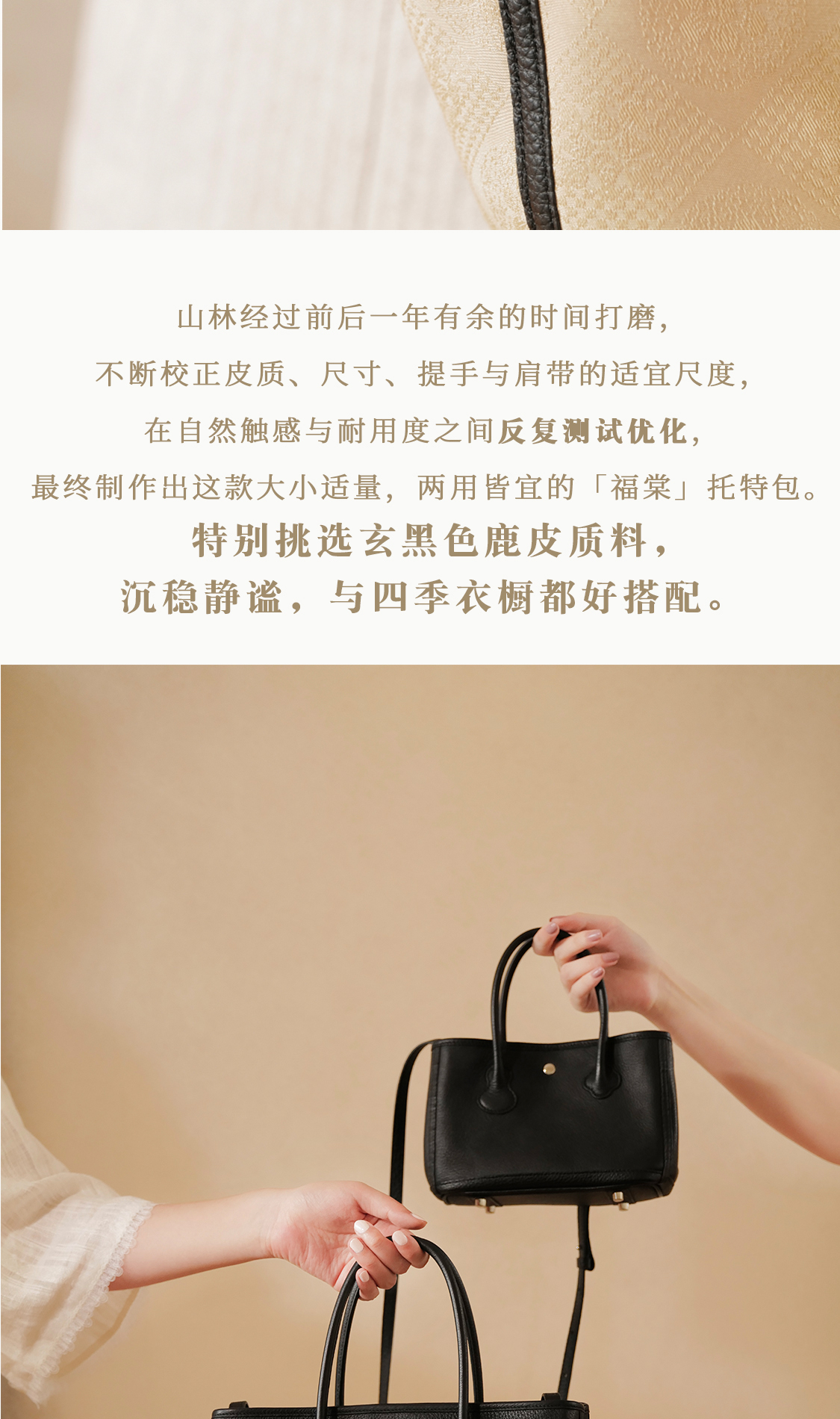 福棠 新西兰红鹿皮手工两用托特包 轻柔软纹高质手感 山林曦照