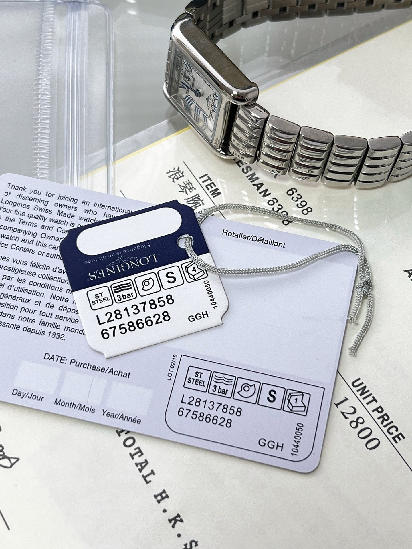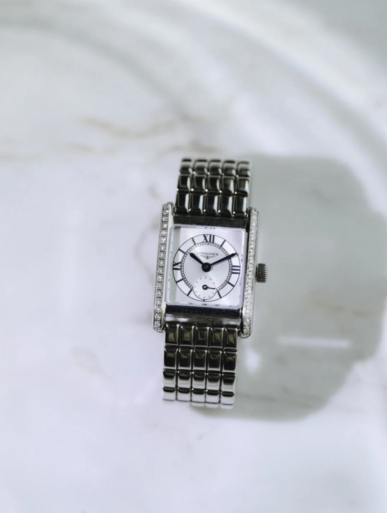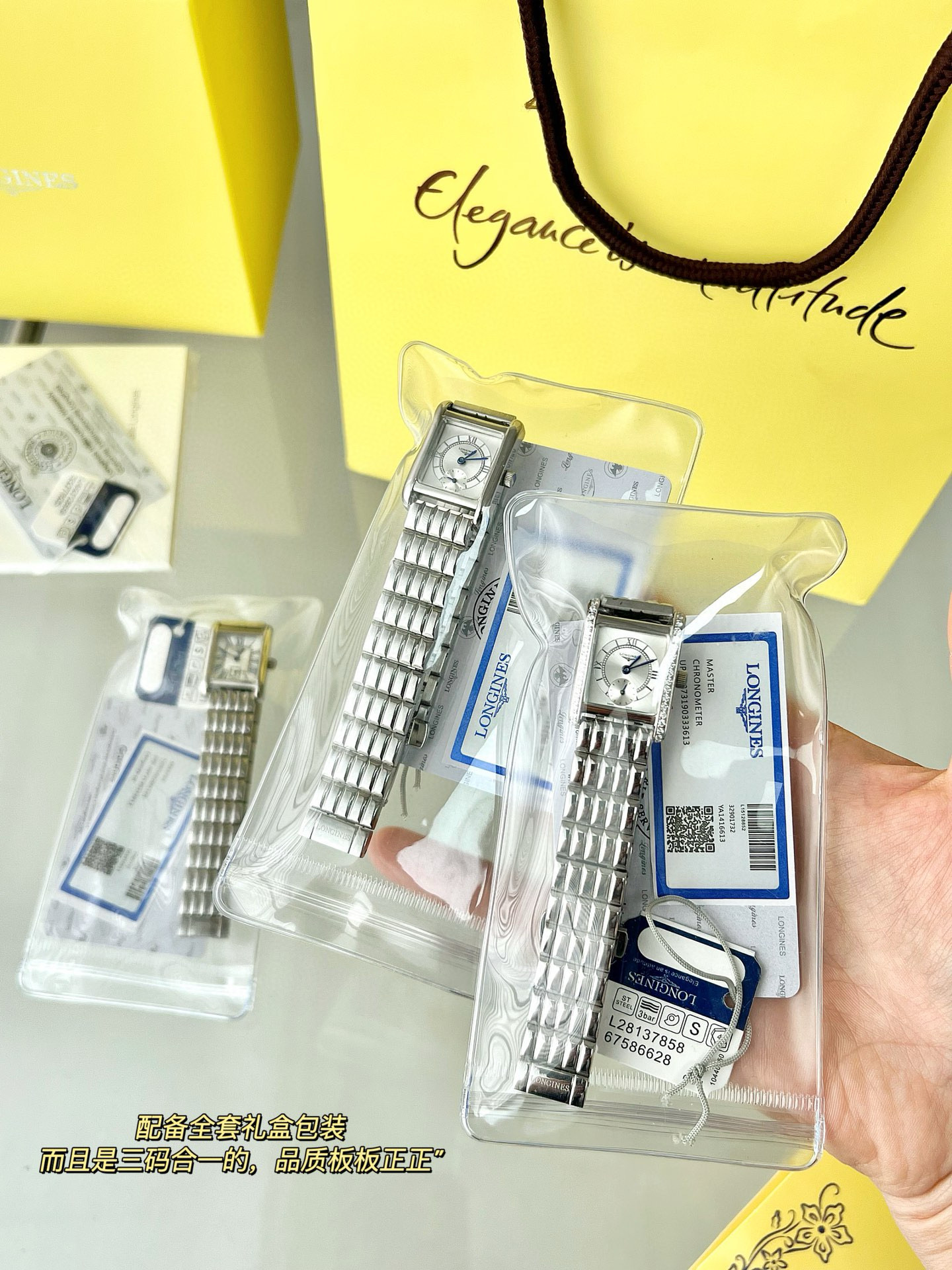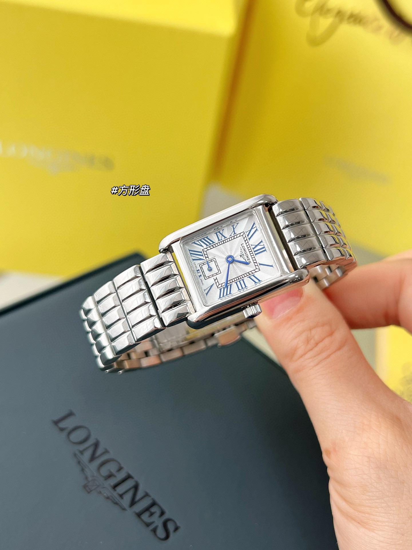 花小钱办大事, 随便出入专柜,张丽颖同款,浪琴蓝宝石镜面,精钢表带 蝴蝶扣开合 穿戴方便自如 K0412Q 是万元腕表界的一匹黑马!!最新款!浪𝗤戴绰维纳迷你小方块手表 小方表