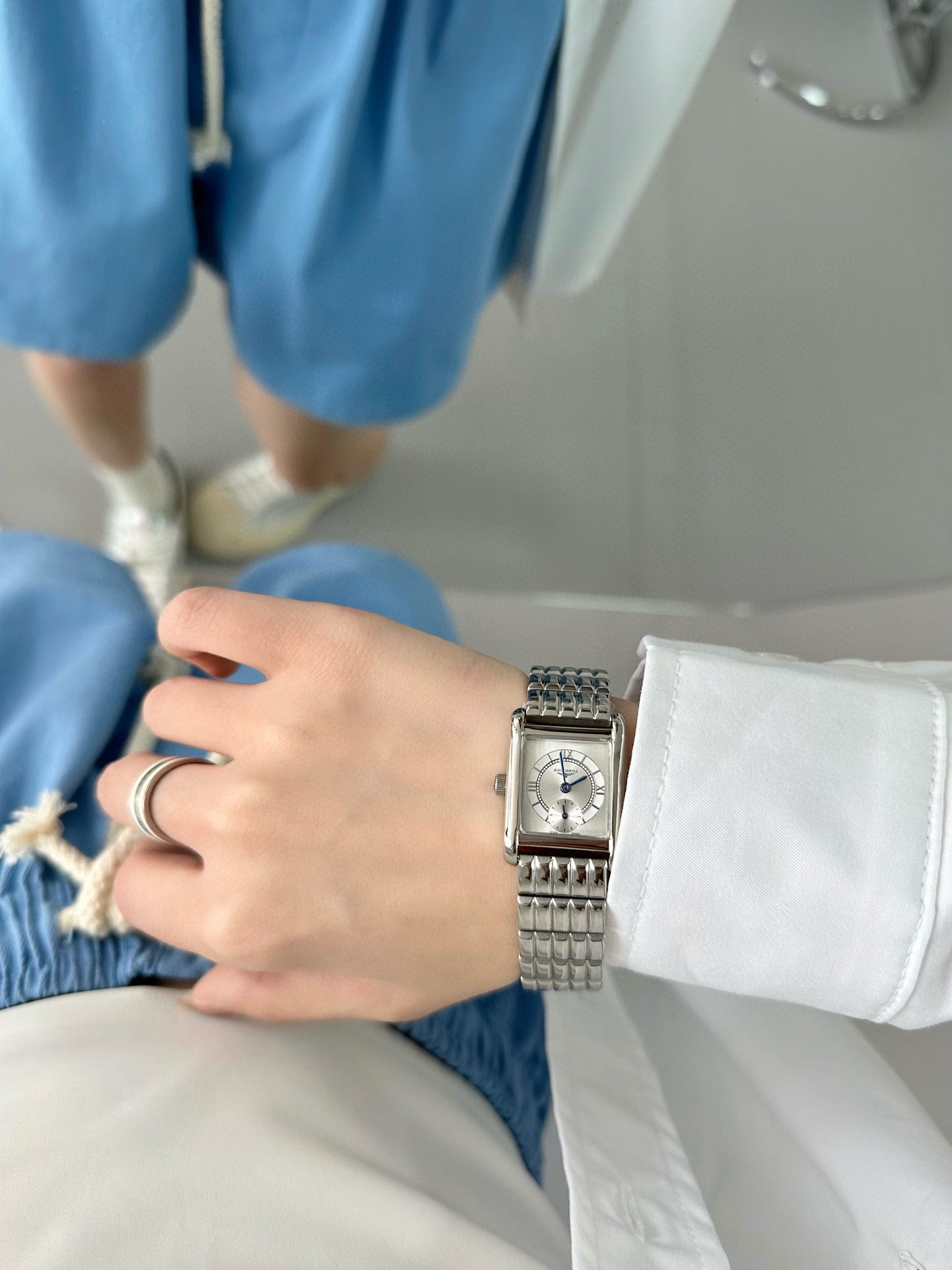 方中有圆的表盘设计,再搭配上精钢腕带,演绎出极致的优雅美学~~