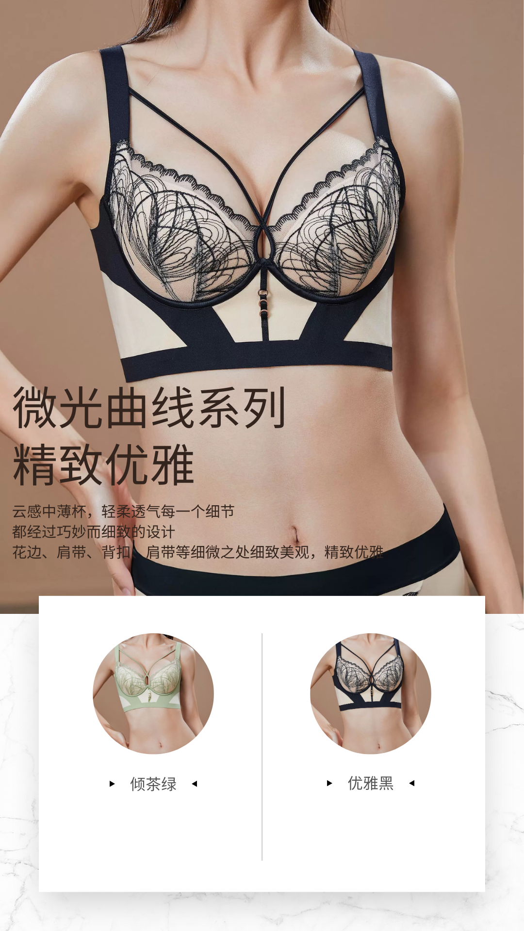 迪兰多新品微光曲线系列夏季透气聚拢轻薄舒适云感定型杯调整型内衣聚拢性感文胸 2118420