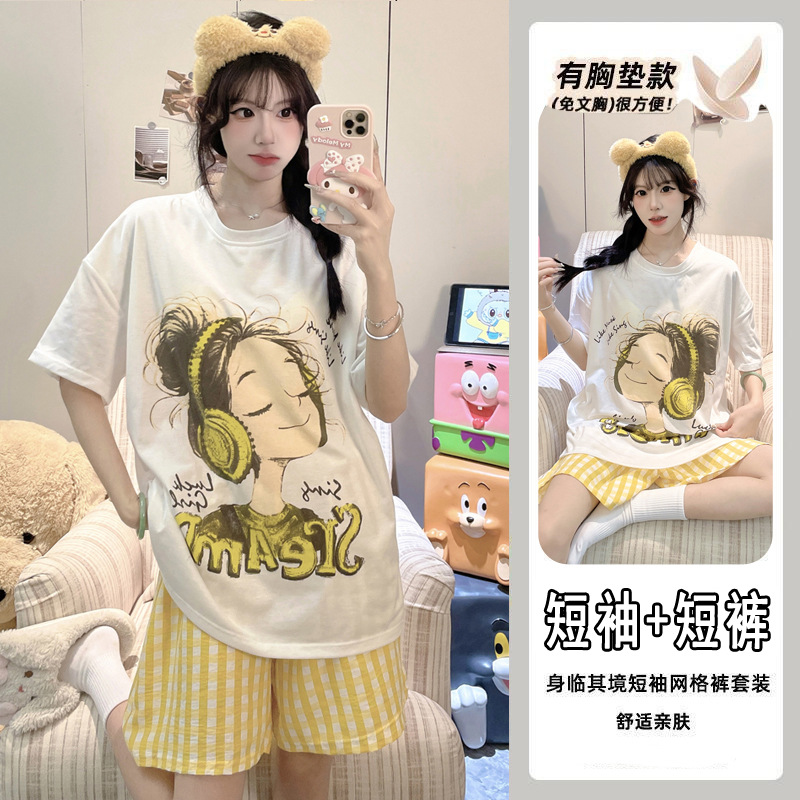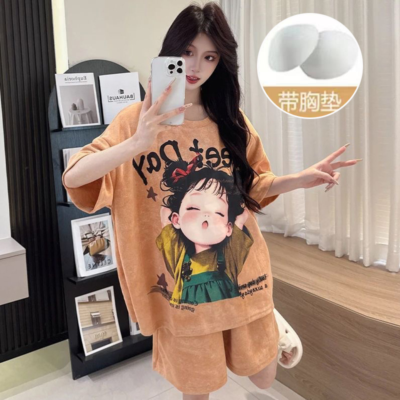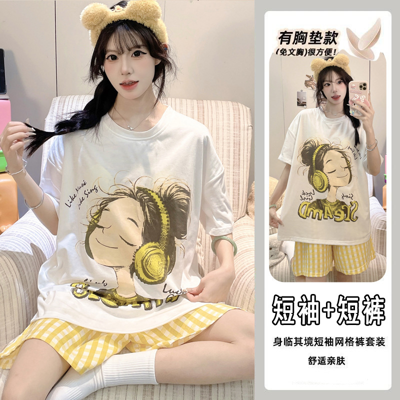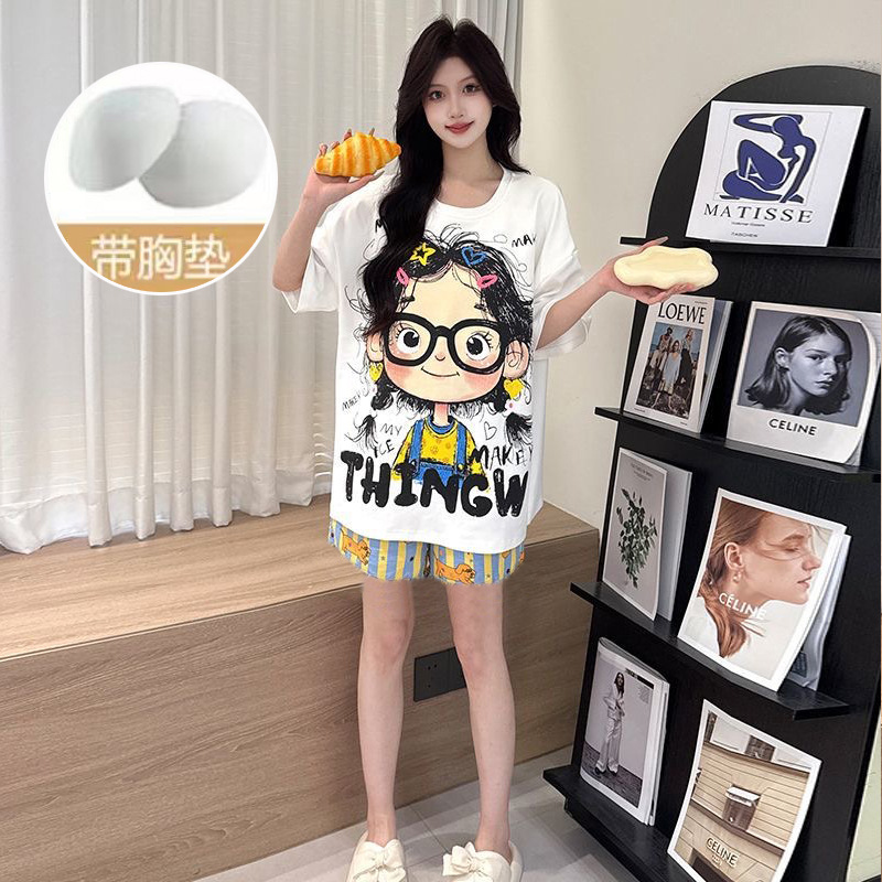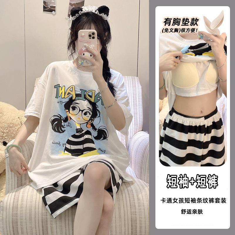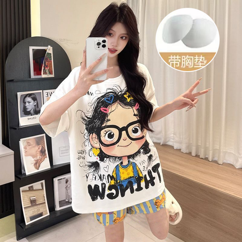 【今日份OOTD❗️卡通睡衣套装】可爱感直接拉满,自带胸垫免穿文胸,宽松大版型不挑身形,柔软亲肤透气不闷汗,短袖短裤甜美卡通女孩韩版印花家居服套装QQ