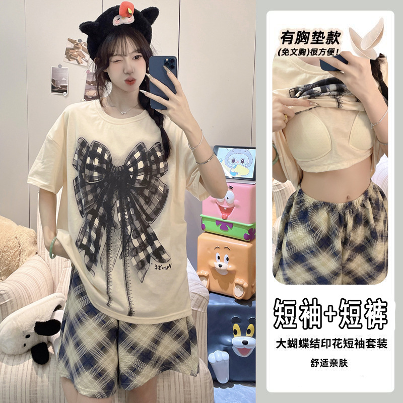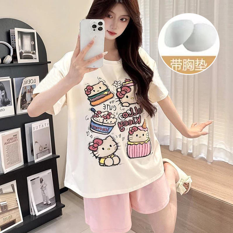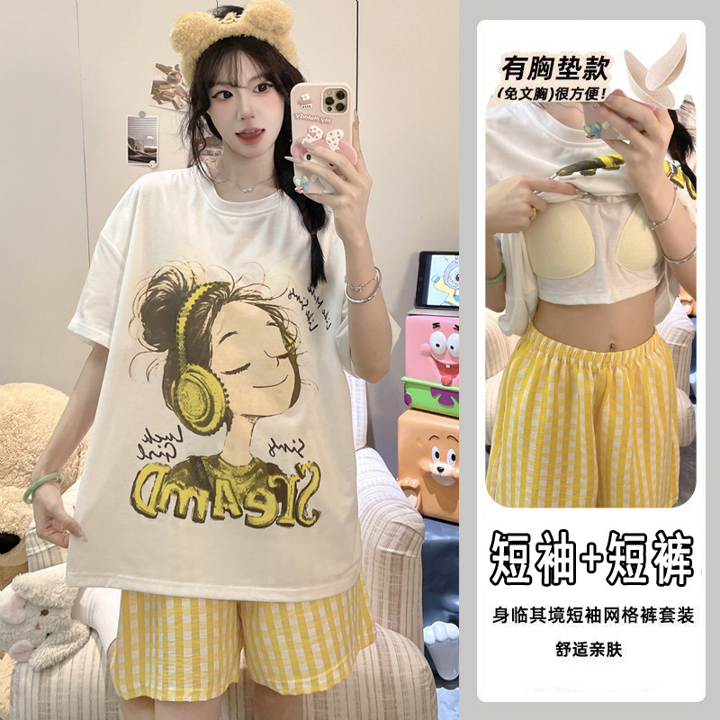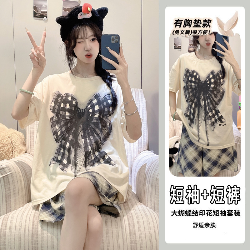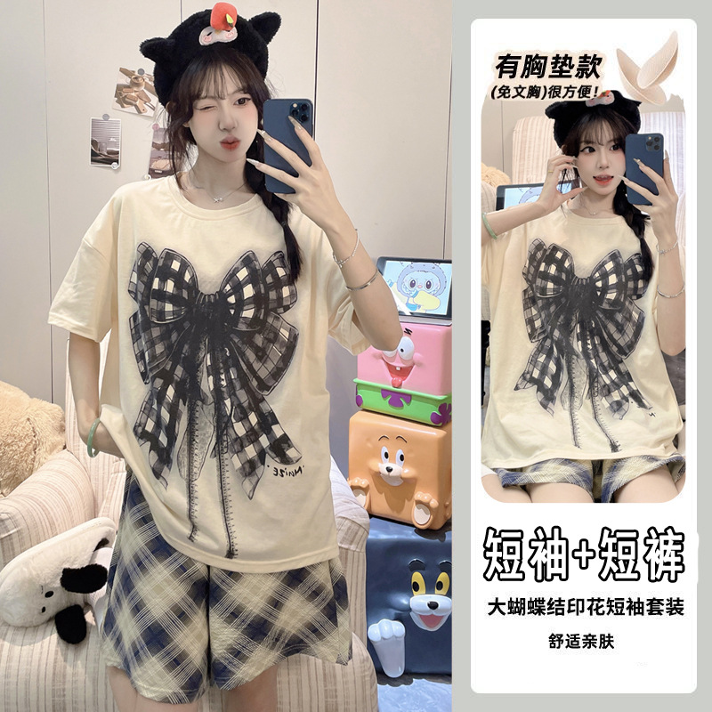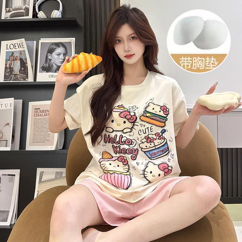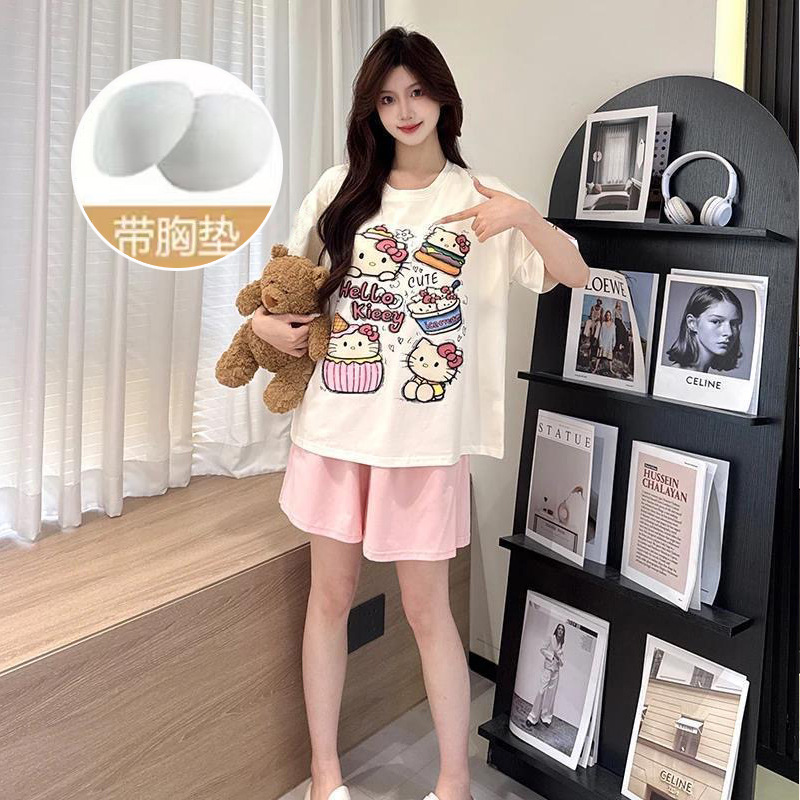 【今日份OOTD❗️卡通睡衣套装】可爱感直接拉满,自带胸垫免穿文胸,宽松大版型不挑身形,柔软亲肤透气不闷汗,短袖短裤甜美卡通女孩韩版印花家居服套装QQ