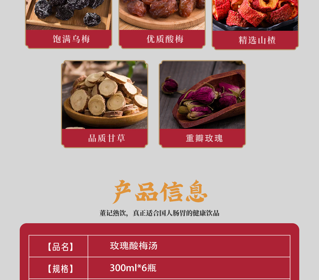酸甜可口瓶装玫瑰酸梅汤 300ML*6瓶/箱 300ML*12瓶/箱 传统熬制更适合国人口味 全国包邮
