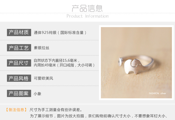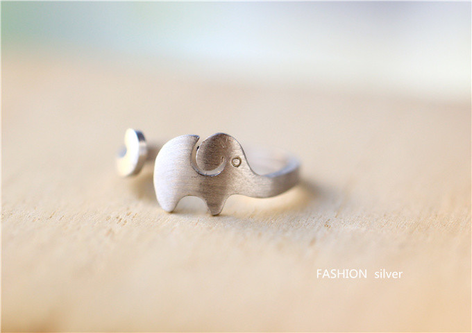 【戒指】余太太镀银开口戒指设计师原创个性拉丝大象女礼物