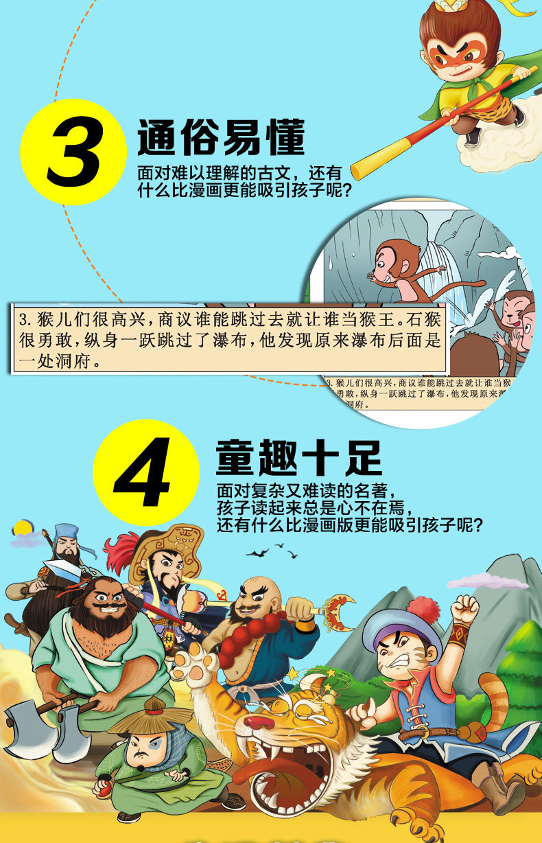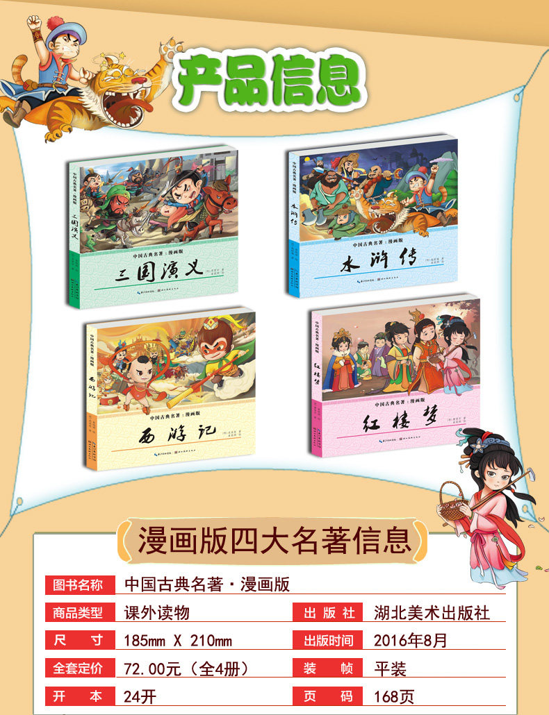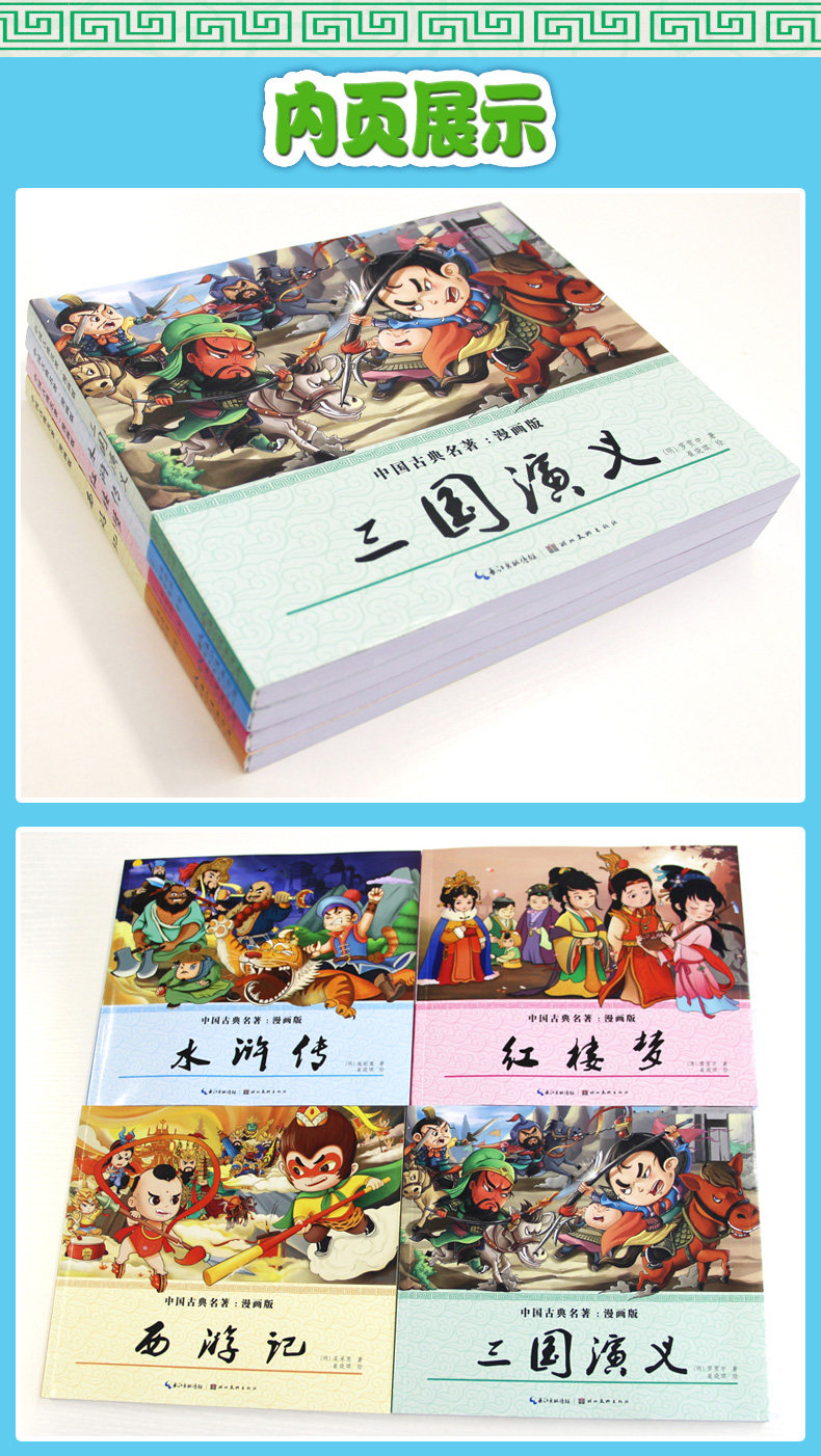四大名著全套4册漫画书 小学生9-12岁男孩女孩少儿版水浒传红楼梦西游记儿童版三国演义连环画彩图青少年版三四年级五六5年级必读6