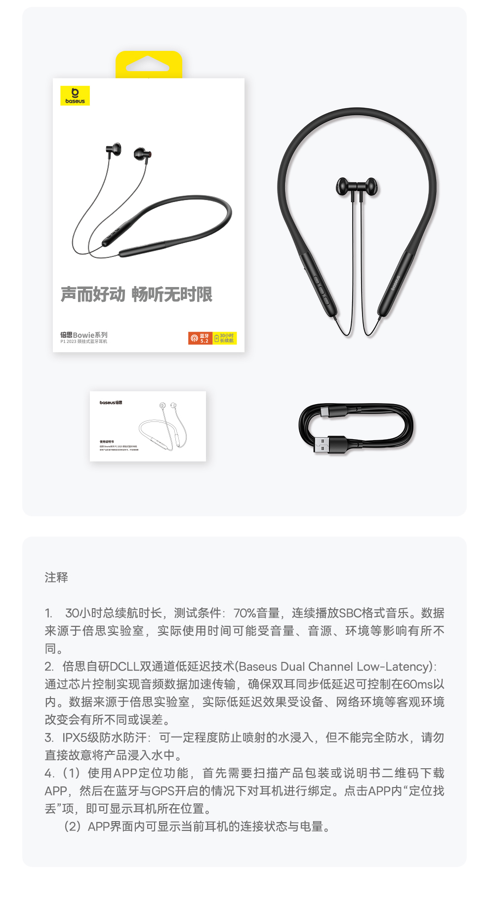 倍思 Bowie系列 P1颈挂式蓝牙耳机