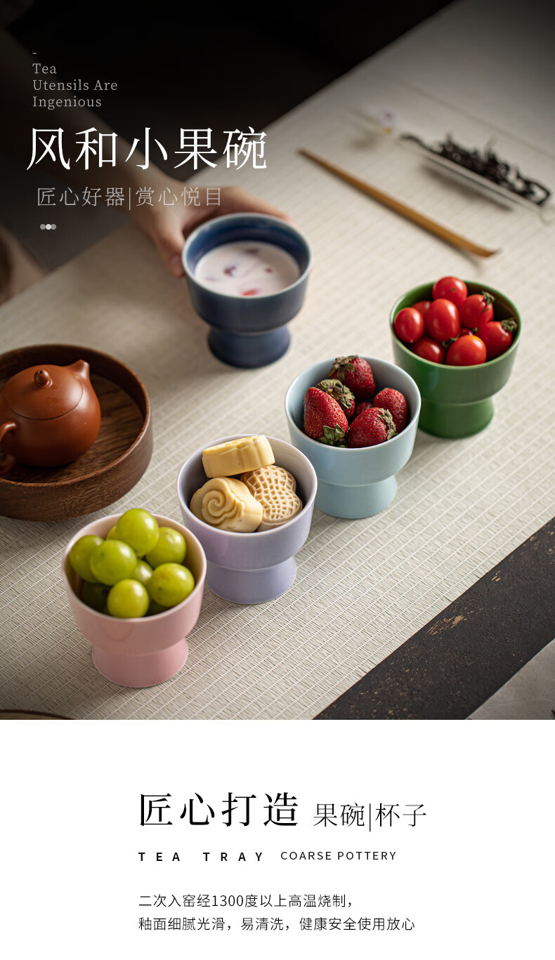 【风和小果碗】中式复古茶点盘精致高足干果点心盘高脚水果盘零食糖果甜品台家用