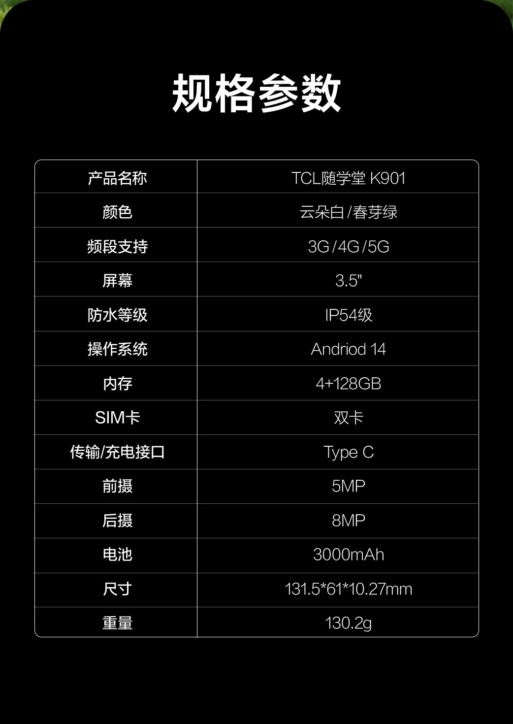 【TCL手机】护眼5G AI智学机 随学堂 K901-春芽绿