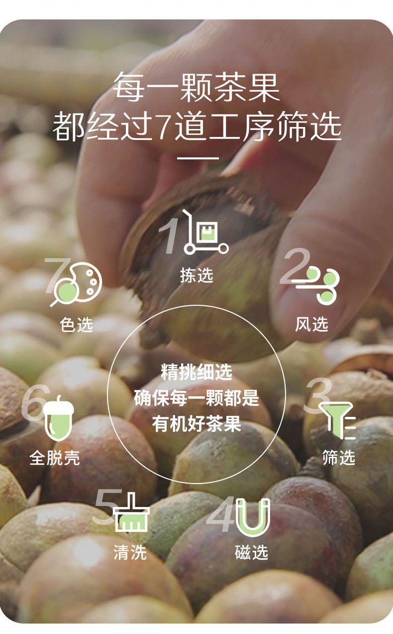 6、7道工序,4次筛选确保每一个茶籽的高品质。
