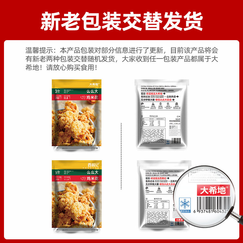 鸡米花250g*3袋+鸡块250g*2袋+鸡肉烤肠508g*2袋(20根)+蛋挞皮480g(30个)*1盒+蛋挞液500g*1盒