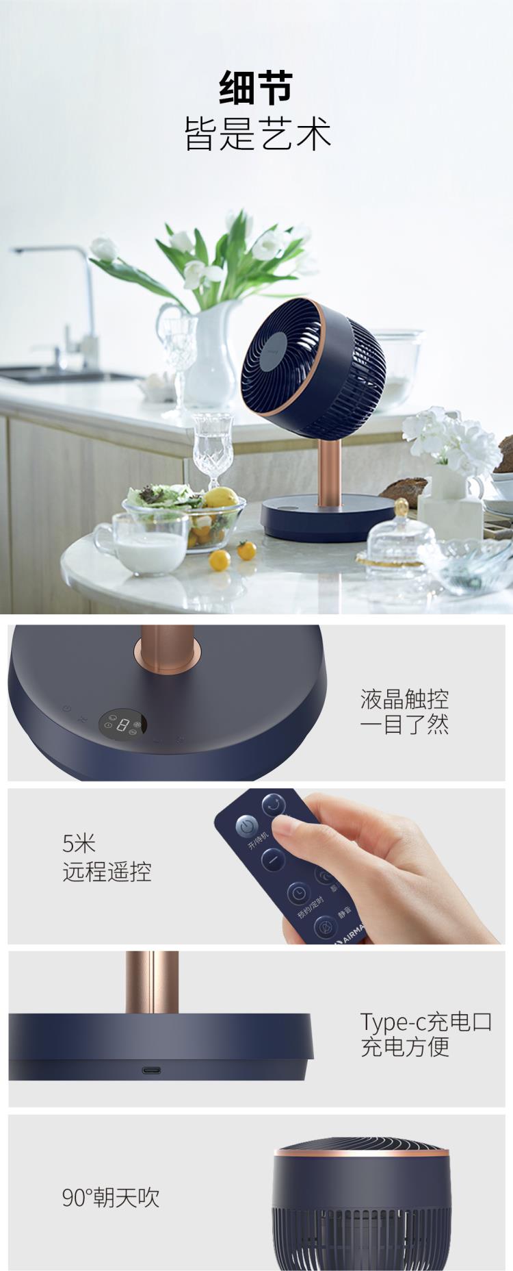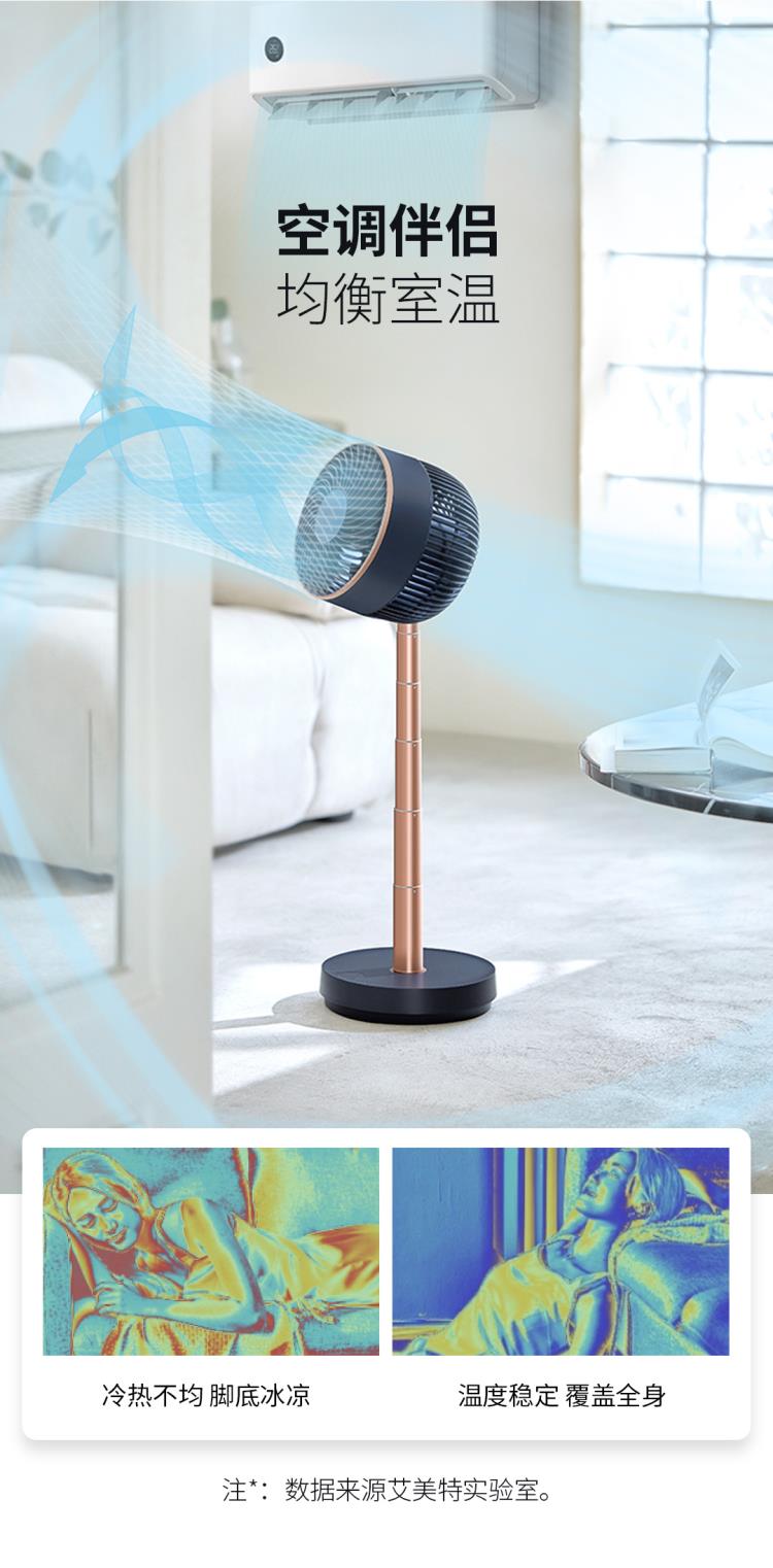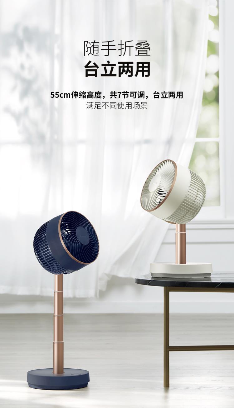艾美特空气循环扇伸缩折叠家用电风扇落地扇涡轮风扇对流电台立式