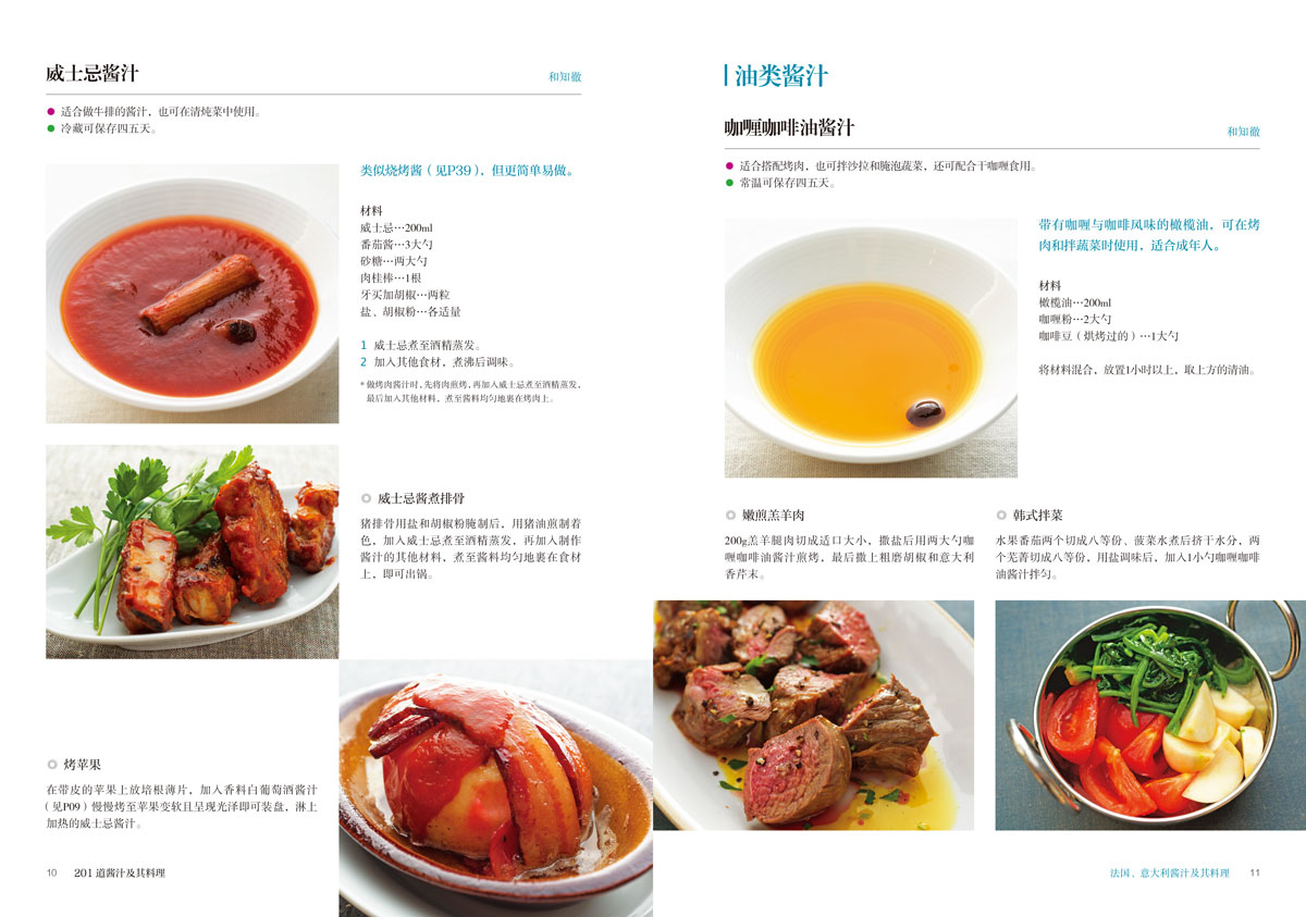 201种酱汁料理制作步骤清晰完整,适合餐厅、酒吧、居酒屋、咖啡厅的各位店主参考使用。