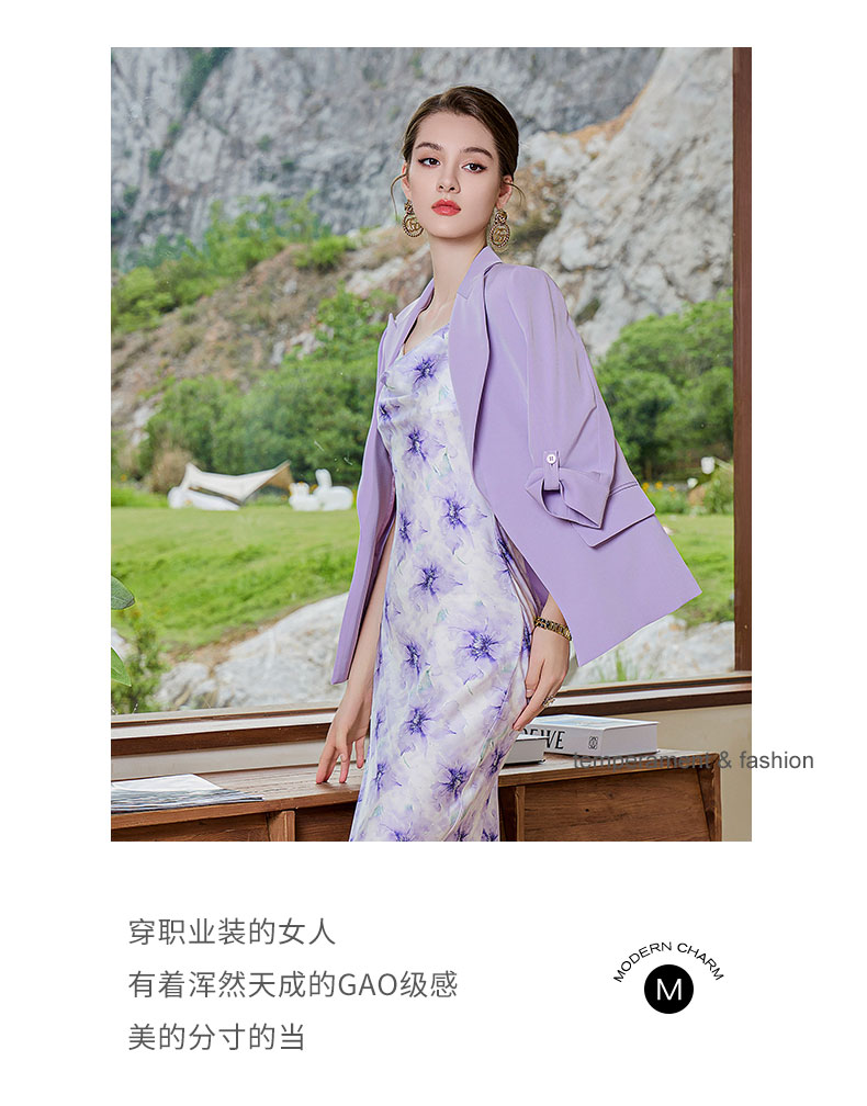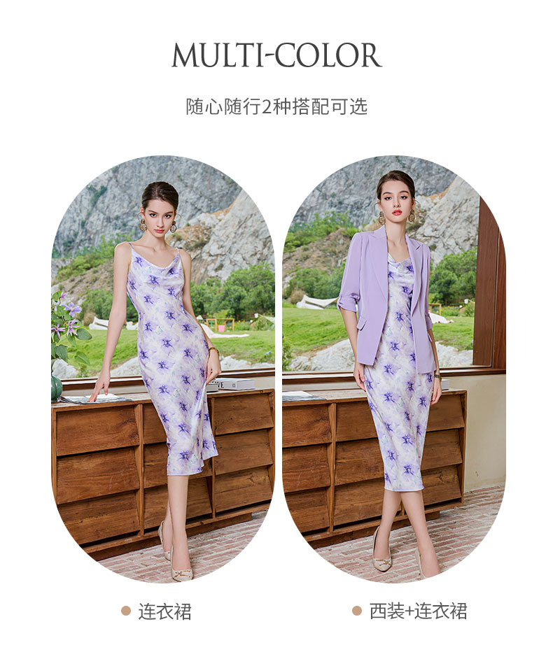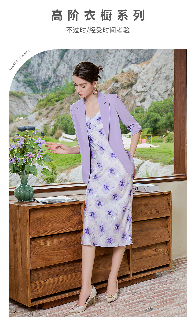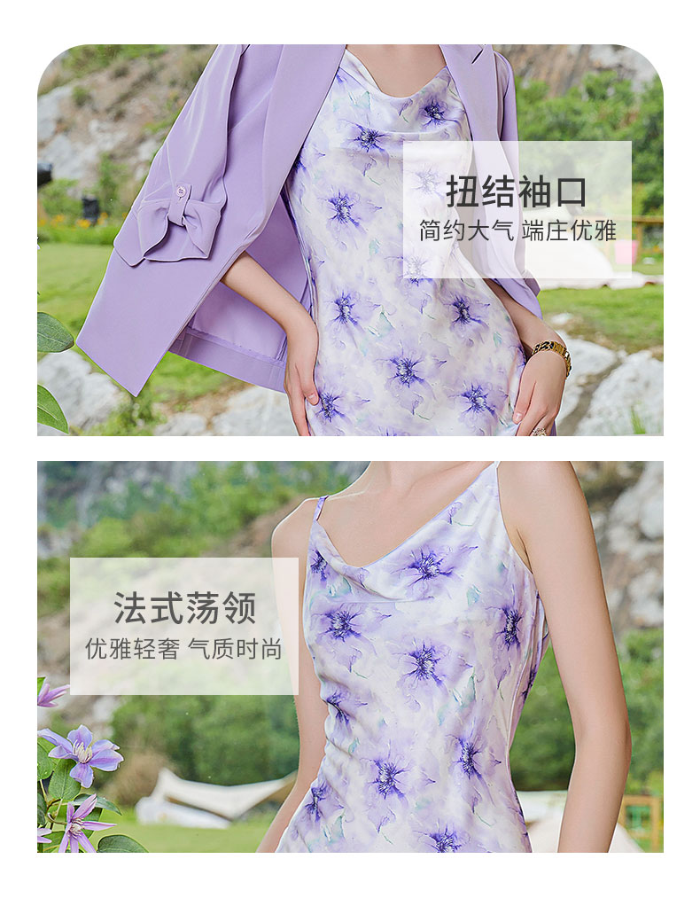 AD法式两件套女气质七分袖西装浪漫印花吊带连衣裙子通勤职场女装