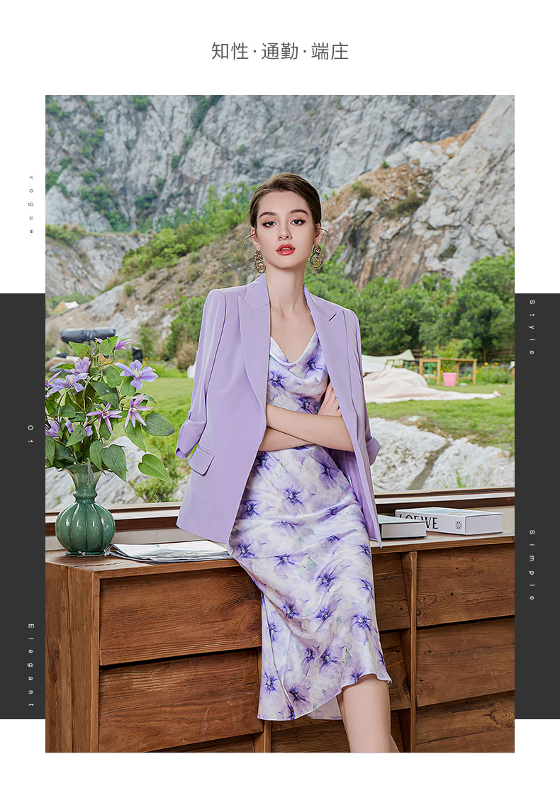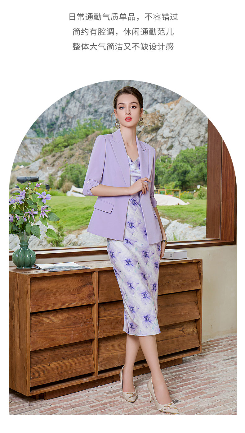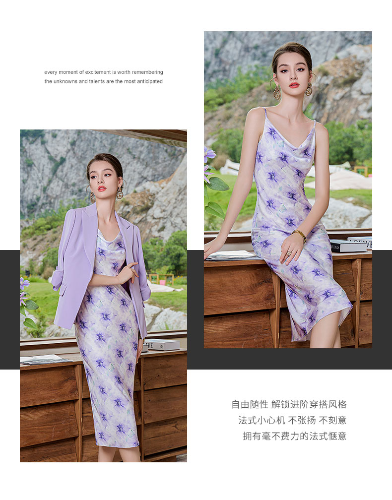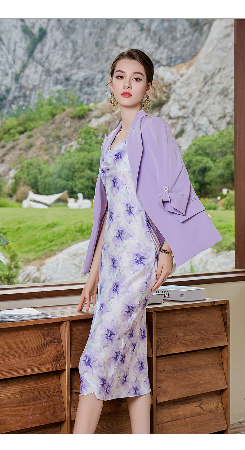 AD法式两件套女气质七分袖西装浪漫印花吊带连衣裙子通勤职场女装