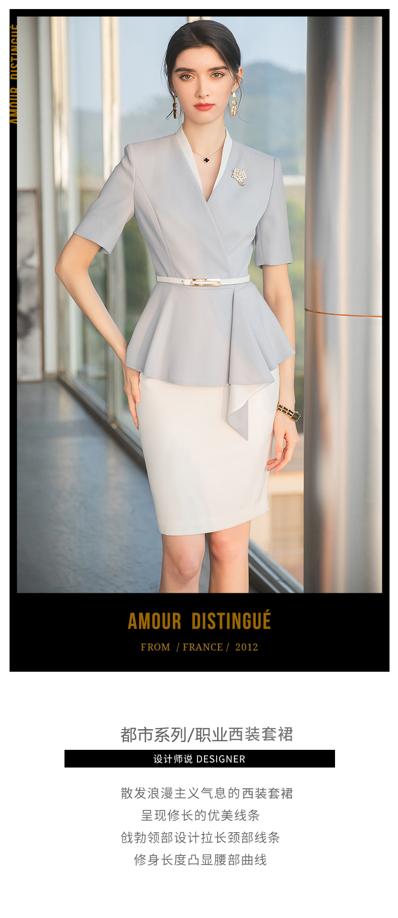 AD礼仪职业装女高端美容师工作服夏季短袖正装套裙时尚气质工服