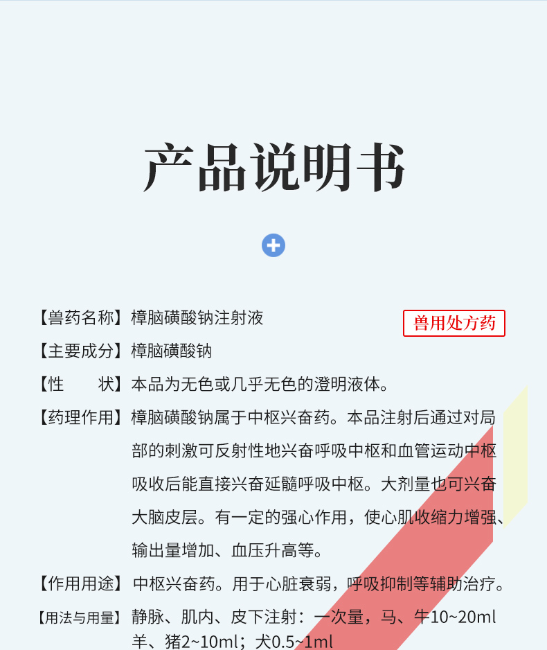 樟脑磺酸钠注射液 用于心脏衰弱,呼吸抑制等辅助治疗 华畜