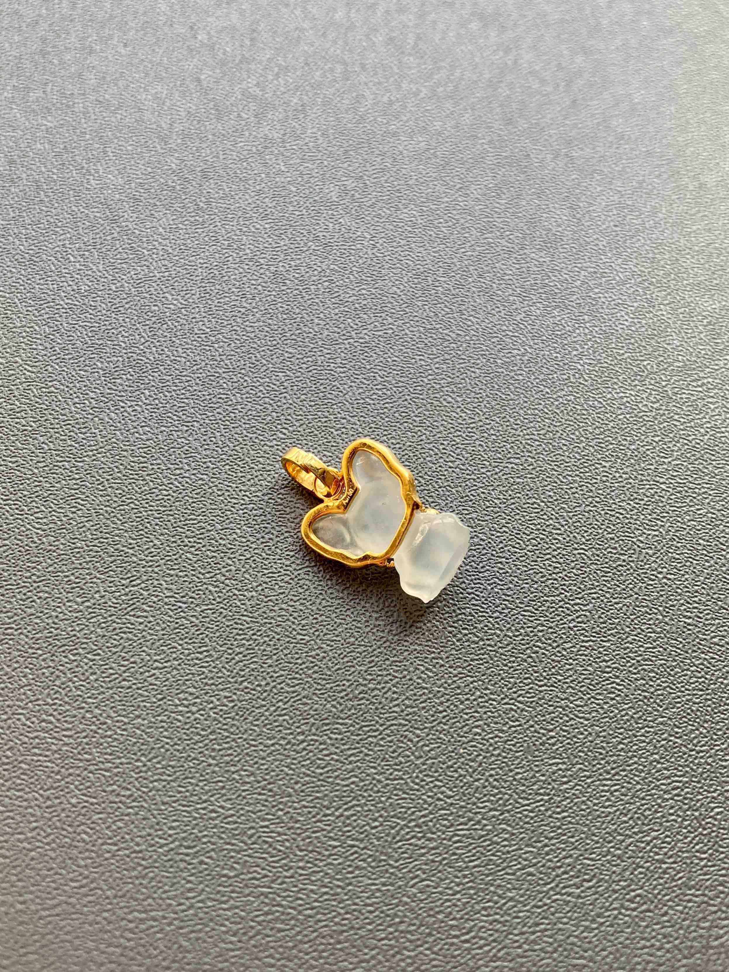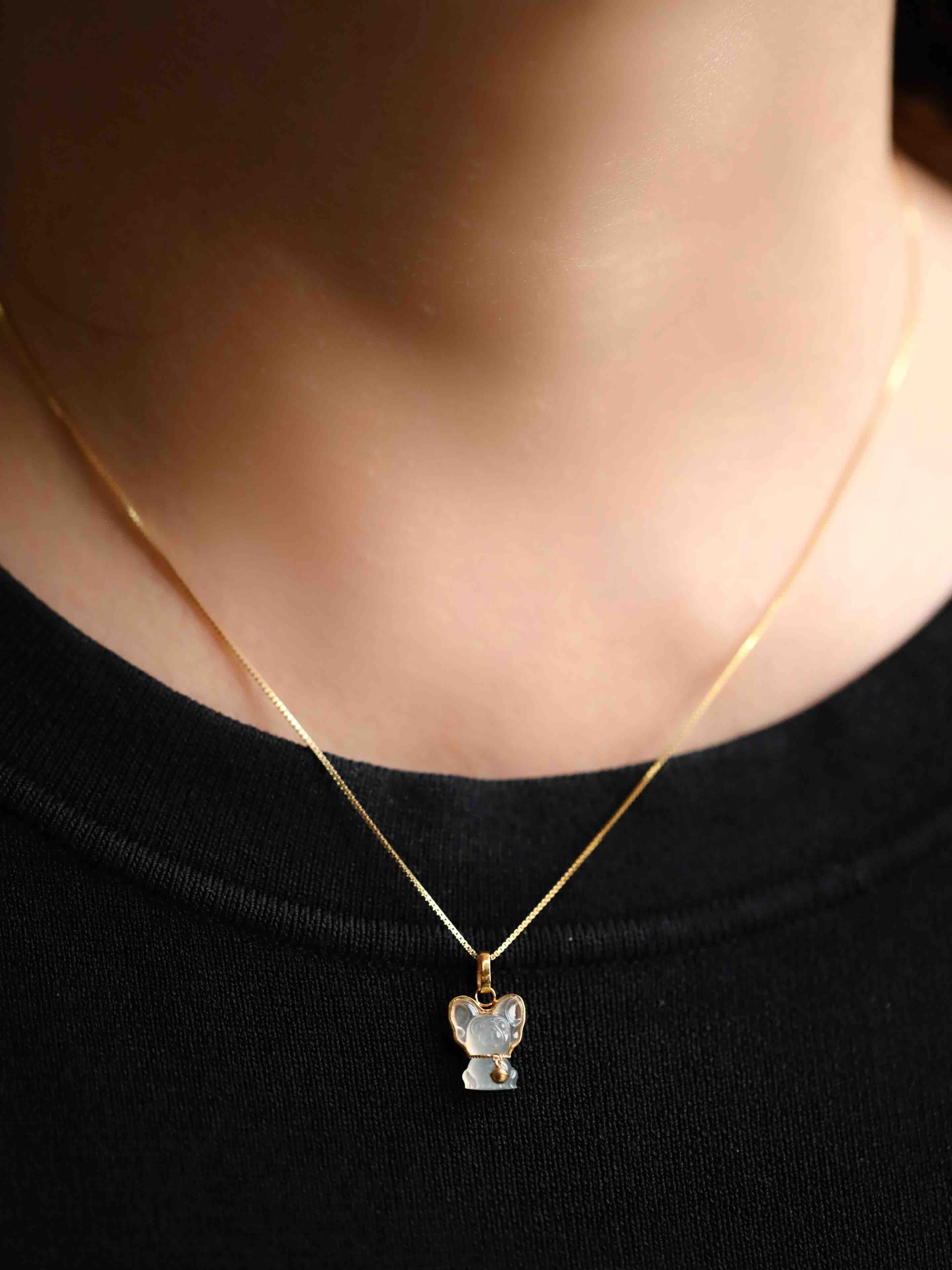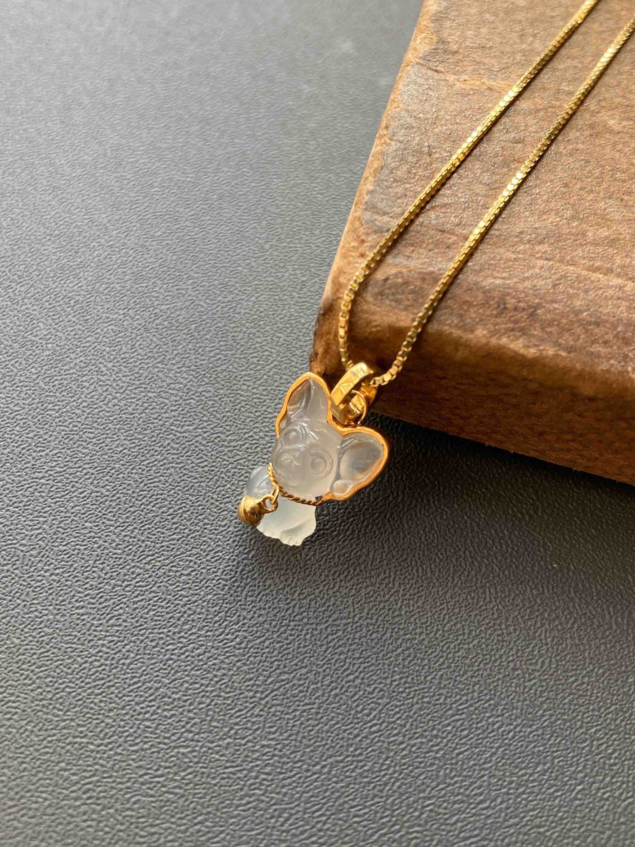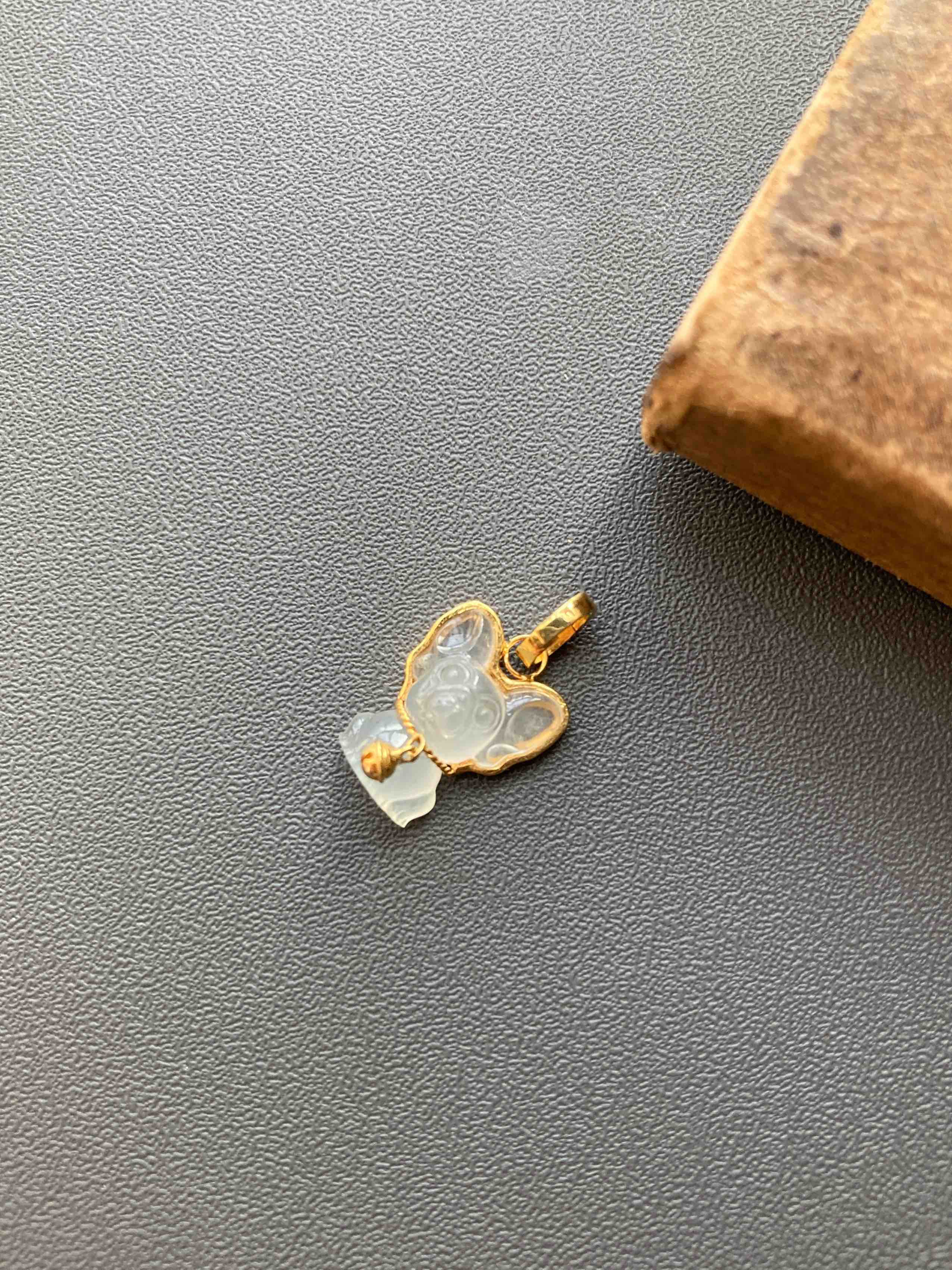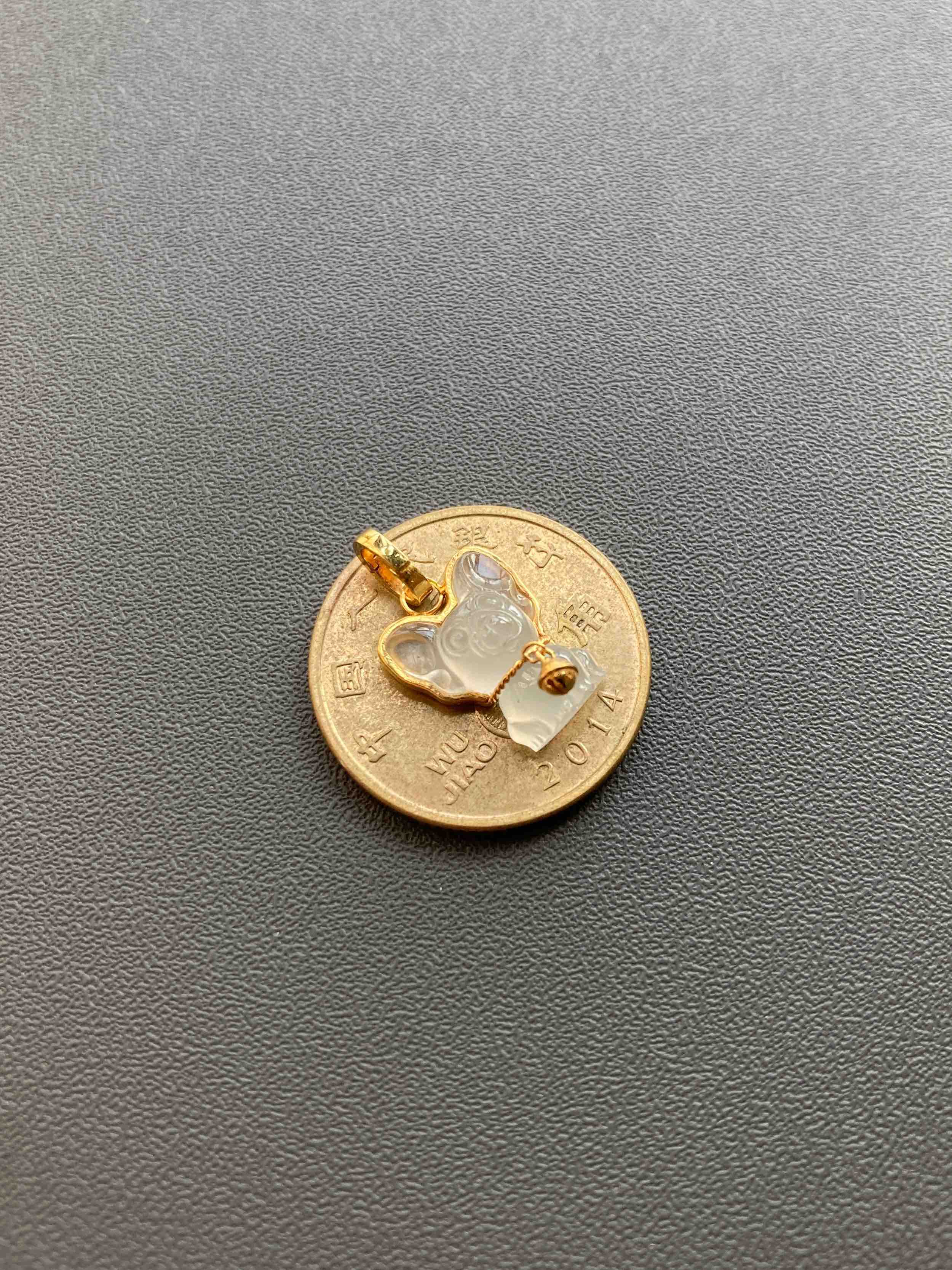 冰种翡翠小狗吊坠18k黄金镶嵌