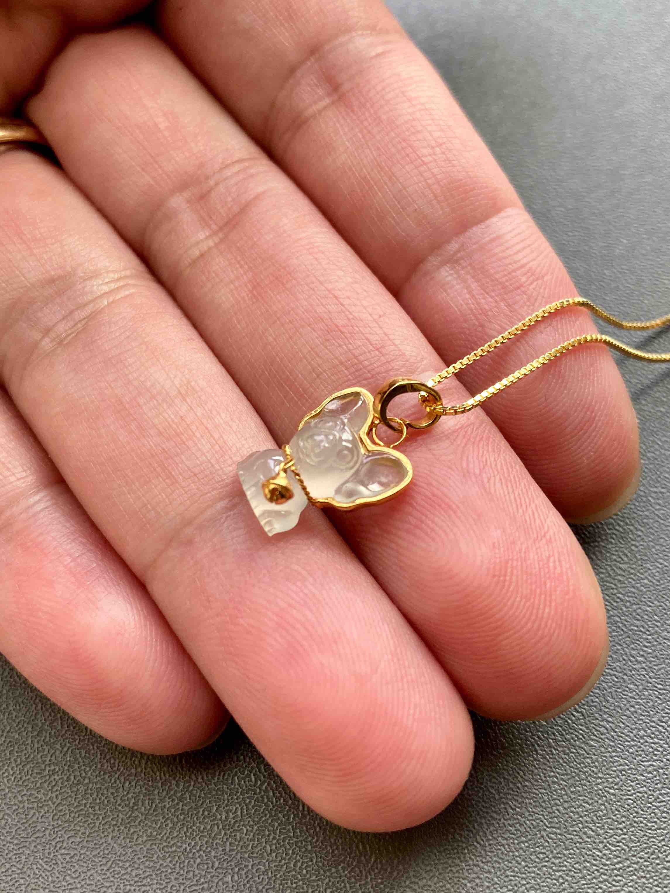 经常有人问我有没有狗狗的吊坠,每次都是没有,太难做了,立体雕刻,种水好,还不能贵,很难有,这次好不容易做出来,又好看品质又好,18k黄金镶嵌,万能扣头可以做项链吊坠,也可以扣在小米珠项链上,扣在手链上,戴法多多,最重要是只要一千多,机不可失,